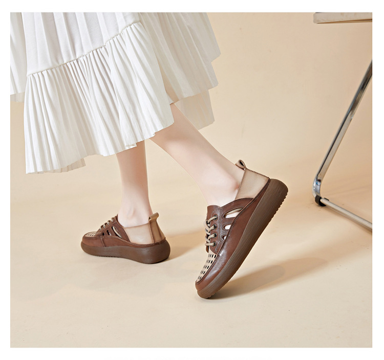 Đôi dép đi chơi này có phần đế và mặt đều rất mềm mại, mang lại cảm giác dễ chịu khi mang. Kiểu dáng cổ điển với mũi tròn và che kín ngón chân, phù hợp cho việc dạo phố hay sinh hoạt hằng ngày. Trên mặt dép có các lỗ nhỏ tạo sự thông thoáng. Sản phẩm được làm từ lớp da bò tự nhiên, bền đẹp theo thời gian. Bạn có thể dùng làm dép đi trong nhà hoặc mang ra ngoài đều tiện lợi. | Tên sản phẩm: Giày Dép Sandal Nữ Chất Liệu Da Bò Mũi Tròn Đế Mềm Phục Cổ Cổ Điển - Giày Dép Nữ | Mã sản phẩm: k2588 - Giá: 1.320.000đ | Mã nhà sản xuất: WEDI-G04Hình ảnh sản phẩm