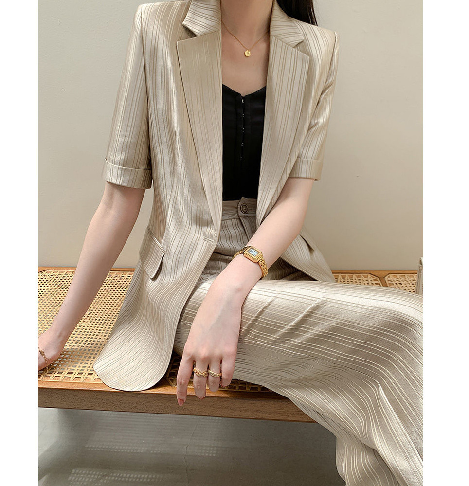 Bộ trang phục thích hợp cho môi trường công sở và những dịp gặp mặt. Thiết kế tôn dáng với áo khoác và quần/chân váy đồng bộ, tạo vẻ ngoài chỉn chu. Chất liệu bắt chước thớ vải acetate mang lại cảm giác mềm mại, thoáng mát, phù hợp thời tiết nắng nóng. Phối cùng áo thun hoặc áo sơ mi đơn giản bên trong là bạn đã có một set đồ hoàn chỉnh, thể hiện phong cách nhẹ nhàng, lịch sự. | Tên sản phẩm: Áo Vest Nữ Vest Hàng Mùa Hè Đồ Công Sở - Thời Trang Nữ | Mã sản phẩm: k2597 - Giá: 2.300.000đ | Mã nhà sản xuất: CHTYAI-G05Hình ảnh sản phẩm