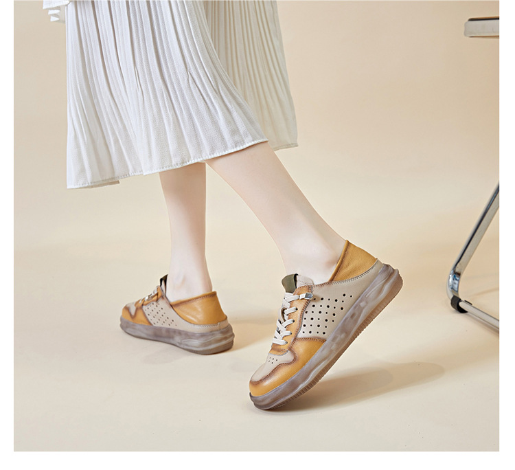 Đôi giày nữ dáng xuồng thoải mái này được làm từ chất liệu da mềm, có các lỗ đục giúp đôi chân luôn thông thoáng. Thiết kế phối màu độc đáo và phong cách cổ điển dễ dàng phối cùng nhiều trang phục. Bạn có thể mang như giày thông thường hoặc gập gót lại để biến thành dép đi trong nhà. Đế bằng phẳng ôm sát chân, mang lại sự dễ chịu cho cả ngày dài, và có đủ size cho những người có bàn chân lớn. | Tên sản phẩm: Giày Bệt Nữ Chất Liệu Da Bò Big Size Ngoại Cỡ Hàng Mùa Hè Phục Cổ Cổ Điển - Giày Dép Nữ | Mã sản phẩm: k2602 - Giá: 1.280.000đ | Mã nhà sản xuất: WEDI-G04Hình ảnh sản phẩm