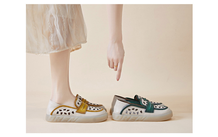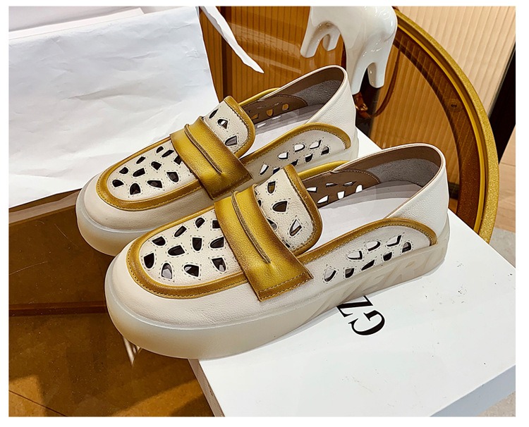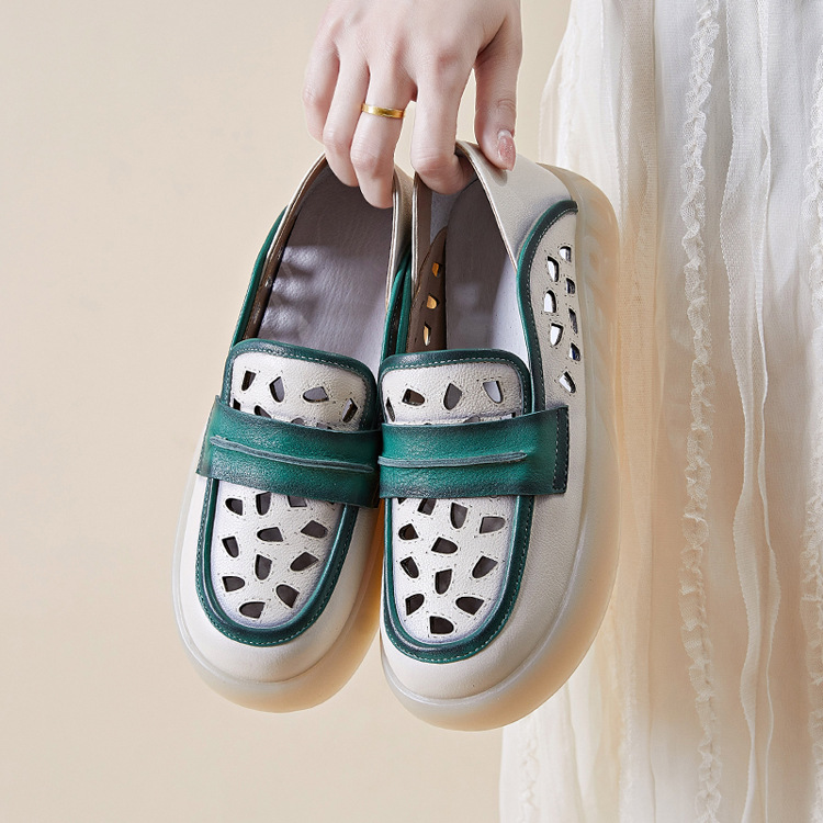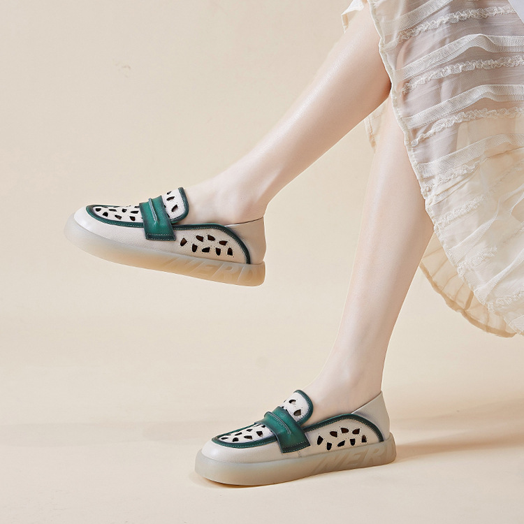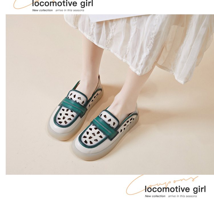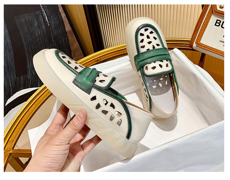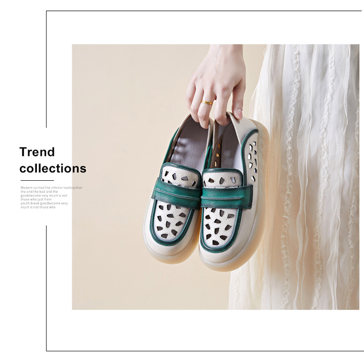 Đôi giày nữ dành cho những ngày hè, được làm từ chất liệu da thật với thiết kế khoét lỗ tinh tế giúp đôi chân luôn thông thoáng. Kiểu dáng giày lười dễ dàng xỏ chân, kết hợp phần gót có thể gập xuống để biến thành dép xỏ ngón tiện lợi. Phối màu nhẹ nhàng tạo nên vẻ đẹp cổ điển và linh hoạt. Bạn chỉ cần xỏ chân vào là có thể bước đi thoải mái, phù hợp cho nhiều dịp sinh hoạt thường ngày. | Tên sản phẩm: Giày Lười Nữ Chất Liệu Da Bò Hàng Mùa Hè Phục Cổ Cổ Điển - Giày Dép Nữ | Mã sản phẩm: k2603 - Giá: 1.350.000đ | Mã nhà sản xuất: WEDI-G04Hình ảnh sản phẩm