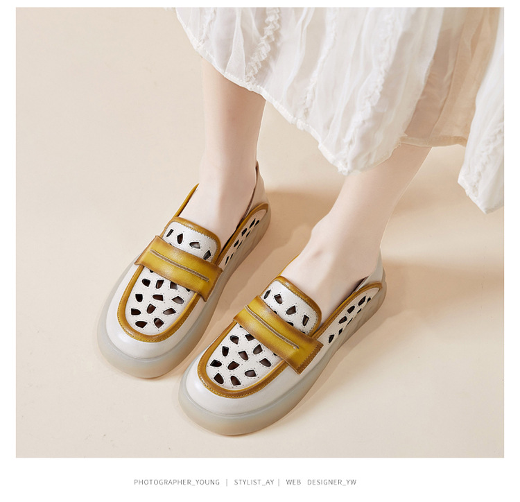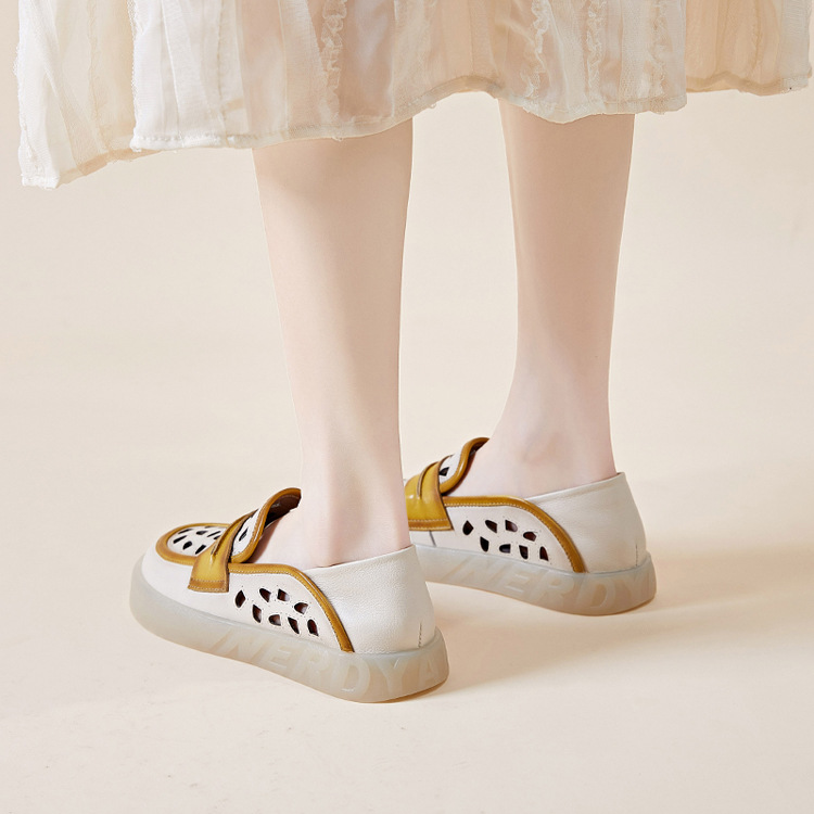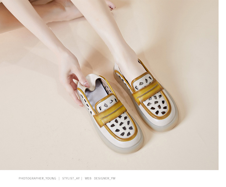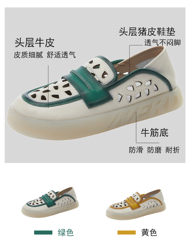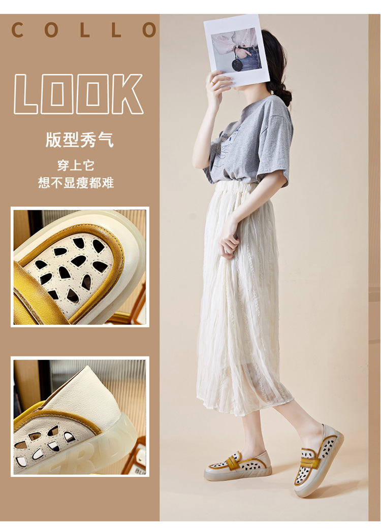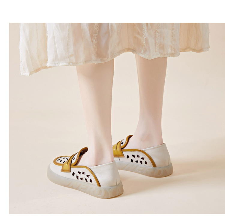 Đôi giày nữ dành cho những ngày hè, được làm từ chất liệu da thật với thiết kế khoét lỗ tinh tế giúp đôi chân luôn thông thoáng. Kiểu dáng giày lười dễ dàng xỏ chân, kết hợp phần gót có thể gập xuống để biến thành dép xỏ ngón tiện lợi. Phối màu nhẹ nhàng tạo nên vẻ đẹp cổ điển và linh hoạt. Bạn chỉ cần xỏ chân vào là có thể bước đi thoải mái, phù hợp cho nhiều dịp sinh hoạt thường ngày. | Tên sản phẩm: Giày Lười Nữ Chất Liệu Da Bò Hàng Mùa Hè Phục Cổ Cổ Điển - Giày Dép Nữ | Mã sản phẩm: k2603 - Giá: 1.350.000đ | Mã nhà sản xuất: WEDI-G04Hình ảnh sản phẩm