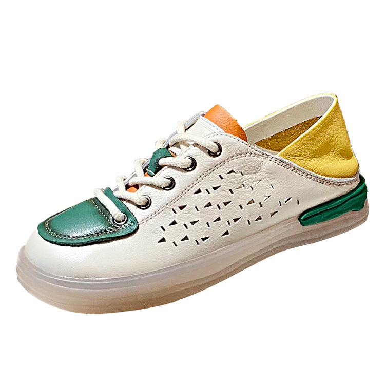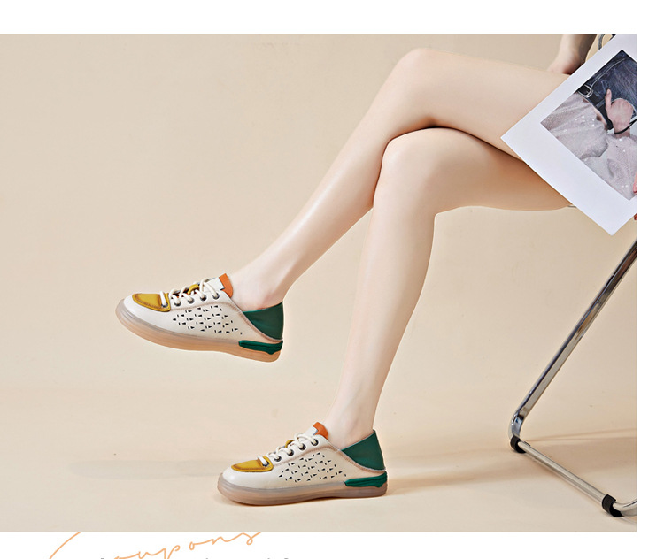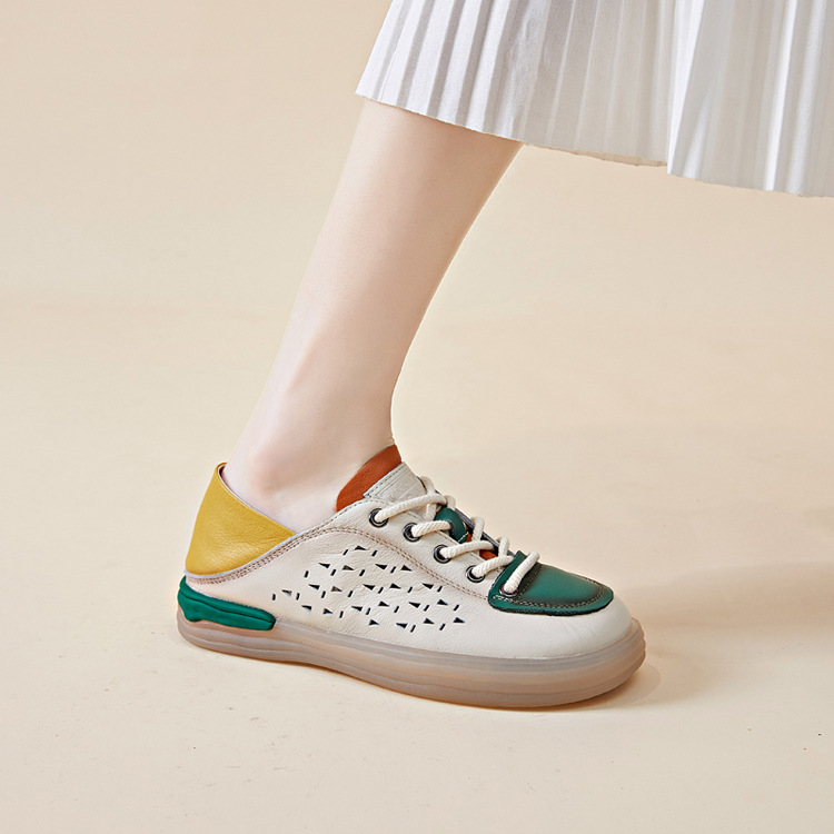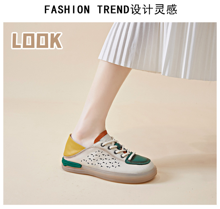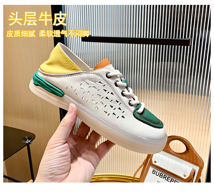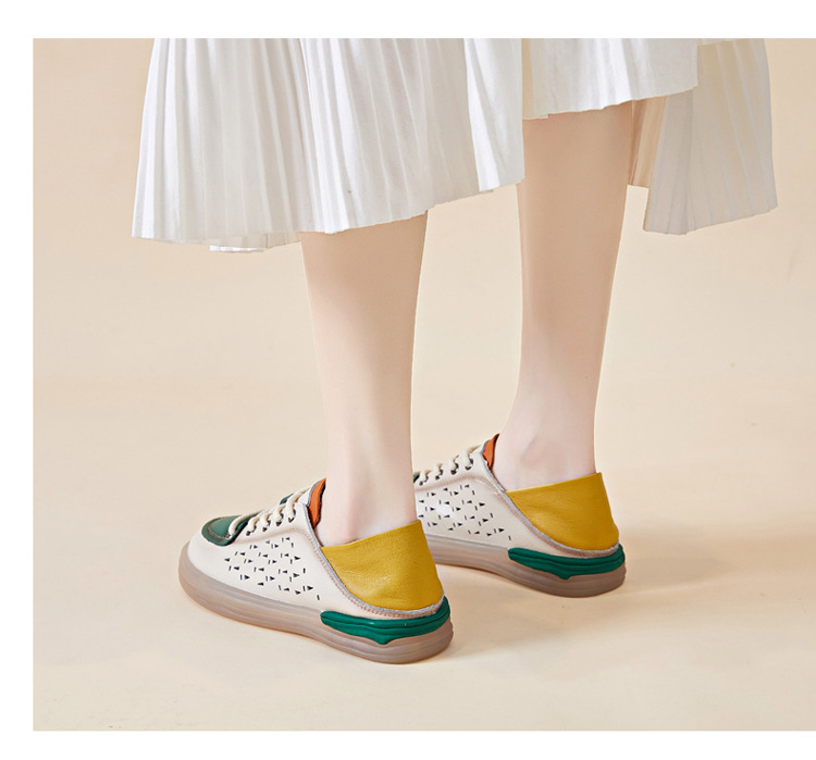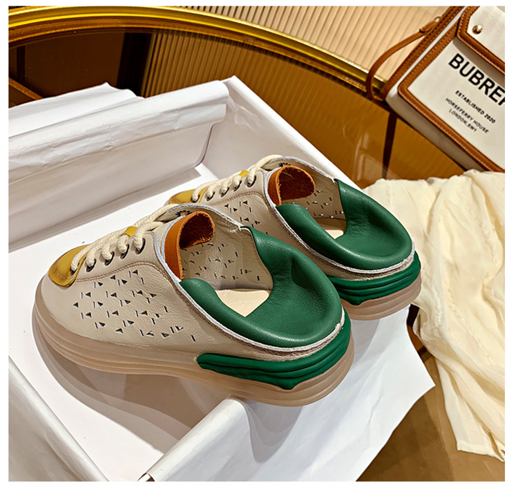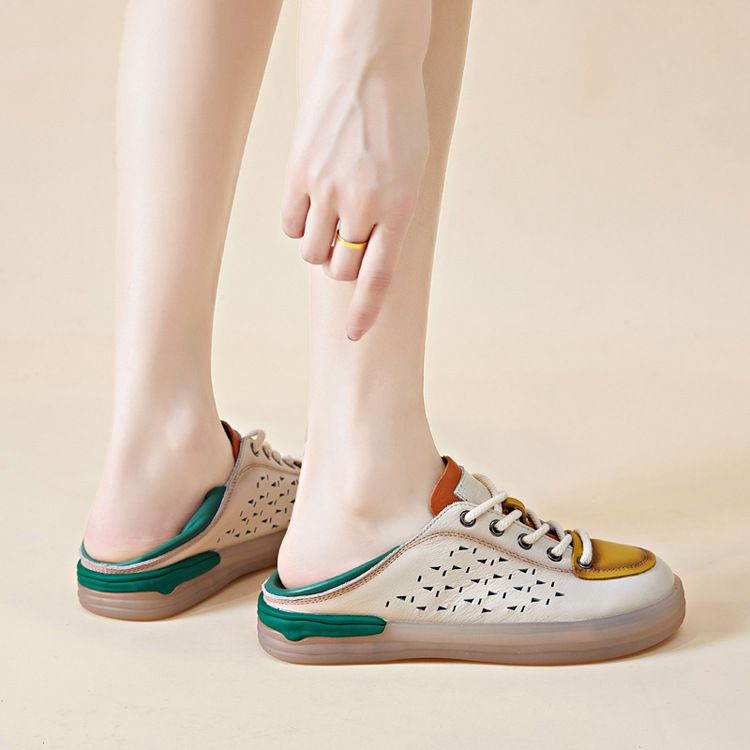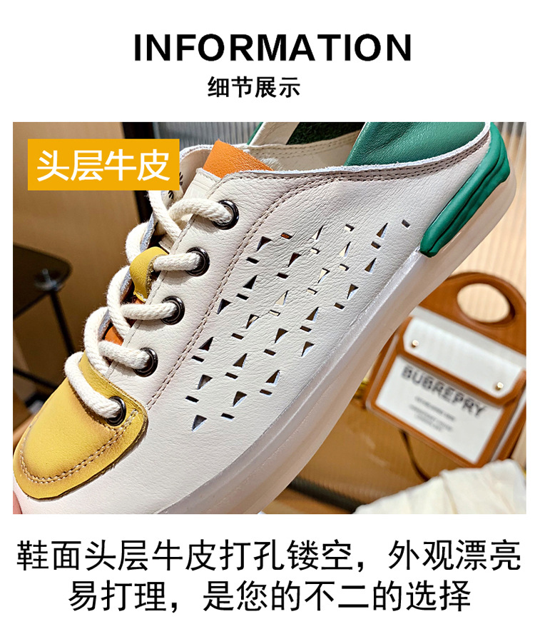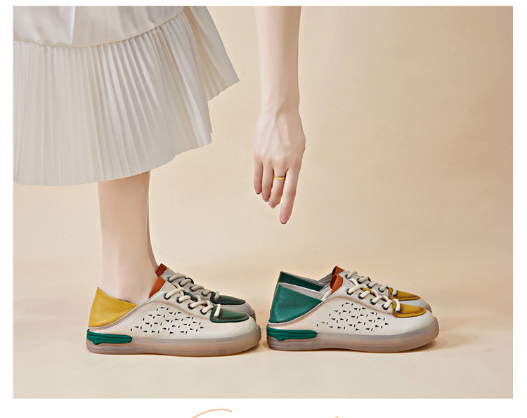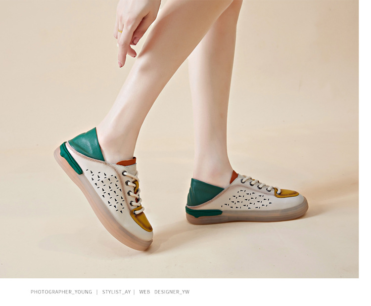 Giày nữ dáng xuềnh xoàng, mặt giày được ghép từ nhiều mảng màu khác nhau tạo điểm nhấn. Phần mũi giày có các lỗ nhỏ trang trí giúp thoáng khí. Sản phẩm làm từ chất liệu da bò thật nên rất mềm mại, cả phần đế lẫn mặt giày đều êm ái. Điểm đặc biệt là bạn có thể biến tấu thành hai kiểu mang khác nhau trên cùng một đôi, phù hợp cho các dịp đi chơi, dạo phố thường ngày. | Tên sản phẩm: Giày Bệt Nữ Chất Liệu Da Bò Đế Mềm - Giày Dép Nữ | Mã sản phẩm: k2629 - Giá: 1.380.000đ | Mã nhà sản xuất: WEDI-G04Hình ảnh sản phẩm