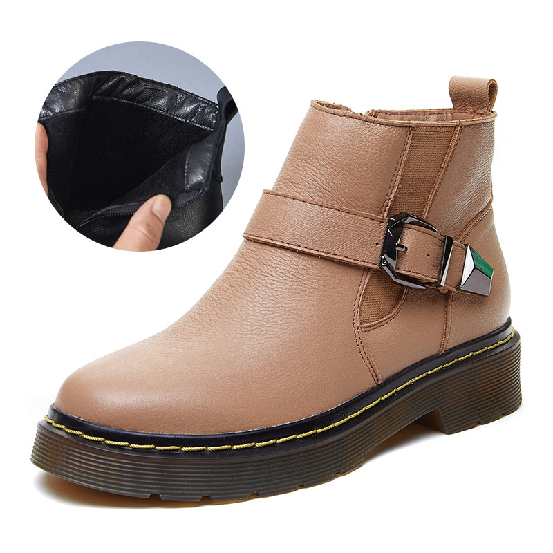 Đôi bốt ngắn này được làm từ lớp da thật bên ngoài, mang đến cảm giác mặc êm ái và bền lâu. Kiểu dáng cổ điển với phần mũi tròn và đế làm từ chất liệu dẻo, tạo sự dễ chịu khi di chuyển cả ngày. Thiết kế không có dây buộc, dễ dàng xỏ chân vào và tháo ra. Sản phẩm phù hợp để sử dụng trong tiết trời mát mẻ, kết hợp cùng nhiều loại trang phục khác nhau. | Tên sản phẩm: Boot Cổ Thấp Nữ Chất Liệu Da Bò Mũi Tròn Hàng Mùa Xuân Thu Đông - Giày Dép Nữ | Mã sản phẩm: k2640 - Giá: 1.460.000đ | Mã nhà sản xuất: WEDI-G04Hình ảnh sản phẩm