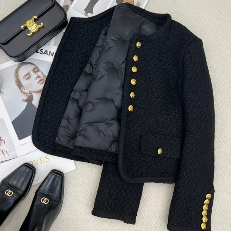 Áo khoác ngắn dành cho nữ, có lớp lót bông ấm áp, phù hợp cho mùa lạnh. Kiểu dáng theo phong cách trẻ trung, hiện đại với điểm nhấn là chi tiết phụ kiện kim loại tinh tế. Chất liệu dệt thô mang đến vẻ ngoài thanh lịch, dễ phối đồ. Sản phẩm mặc kèm áo thun hoặc áo len bên trong, kết hợp cùng quần jeans hoặc váy để tạo nên những bộ trang phục hàng ngày. | Tên sản phẩm: Áo Khoác Nữ Chất Liệu Vải Bông Họa Tiết Hoa Hàng Mùa Xuân Thu Đông - Thời Trang Nữ | Mã sản phẩm: K2670 - Giá: 850.000đ | Mã nhà sản xuất: SHREIA-G03Hình ảnh sản phẩm
