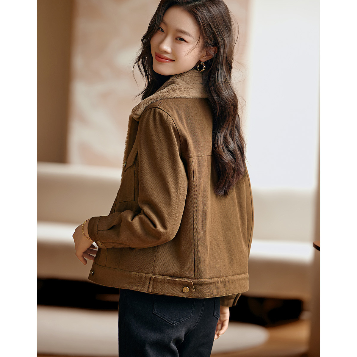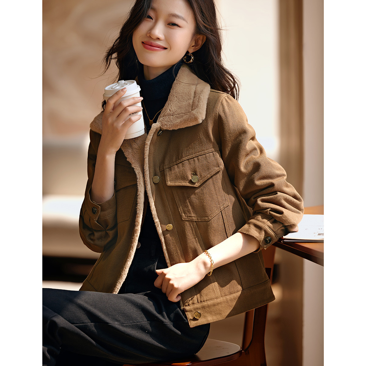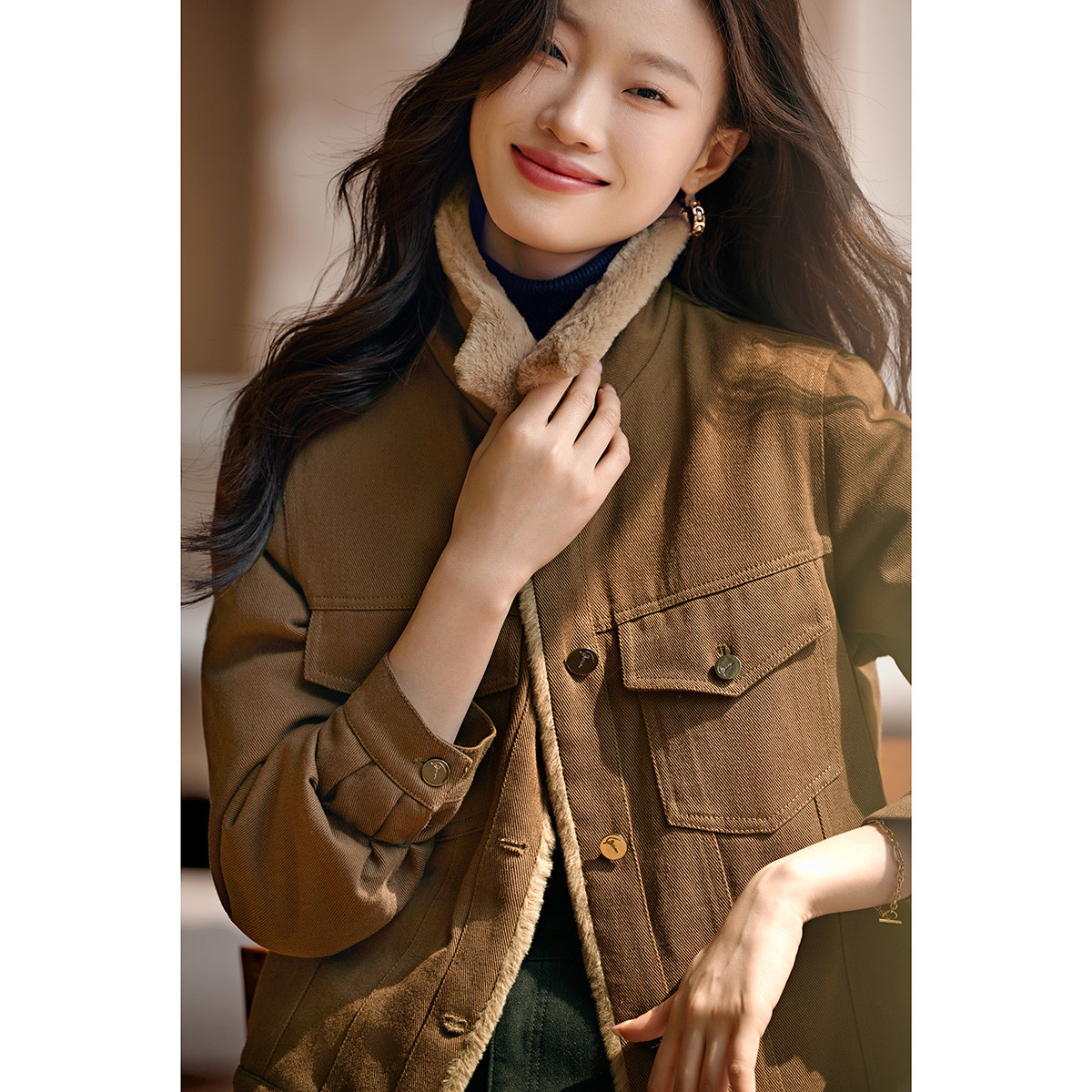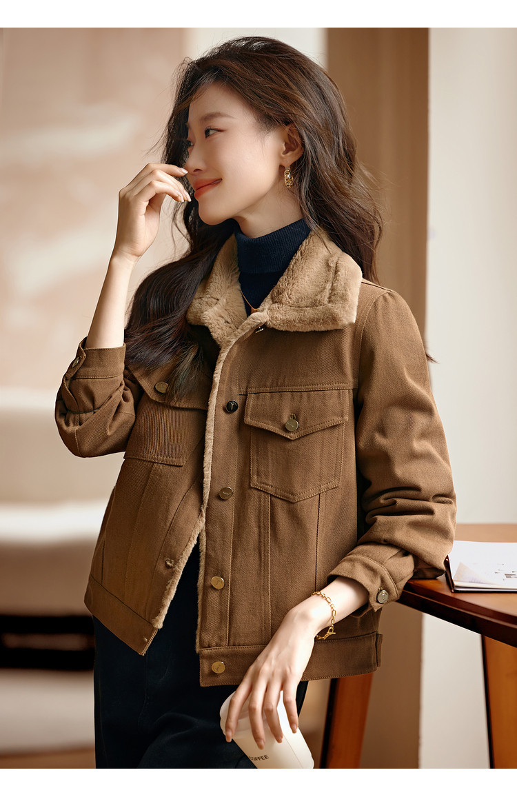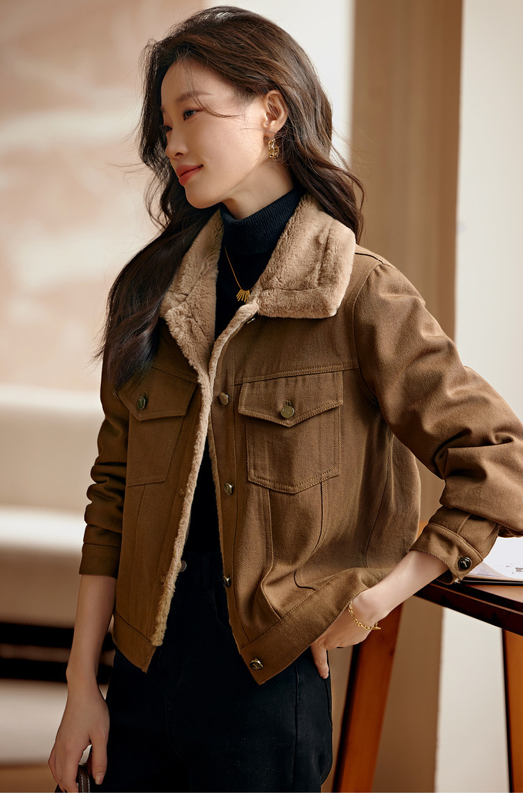 Áo khoác kiểu dáng công sở ngắn, phù hợp cho mùa lạnh. Chất liệu bên ngoài là vải dệt giống lông cừu non, mang lại cảm giác mềm mại và ấm áp. Bên trong được lót thêm một lớp để giữ nhiệt tốt hơn. Kiểu áo có nhiều túi, tiện lợi để đựng các vật dụng nhỏ. Có thể mặc kết hợp với quần jean hoặc quần vải thông thường. Dễ dàng phối đồ cho các sinh hoạt hằng ngày. | Tên sản phẩm: Áo Khoác Nữ Chất Liệu Jean Bò Dày Ấm Hàng Mùa Xuân Thu Đông - Thời Trang Nữ | Mã sản phẩm: K2686 - Giá: 990.000đ | Mã nhà sản xuất: SHREIA-G03Hình ảnh sản phẩm