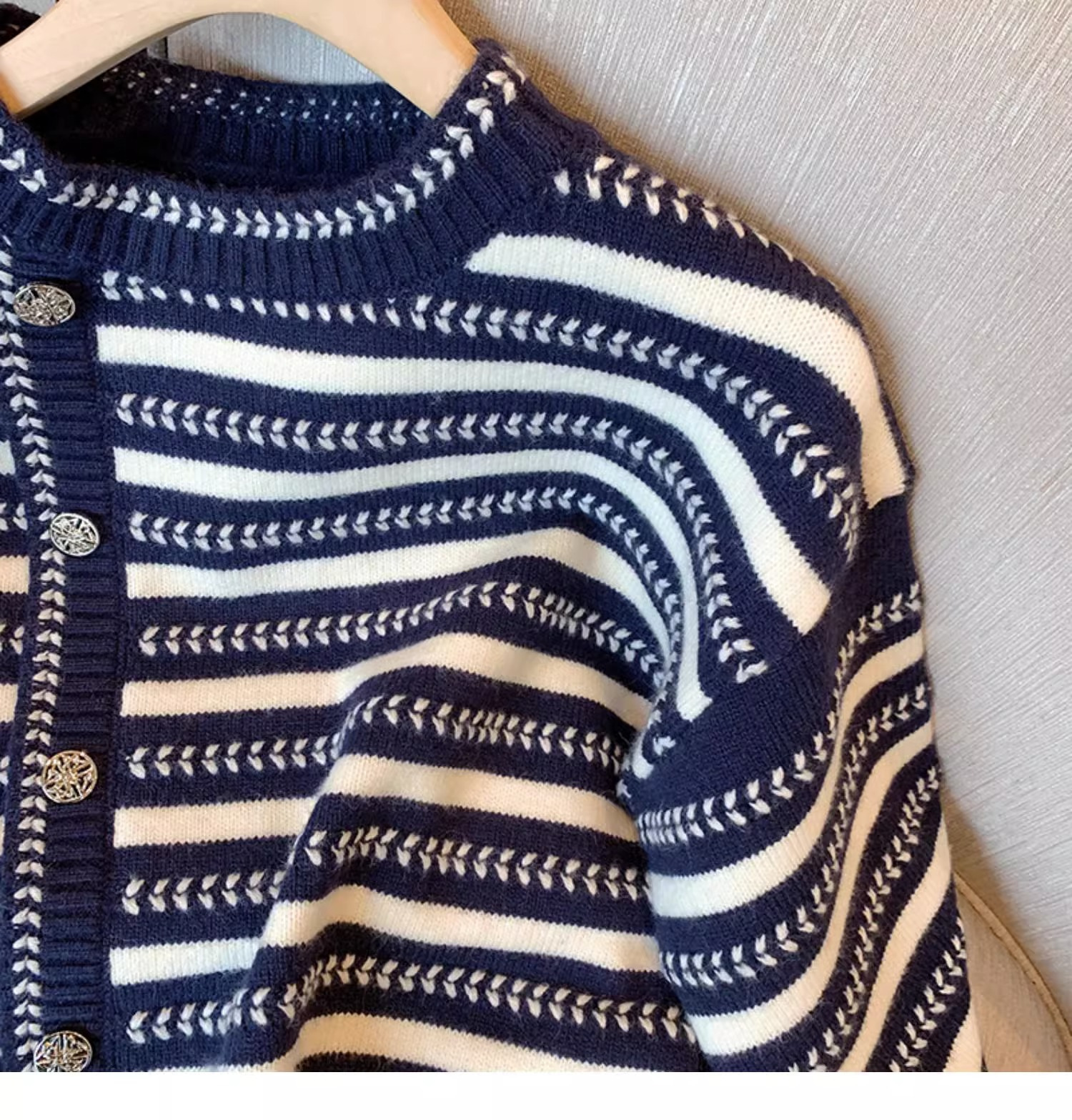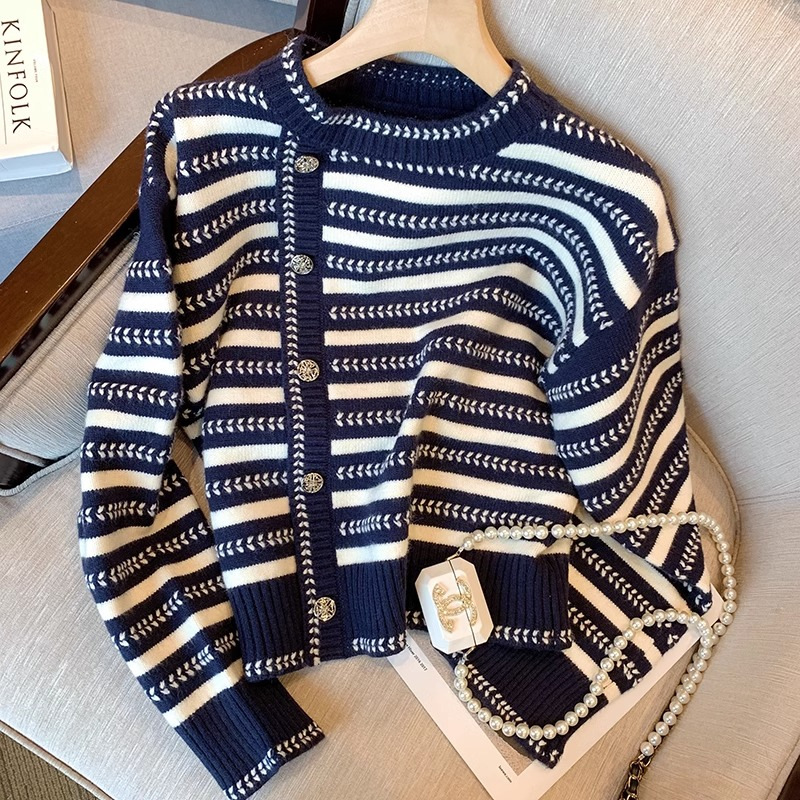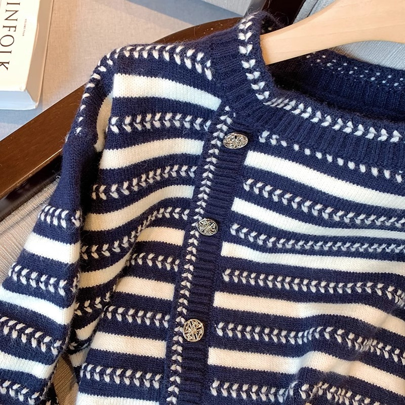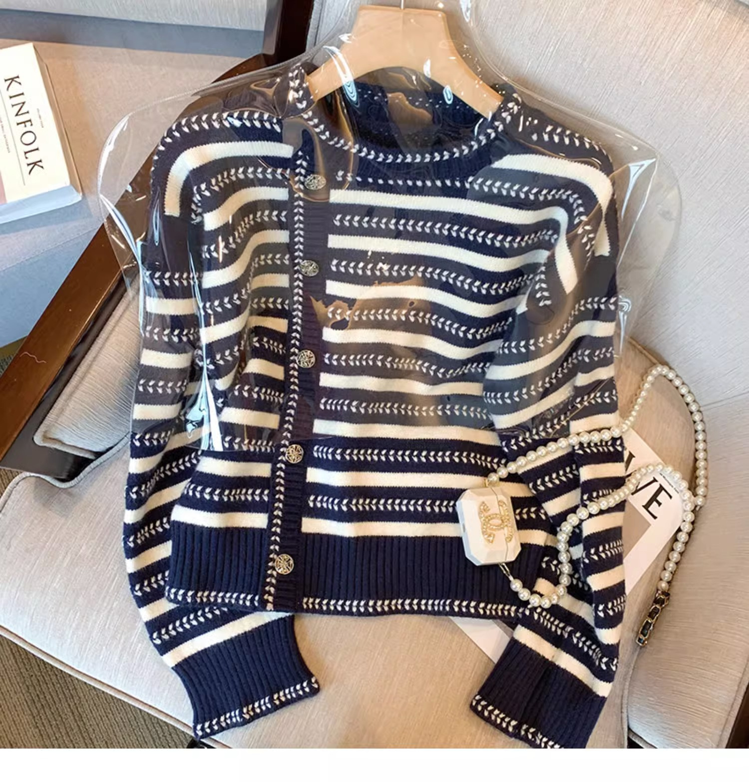 Áo len dệt kim kẻ sọc, kiểu dáng ngắn, mang phong cách Pháp cổ điển dành cho mùa thu đông. Chất liệu len mềm mại, ấm áp, tạo cảm giác dễ chịu khi mặc. Các đường kẻ sọc tinh tế giúp tôn dáng người mặc. Dễ dàng phối cùng quần jeans hoặc chân váy để tạo nên vẻ ngoại hình ưa nhìn. Phù hợp cho nhiều dịp khác nhau, từ đi làm đến gặp gỡ bạn bè. | Tên sản phẩm: Áo Len Nữ Áo Len Hàng Mùa Xuân Thu Đông Phục Cổ Cổ Điển - Thời Trang Nữ | Mã sản phẩm: K2696 - Giá: 560.000đ | Mã nhà sản xuất: SHREIA-G01Hình ảnh sản phẩm