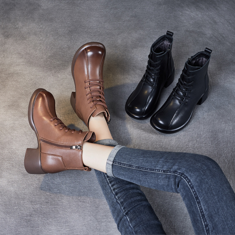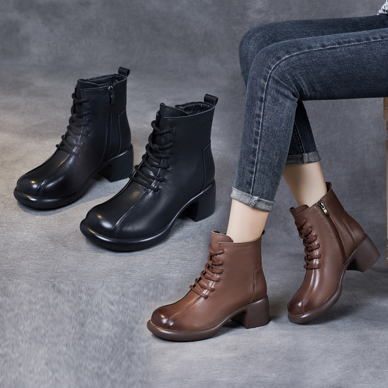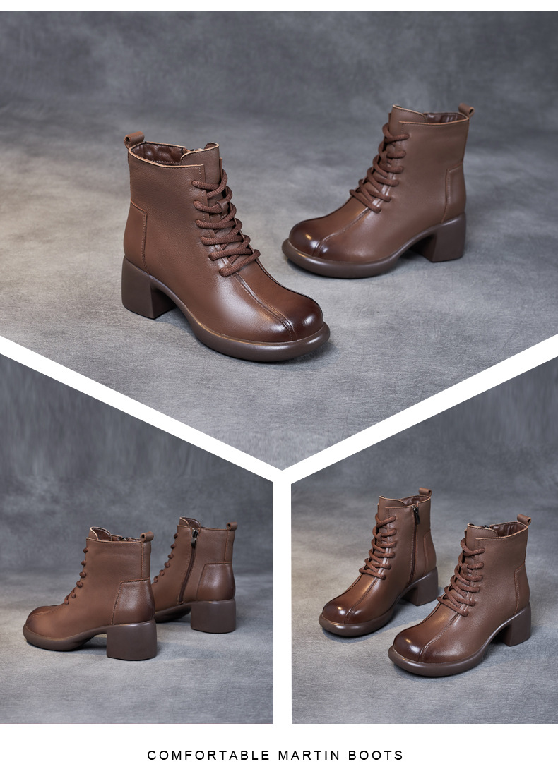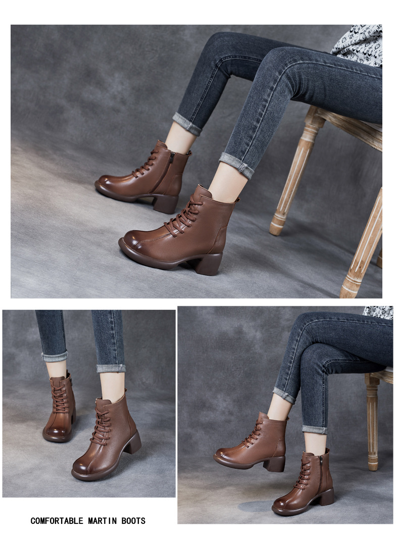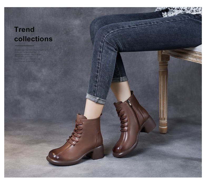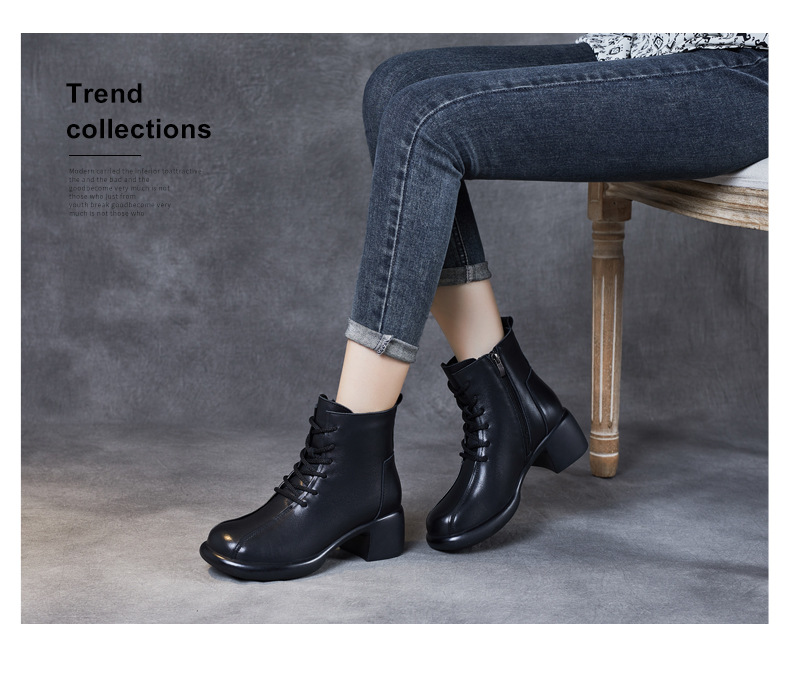 Đôi bốt cổ trung này có phần đế mềm mại và gót thấp vừa phải, giúp bạn di chuyển thoải mái cả ngày. Kiểu dáng mang phong cách cổ điển, dễ dàng phối hợp với nhiều loại trang phục khác nhau như quần jeans hay váy. Bên trong được lót một lớp êm ái, giữ ấm tốt cho đôi chân trong tiết trời mát mẻ. Bạn có thể sử dụng hằng ngày để đi làm, đi chơi hoặc dạo phố. | Tên sản phẩm: Boot Cổ Thấp Nữ Chất Liệu Da Bò Gót Vuông Phục Cổ Cổ Điển - Giày Dép Nữ | Mã sản phẩm: k2706 - Giá: 1.430.000đ | Mã nhà sản xuất: WEDI-G04Hình ảnh sản phẩm