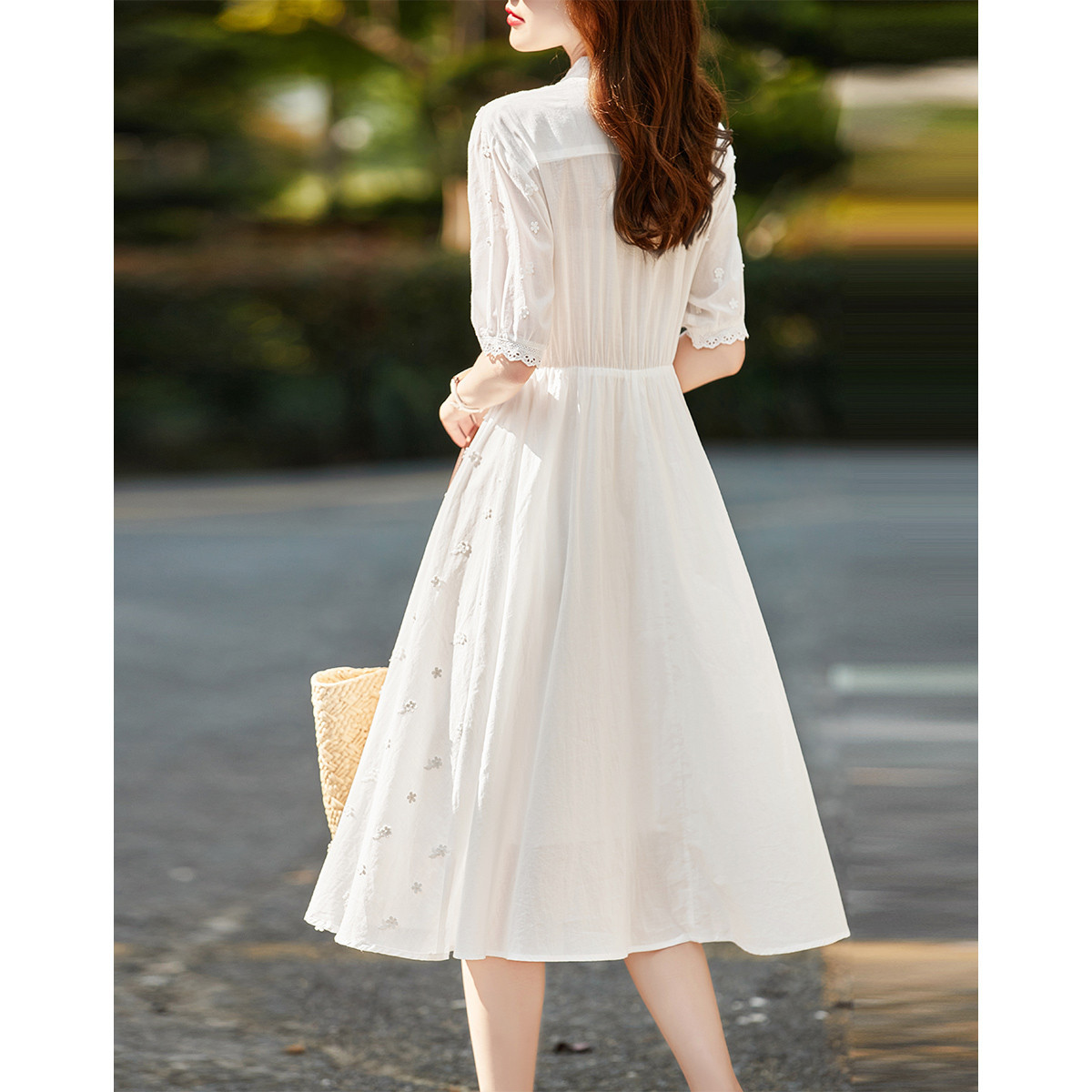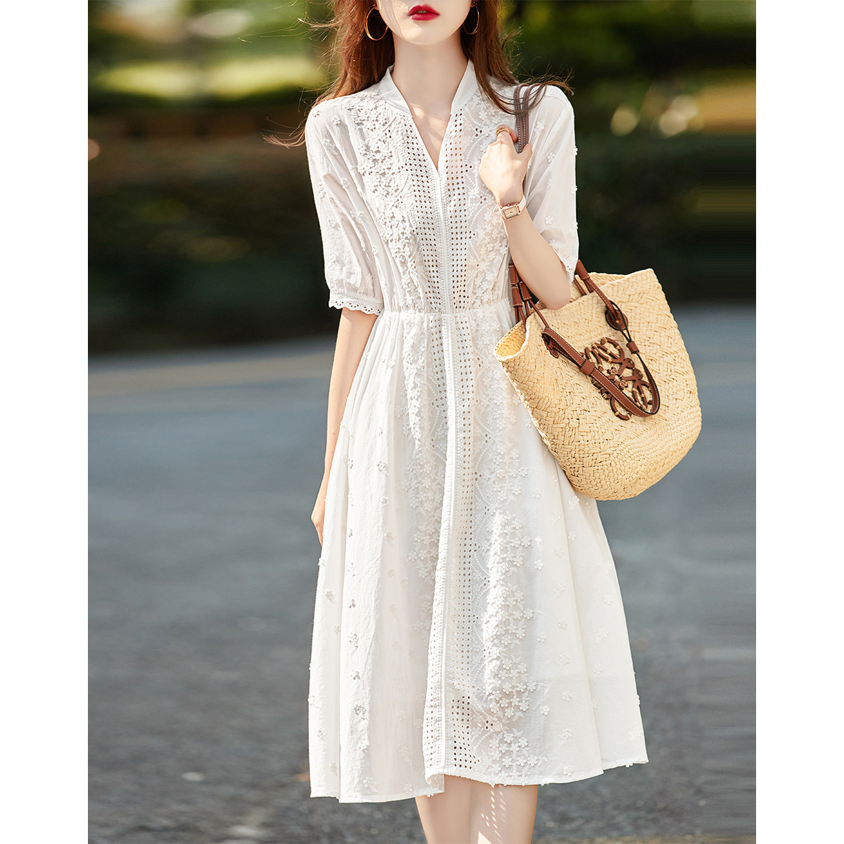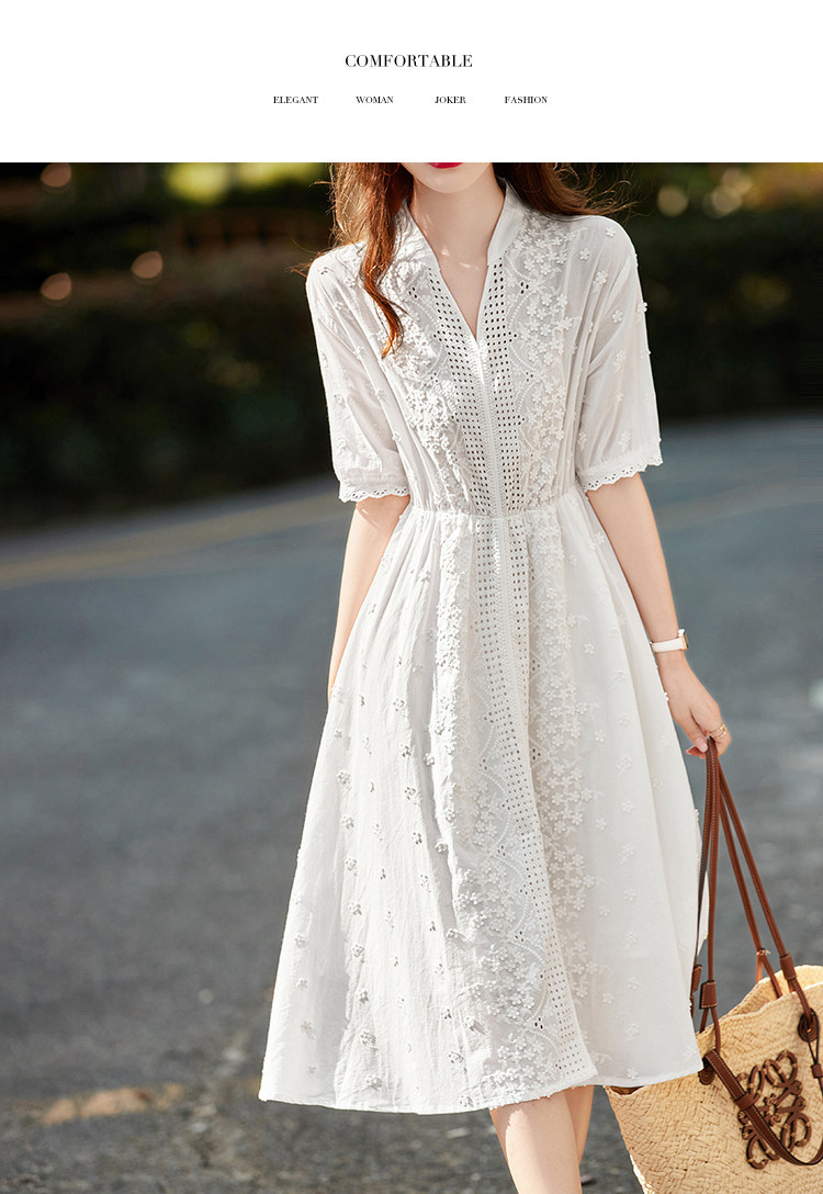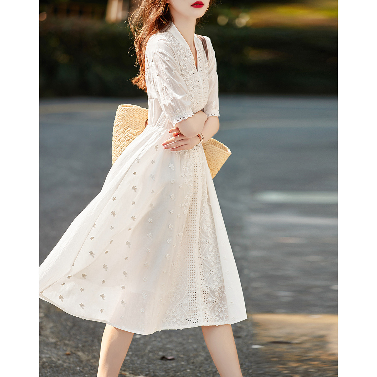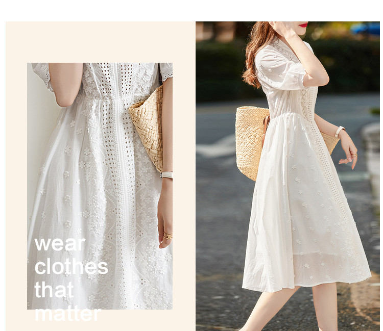 Chiếc váy mặc mùa hè này có chất vải mềm mại, thoáng mát. Thiết kế kiểu cách trẻ trung với cổ chữ V, tay dài đến khuỷu tay, điểm nhấn là đường viền đăng ten và họa tiết thêu tinh tế trên vải. Bạn có thể mặc đi làm, đi chơi hay dự tiệc nhẹ nhàng đều phù hợp. Sản phẩm dễ dàng phối với giày dép và phụ kiện, giặt tay hoặc máy ở chế độ nhẹ để giữ form váy đẹp lâu. | Tên sản phẩm: Váy Đầm Liền Thân Nữ Chất Liệu Vải Bông Thêu Họa Tiết Hoa Cổ Chữ V Hàng Mùa Hè Phong Cách Hàn Quốc - Thời Trang Nữ | Mã sản phẩm: K2715 - Giá: 620.000đ | Mã nhà sản xuất: SHREIA-G02Hình ảnh sản phẩm
