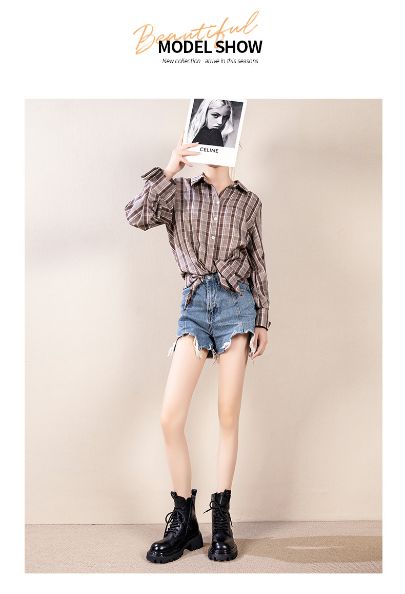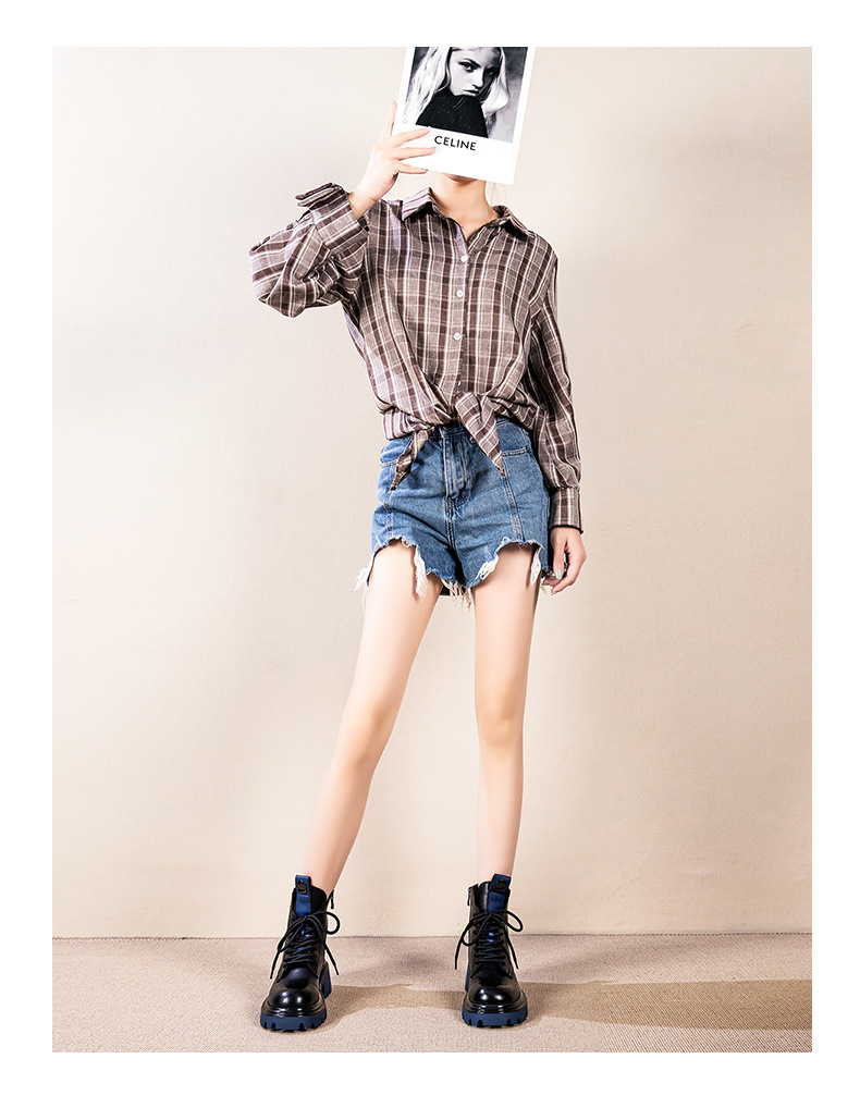Bốt cổ trung với phần đế dày vững chãi, tạo điểm nhấn mạnh mẽ cho bước chân. Sản phẩm được làm từ chất liệu da thật, mang lại cảm giác mềm mại và bền lâu. Kiểu dáng cổ điển, phù hợp để phối cùng nhiều trang phục như quần jeans hay váy trong tiết trời mát mẻ. Bạn chỉ cần xỏ vào và kéo khóa phía sau là đã có ngay một diện mật thời trang năng động và cá tính. | Tên sản phẩm: Boot Cổ Thấp Nữ Chất Liệu Da Bò Kẻ Caro Kẻ Caro Đế Cao Hàng Mùa Xuân Thu Đông - Giày Dép Nữ | Mã sản phẩm: K2777 - Giá: 2.190.000đ | Mã nhà sản xuất: WEDSH-G05Hình ảnh sản phẩm