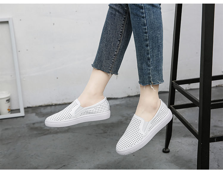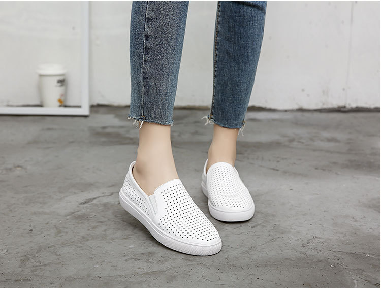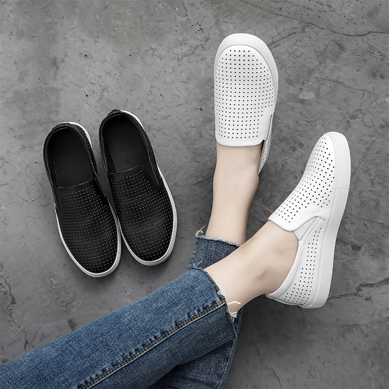 Giày lười nữ thiết kế những lỗ nhỏ xinh xắn, mang đến sự mát mẻ và thoáng khí tuyệt vời cho đôi chân trong mùa hè. Kiểu dáng giày thể thao năng động, dễ dàng xỏ chân vào mà không cần cột dây. Đế bằng phẳng giúp bạn di chuyển thoải mái cả ngày, phù hợp cho nhiều hoạt động thường ngày. Sản phẩm có màu trắng dễ phối đồ, dùng tốt cho việc đi học hay dạo phố. Chỉ cần chọn đúng cỡ và giữ sạch sẽ sau khi sử dụng. | Tên sản phẩm: Giày Dép Sandal Nữ Chất Liệu Da Bò Thoáng Khí Hàng Mùa Hè - Giày Dép Nữ | Mã sản phẩm: k2824 - Giá: 1.380.000đ | Mã nhà sản xuất: WEDI-G04Hình ảnh sản phẩm