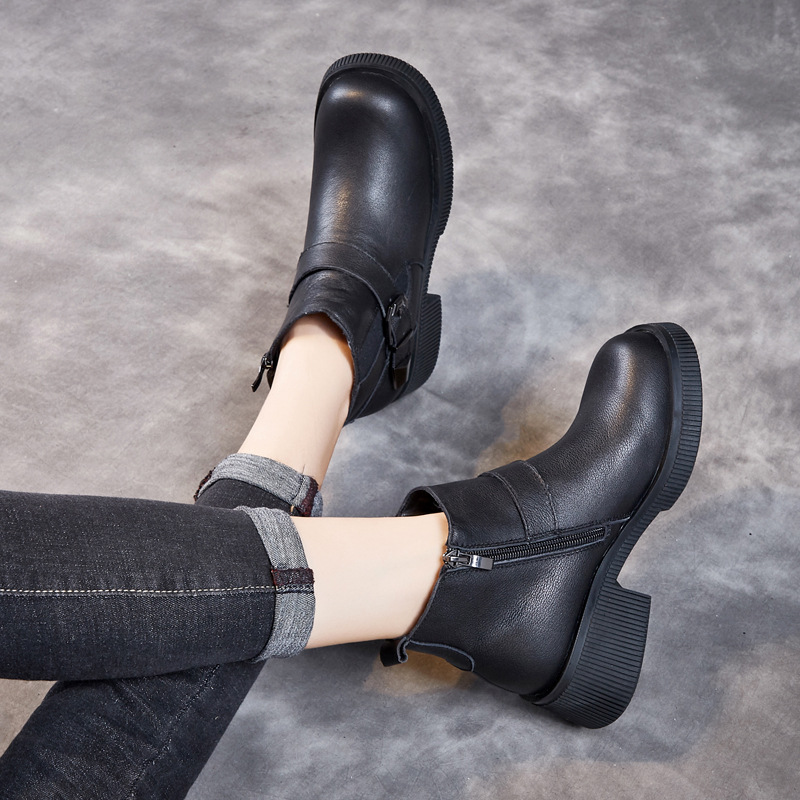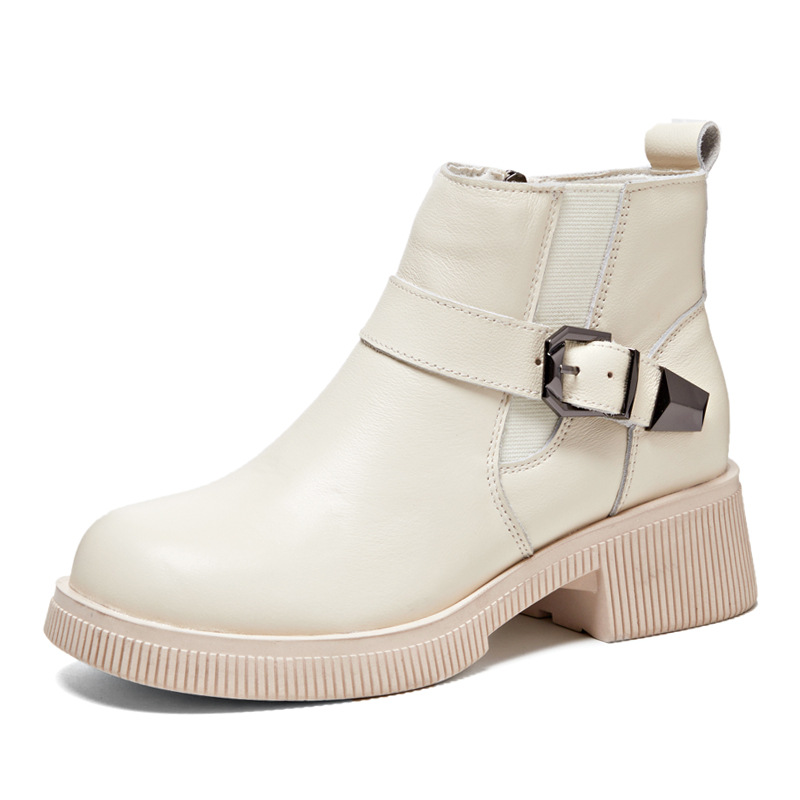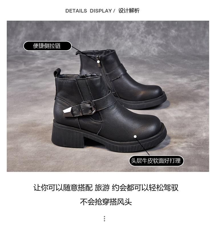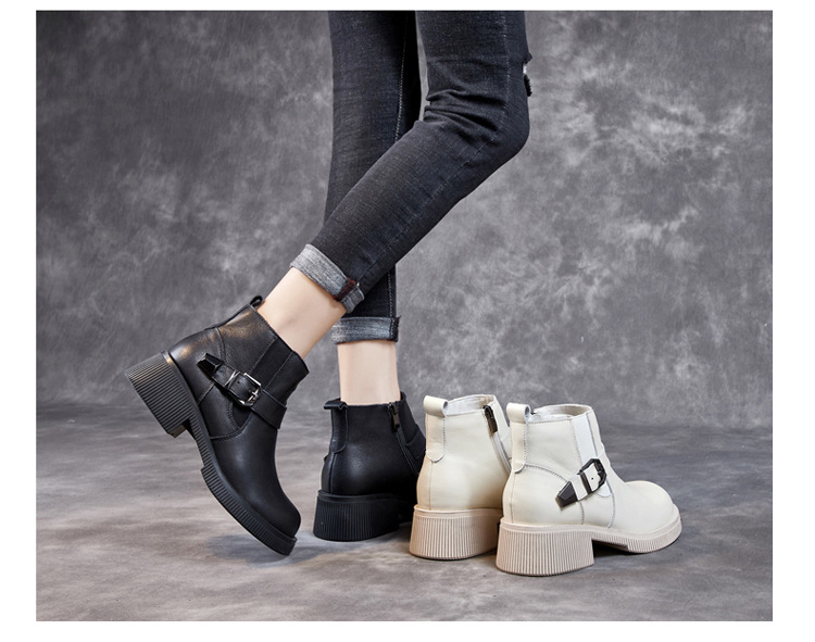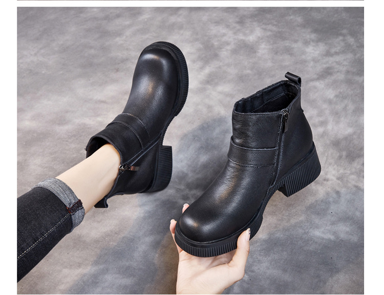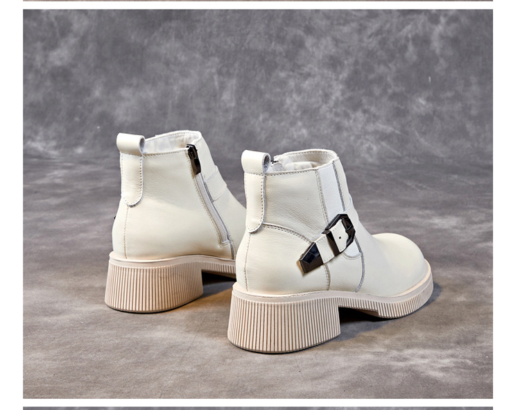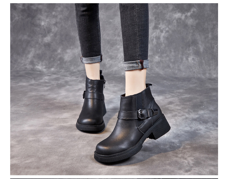 Đôi bốt cổ thấp này có phần đế được làm dày một cách vừa phải, giúp tôn dáng người mặc. Sản phẩm làm từ chất liệu da thật bền đẹp, kiểu dáng mang phong cách cổ điển. Bốt ôm vừa vặn phần cổ chân, phù hợp để phối cùng nhiều loại trang phục như quần jeans hay váy. Bạn có thể sử dụng hằng ngày cho những dịch đi chơi, đi học hoặc đi làm. Chỉ cần lau sạch bề mặt bằng khăn mềm là đã có thể giữ gìn đôi bốt. | Tên sản phẩm: Boot Cổ Thấp Nữ Chất Liệu Da Bò Đế Cao Hàng Mùa Xuân Thu Đông - Giày Dép Nữ | Mã sản phẩm: k2835 - Giá: 1.460.000đ | Mã nhà sản xuất: WEDI-G04Hình ảnh sản phẩm