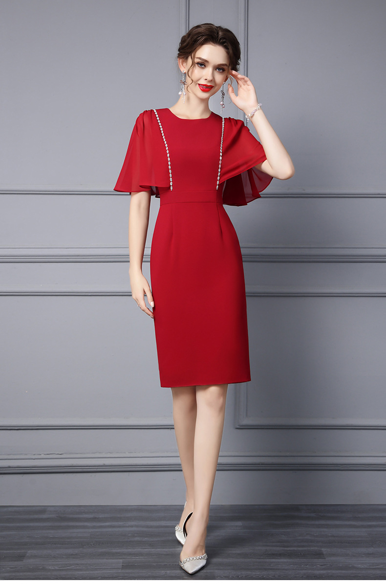 Chiếc váy đỏ này có thiết kế vừa vặn ôn cơ thể, giúp tôn dáng một cách tinh tế. Điểm nhấn đặc biệt là phần tay áo kiểu cánh dơi bằng vải mỏng nhẹ, tạo dáng duyên dáng và che đi phần bắp tay một cách khéo léo. Trên váy được trang trí thêm những hạt đá lấp lánh, tăng thêm phần nổi bật. Kiểu dáng phù hợp cho những buổi gặp mặt cần trang phục chỉn chu. Mặc cùng giày cao gót để hoàn thiện bộ trang phục. | Tên sản phẩm: Váy Đầm Liền Thân Nữ Hàng Mùa Hè - Thời Trang Nữ | Mã sản phẩm: K2854 - Giá: 2.780.000đ | Mã nhà sản xuất: SHDAP-G06Hình ảnh sản phẩm