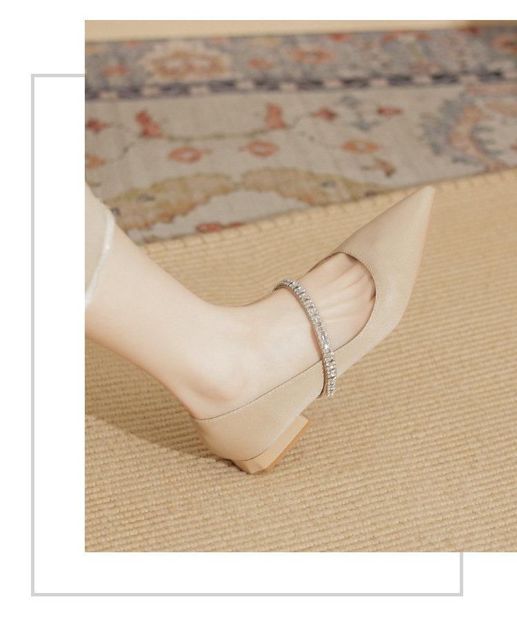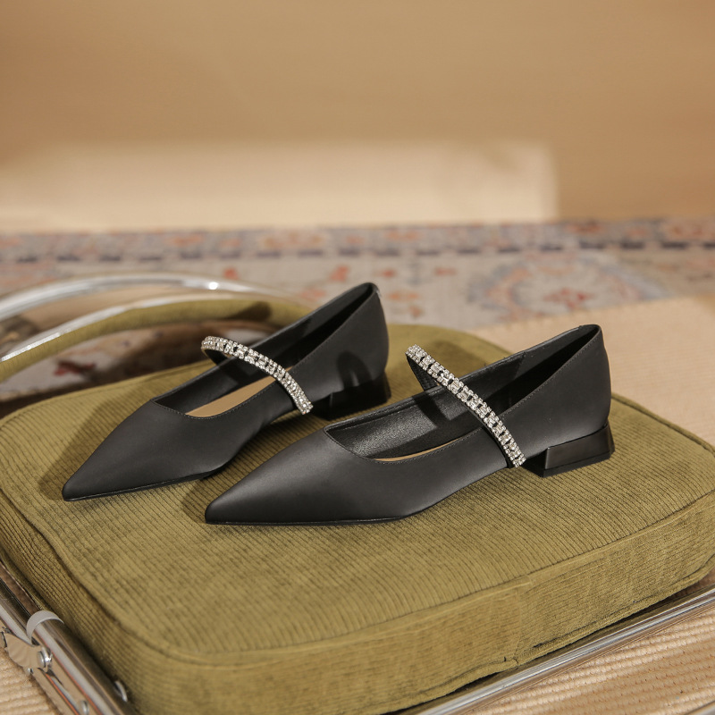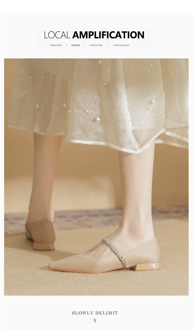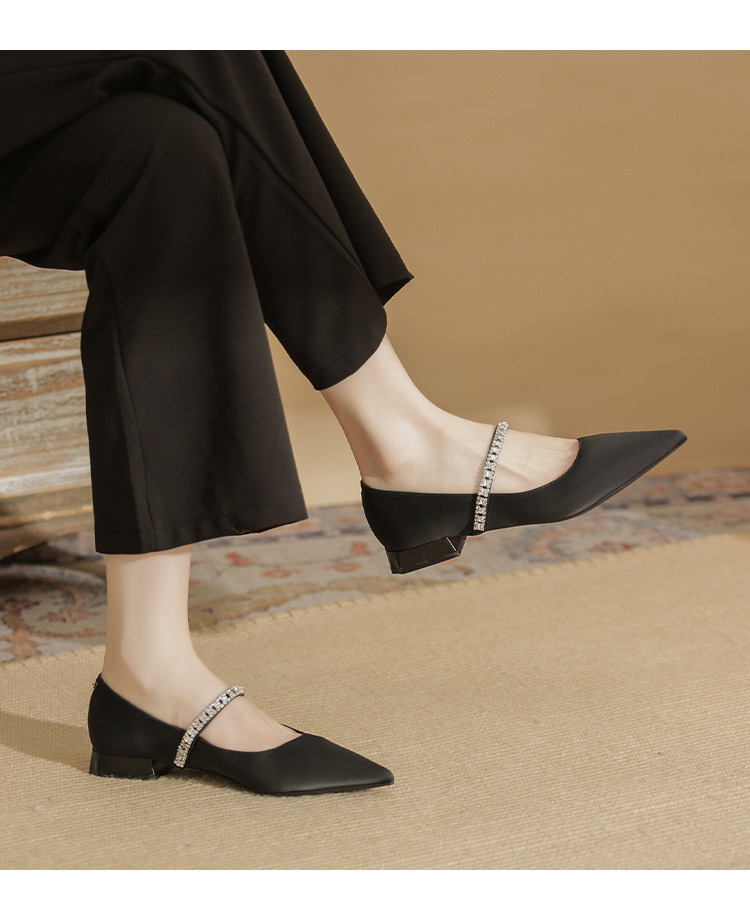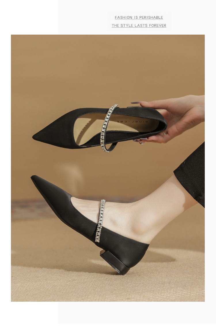Đôi giày nữ thiết kế thời trang với phần mũi nhọn thanh lịch. Sản phẩm có đế thấp vững chãi, được điểm xuyết bằng dây đính hạt cầu kỳ tạo điểm nhấn tinh tế. Kiểu dáng dây ngang cổ điển ôm vừa vặn bàn chân, mang đến sự thoải mái khi mang. Bạn có thể dễ dàng phối cùng nhiều loại trang phục như váy, quần âu để tạo vẻ nữ tính và lịch sự cho các dịp gặp mặt. | Tên sản phẩm: Giày Cao Gót Nữ Gắn Đá Mũi Nhọn Gót Vuông - Giày Dép Nữ | Mã sản phẩm: K2898 - Giá: 910.000đ | Mã nhà sản xuất: HUDS-G03Hình ảnh sản phẩm