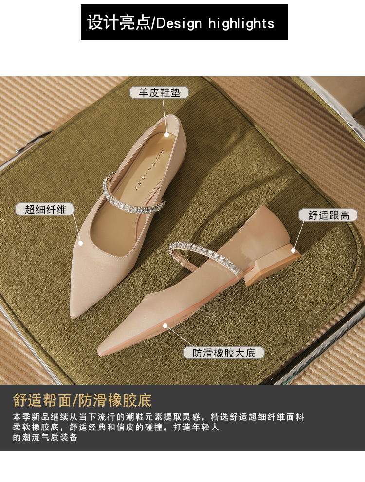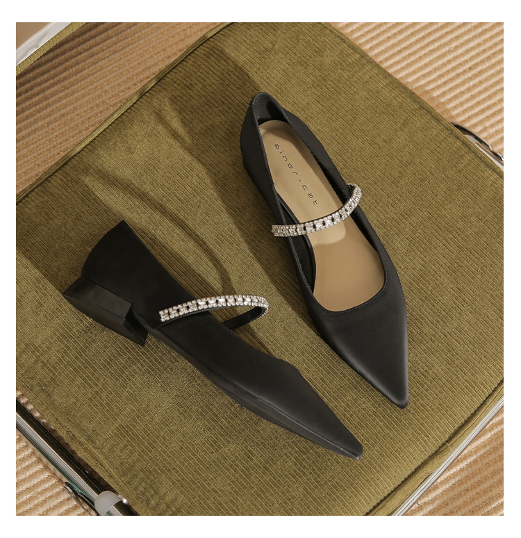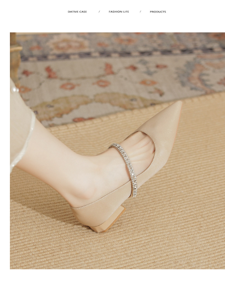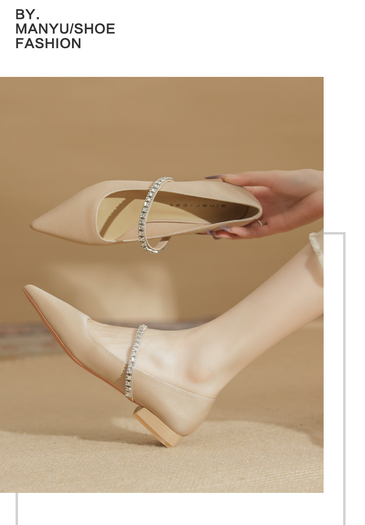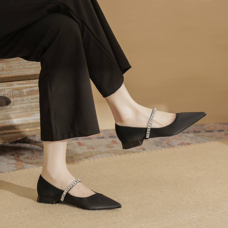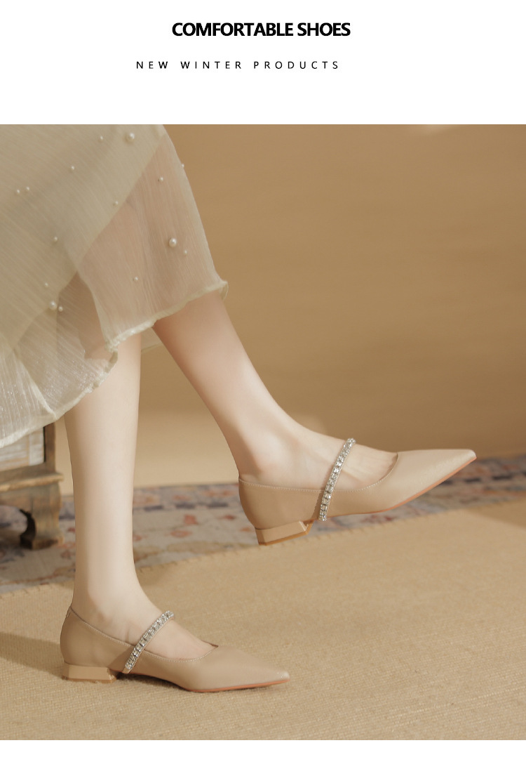 Đôi giày nữ thiết kế thời trang với phần mũi nhọn thanh lịch. Sản phẩm có đế thấp vững chãi, được điểm xuyết bằng dây đính hạt cầu kỳ tạo điểm nhấn tinh tế. Kiểu dáng dây ngang cổ điển ôm vừa vặn bàn chân, mang đến sự thoải mái khi mang. Bạn có thể dễ dàng phối cùng nhiều loại trang phục như váy, quần âu để tạo vẻ nữ tính và lịch sự cho các dịp gặp mặt. | Tên sản phẩm: Giày Cao Gót Nữ Gắn Đá Mũi Nhọn Gót Vuông - Giày Dép Nữ | Mã sản phẩm: K2898 - Giá: 910.000đ | Mã nhà sản xuất: HUDS-G03Hình ảnh sản phẩm