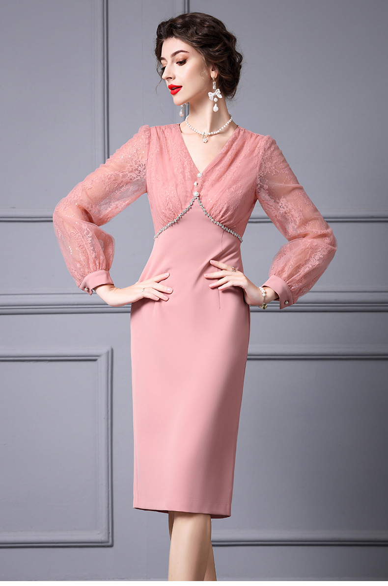 Chiếc đầm dáng ôm body dành cho mùa xuân, được thiết kế với phần cổ chữ V tôn dáng. Điểm nhấn đặc biệt đến từ những hạt đính cầu kỳ và phần tay dài kết hợp vải mạng xuyên thấu, tạo nên vẻ đẹp vừa dịu dàng vừa quyến rũ. Sản phẩm có màu hồng nhẹ nhàng, phù hợp để mặc đi làm hoặc dự tiệc. Bạn chỉ cần giặt nhẹ và phơi khô tự nhiên để giữ dáng đầm bền đẹp. | Tên sản phẩm: Váy Đầm Liền Thân Nữ Dài Tay Lưới Mỏng Hàng Mùa Xuân Thu Đông - Thời Trang Nữ | Mã sản phẩm: K2914 - Giá: 2.640.000đ | Mã nhà sản xuất: SHDAP-G06Hình ảnh sản phẩm