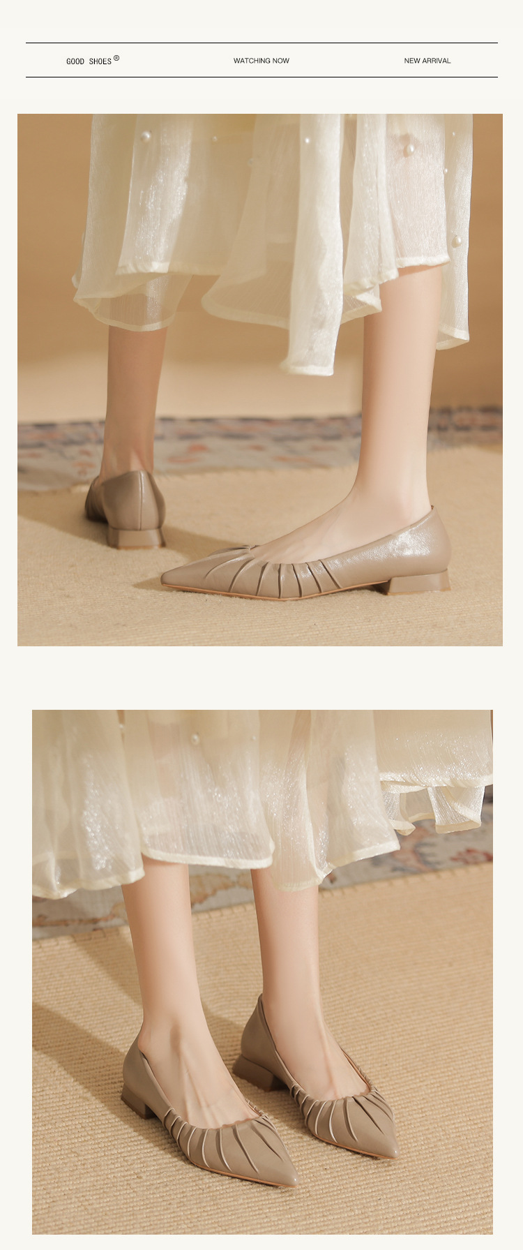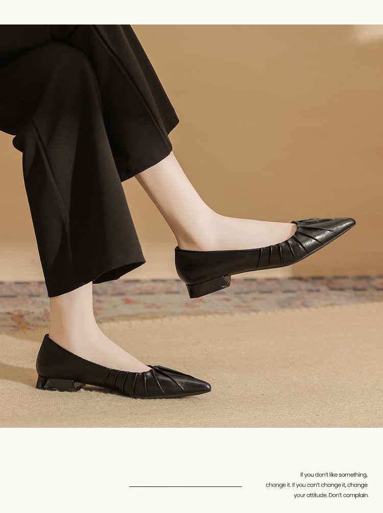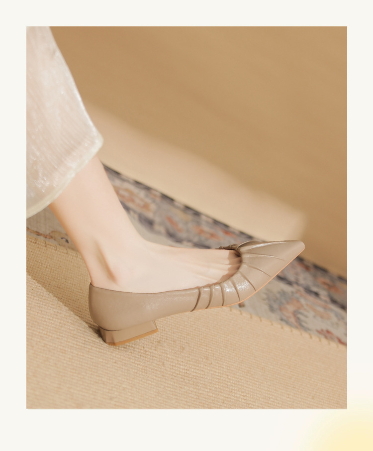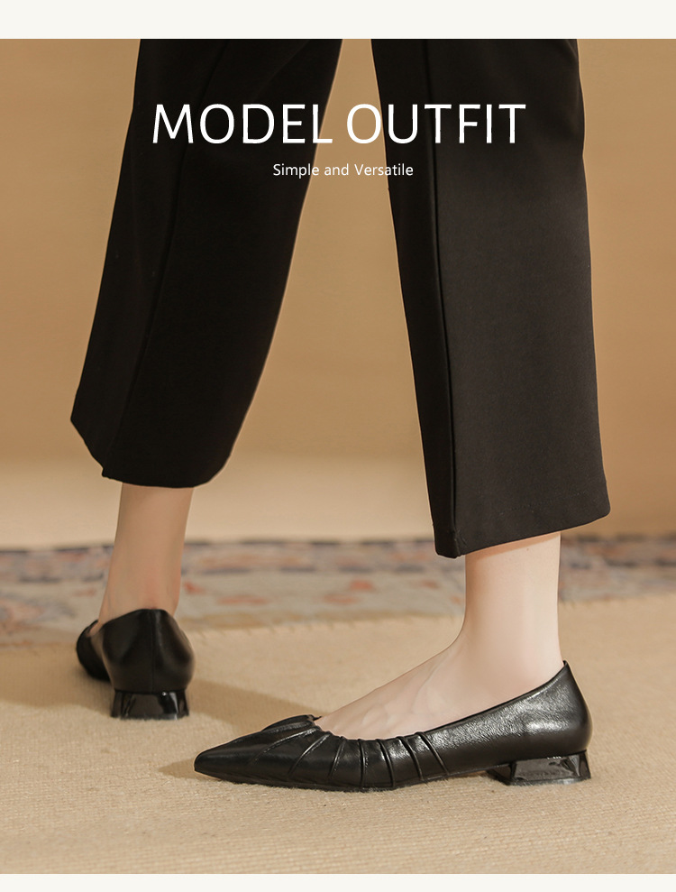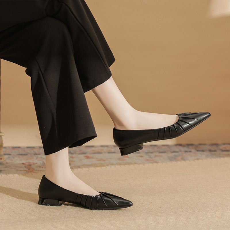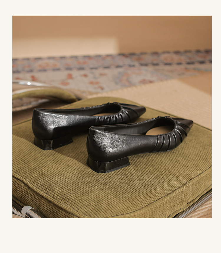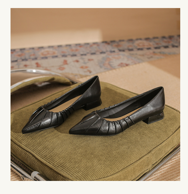 Giày bệt nữ thiết kế kiểu Pháp thanh lịch, phù hợp cho mùa thu. Sản phẩm có phần mũi nhọn tinh tế, đi kèm đế thấp vững chãi giúp bạn dễ dàng di chuyển cả ngày. Phần mặt giày được tạo hình xếp ly mềm mại, ôm nhẹ vào bàn chân. Bạn có thể phối hợp với nhiều trang phục như quần âu, váy liền để tạo điểm nhấn nổi bật. | Tên sản phẩm: Giày Cao Gót Nữ Mũi Nhọn Gót Vuông Hàng Mùa Xuân Thu Đông - Giày Dép Nữ | Mã sản phẩm: K2946 - Giá: 870.000đ | Mã nhà sản xuất: HUDS-G03Hình ảnh sản phẩm