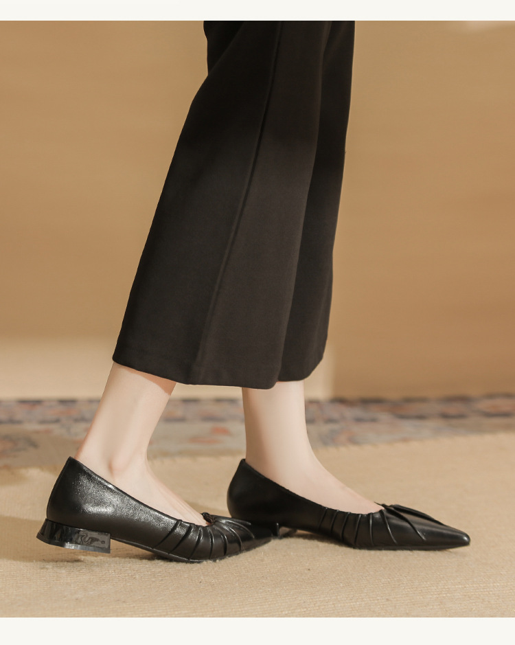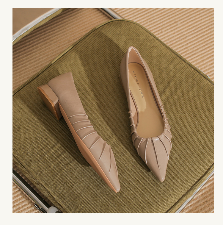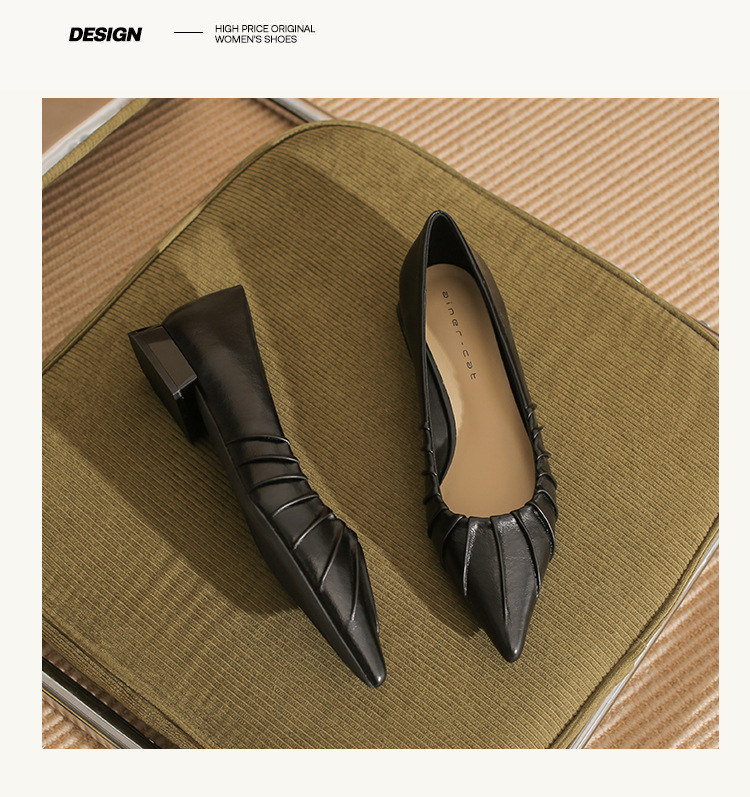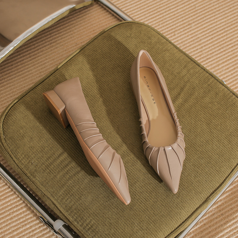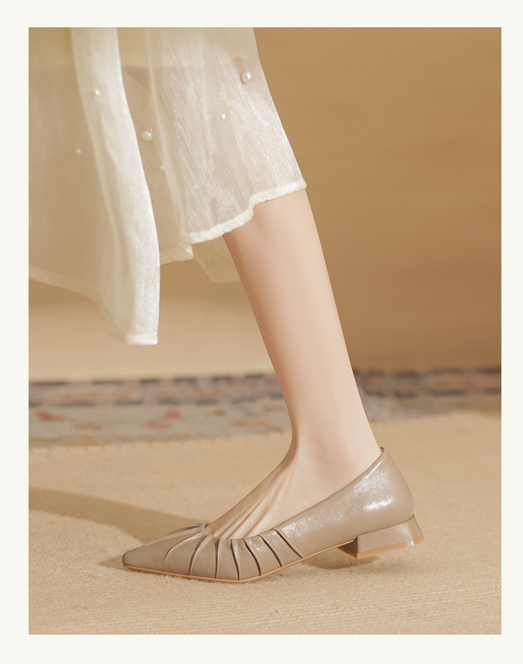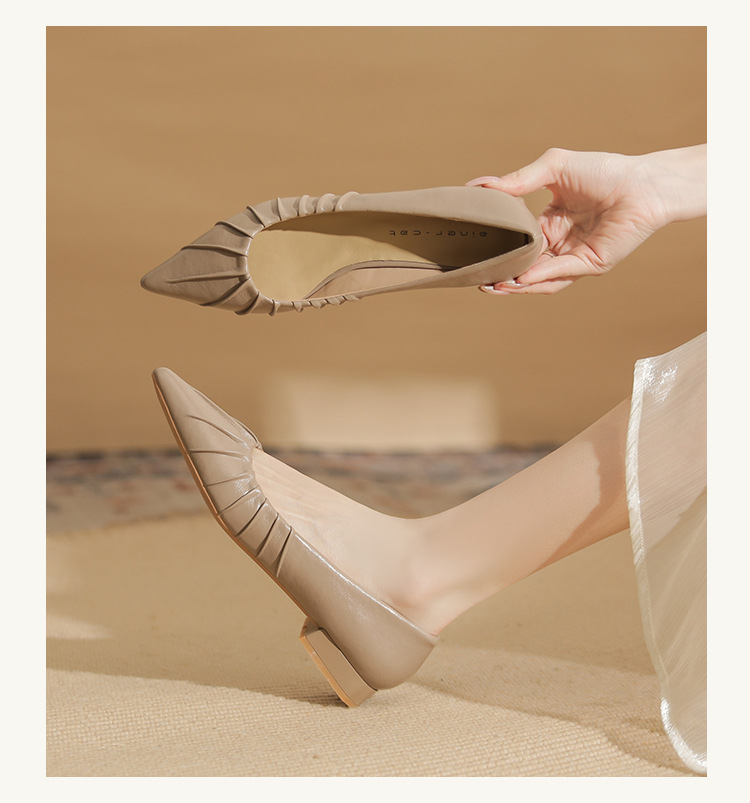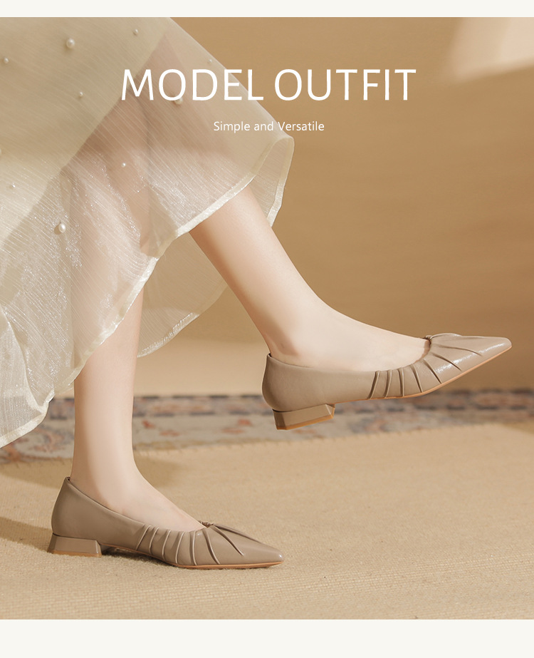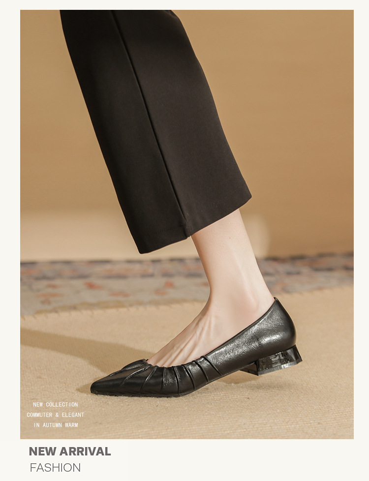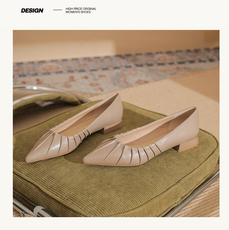 Giày bệt nữ thiết kế kiểu Pháp thanh lịch, phù hợp cho mùa thu. Sản phẩm có phần mũi nhọn tinh tế, đi kèm đế thấp vững chãi giúp bạn dễ dàng di chuyển cả ngày. Phần mặt giày được tạo hình xếp ly mềm mại, ôm nhẹ vào bàn chân. Bạn có thể phối hợp với nhiều trang phục như quần âu, váy liền để tạo điểm nhấn nổi bật. | Tên sản phẩm: Giày Cao Gót Nữ Mũi Nhọn Gót Vuông Hàng Mùa Xuân Thu Đông - Giày Dép Nữ | Mã sản phẩm: K2946 - Giá: 870.000đ | Mã nhà sản xuất: HUDS-G03Hình ảnh sản phẩm