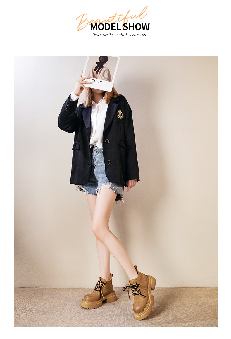Đôi bốt cổ thấp dành cho nữ, thiết kế cổ cao vừa phải ôm lấy mắt cá chân một cách thoải mái. Sản phẩm có phần đế được làm dày hơn một chút, giúp tăng thêm chiều cao và tạo cảm giác vững chãi khi di chuyển. Kiểu dáng rất dễ phối đồ, phù hợp cho những dịp đi chơi, dạo phố hay đi học hằng ngày. Bạn chỉ cần xỏ chân vào, kéo khóa nhẹ nhàng ở mặt bên là đã có ngay một phong cách năng động và ấm áp. | Tên sản phẩm: Giày Boot Cổ Thấp Nữ Đế Cao Hàng Mùa Xuân Thu Đông - Giày Dép Nữ | Mã sản phẩm: K2949 - Giá: 1.810.000đ | Mã nhà sản xuất: WEDSH-G05Hình ảnh sản phẩm