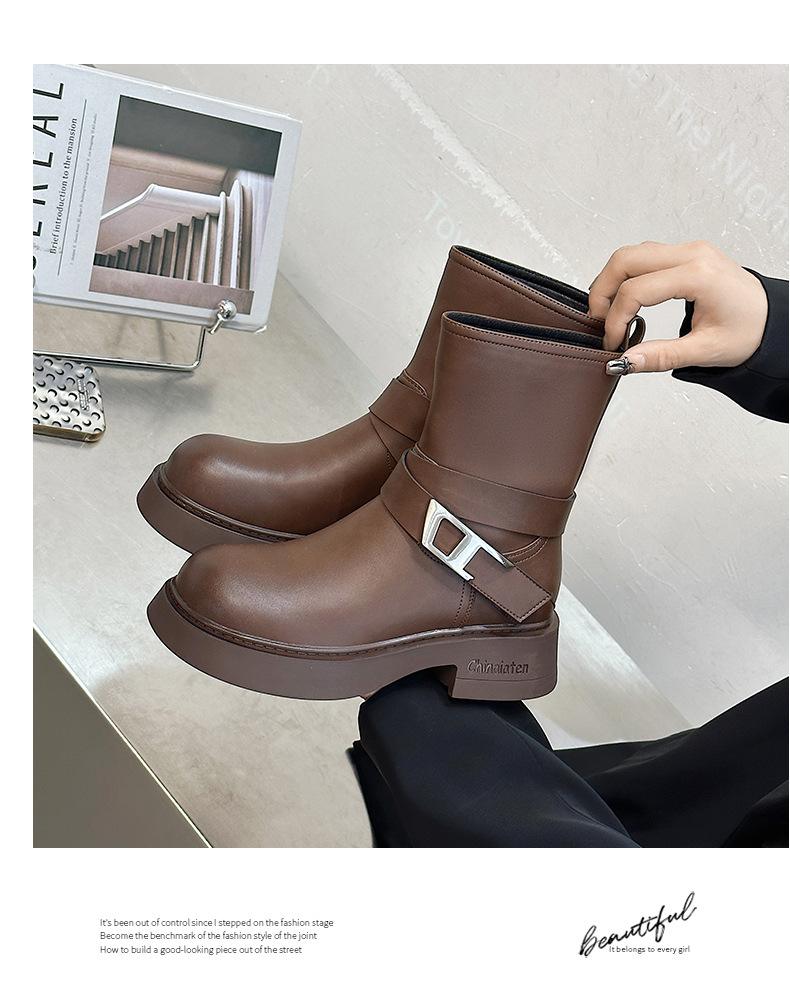 Đôi bốt cổ trung này có phần đế được làm dày dặn, tạo dáng khỏe khoắn và nổi bật với khóa cài dây đeo ở phía trước. Kiểu dáng mang phong cách mạnh mẽ, phù hợp để phối cùng nhiều loại trang phục khác nhau. Bạn có thể dễ dàng xỏ chân vào nhờ thiết kế dây kéo khóa bên hông. Sản phẩm thích hợp để mang trong những ngày thời tiết mát mẻ hoặc se lạnh. | Tên sản phẩm: Boot Martin Nữ Kẻ Caro Kẻ Caro Đế Cao Hàng Mùa Xuân Thu Đông - Giày Dép Nữ | Mã sản phẩm: K2958 - Giá: 2.000.000đ | Mã nhà sản xuất: WEDSH-G05Hình ảnh sản phẩm
