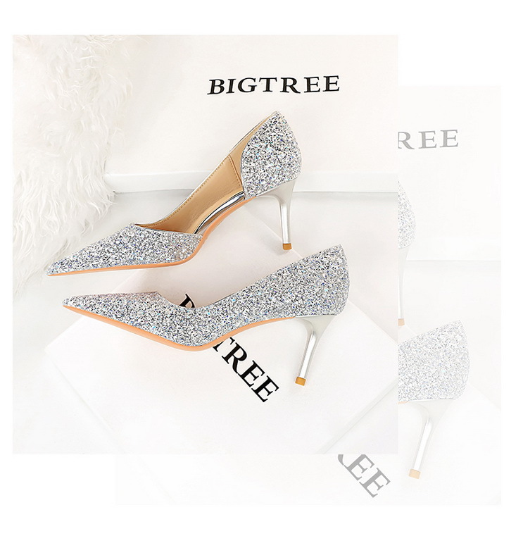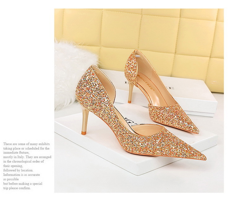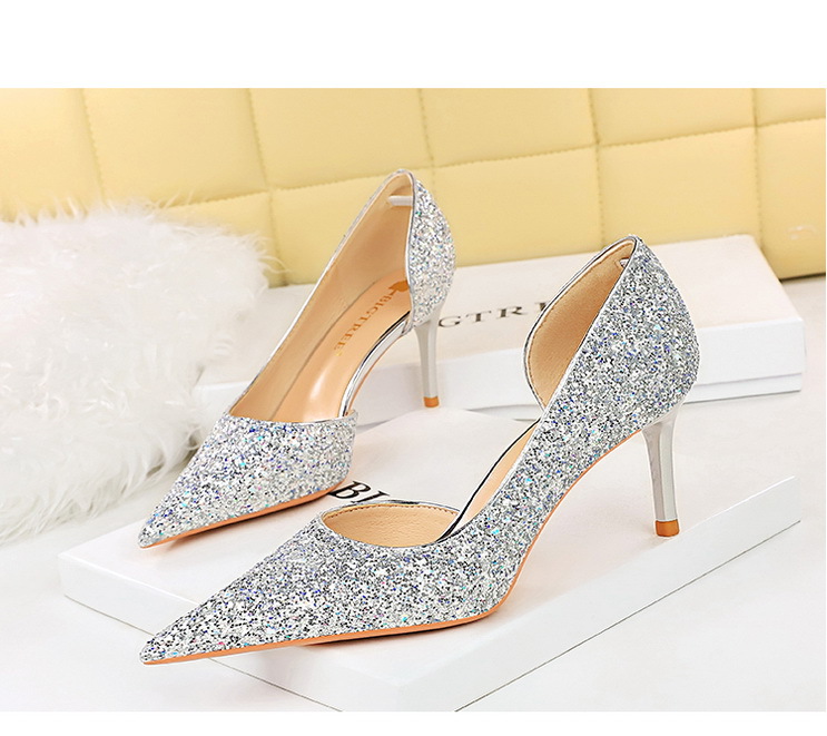 Đôi giày này mang phong cách phương Tây hiện đại, phù hợp cho những buổi tối vui chơi. Kiểu dáng mũi nhọn cùng phần cổ rộng tạo cảm giác chân thon dài. Điểm nhấn đặc biệt ở thiết kế khoét mềm mại hai bên hông, kết hợp những mảnh lấp lánh phủ toàn thân. Sản phẩm có phần gót cao vừa phải giúp tôn dáng. Cách dùng đơn giản, chỉ cần xỏ chân vào và cài qu gót là đã sẵn sàng diện cùng nhiều trang phục. | Tên sản phẩm: Giày Cao Gót Nữ Mũi Nhọn Phong Cách Âu Mỹ - Giày Dép Nữ | Mã sản phẩm: K2978 - Giá: 600.000đ | Mã nhà sản xuất: PITYIN-G01Hình ảnh sản phẩm