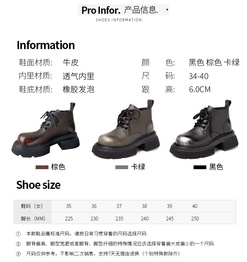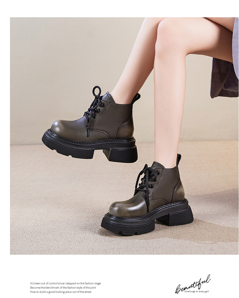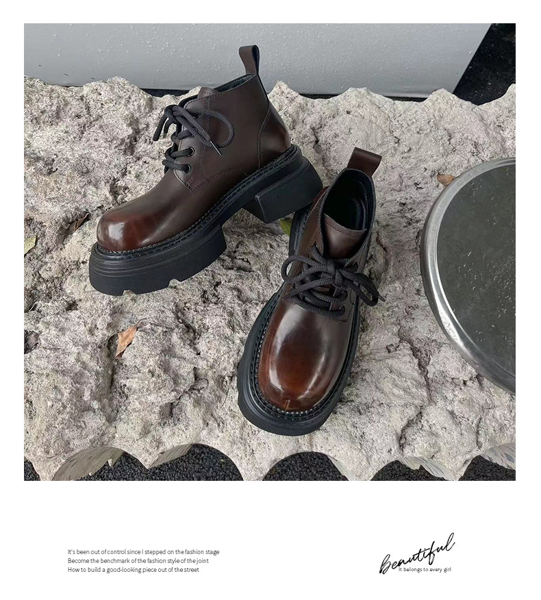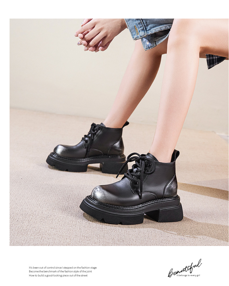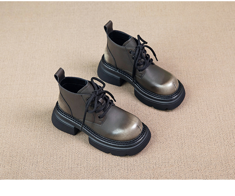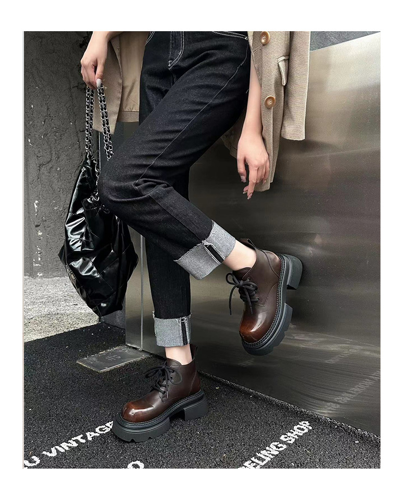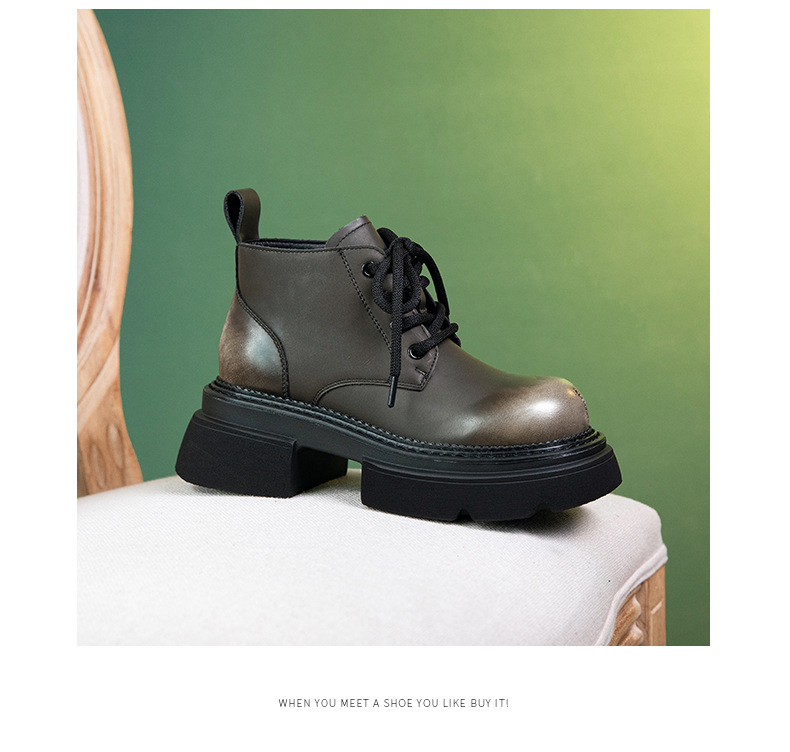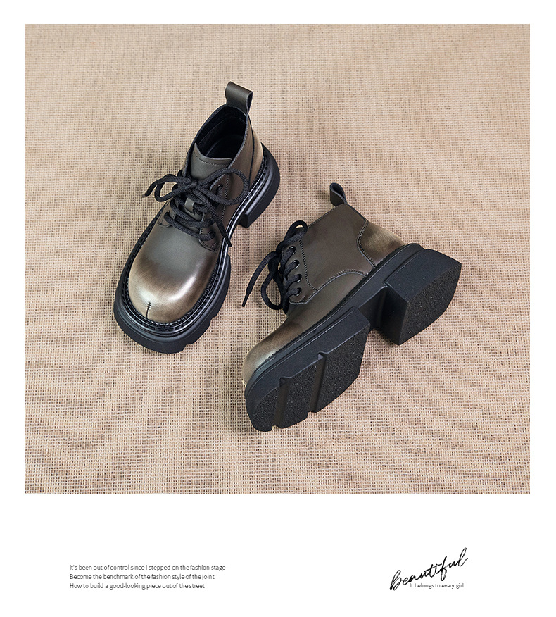 Đôi bốt cổ thấp này mang phong cách hoài cổ với lớp hoàn thiện màu được chà nhẹ tạo vẻ đẹp có chiều sâu. Phần đế được làm dày một cách vừa phải, kết hợp cùng gót hình vuông chắc chắn, giúp tôn dáng và tạo cảm giác thoải mái khi di chuyển. Kiểu dáng cứng cáp, phù hợp để phối cùng nhiều loại trang phục khác nhau. Sản phẩm dùng tốt trong những thời tiết mát mẻ. | Tên sản phẩm: Boot Cổ Thấp Nữ Đế Cao Hàng Mùa Xuân Thu Đông Phục Cổ Cổ Điển - Giày Dép Nữ | Mã sản phẩm: K2989 - Giá: 1.710.000đ | Mã nhà sản xuất: WEDSH-G05Hình ảnh sản phẩm
