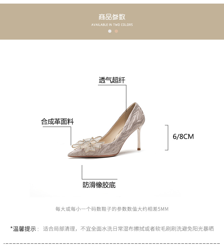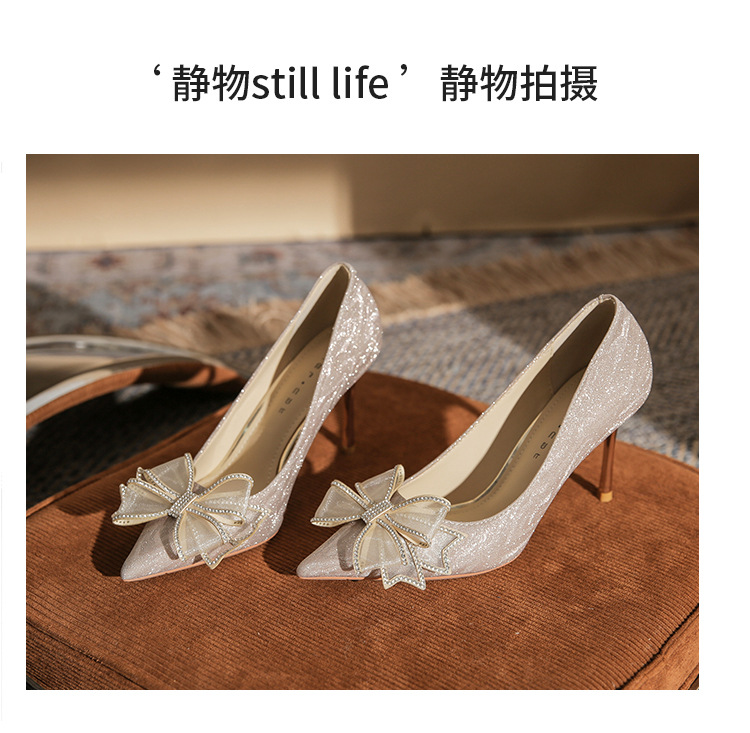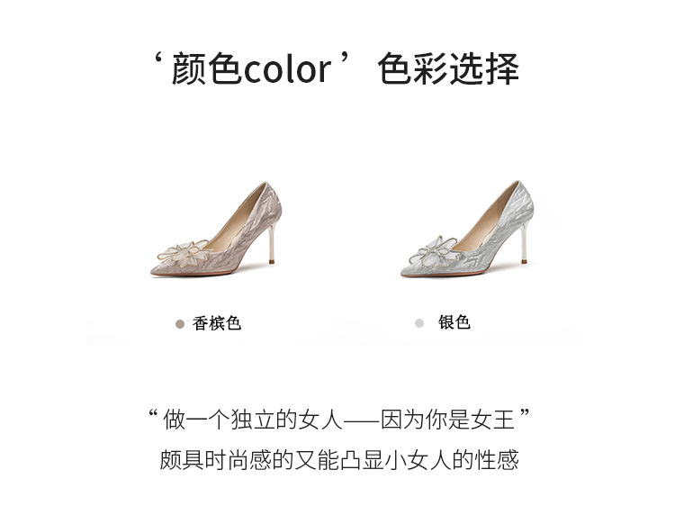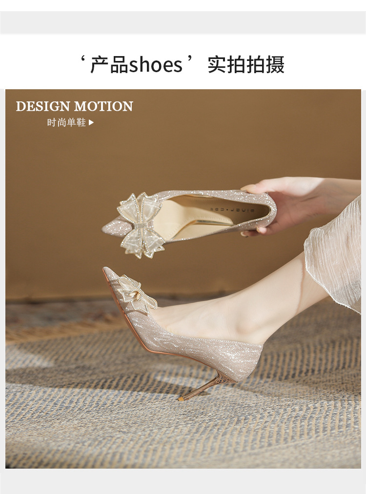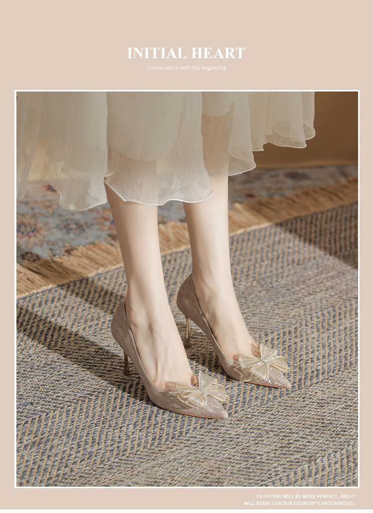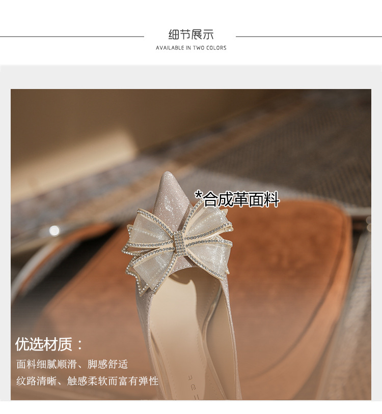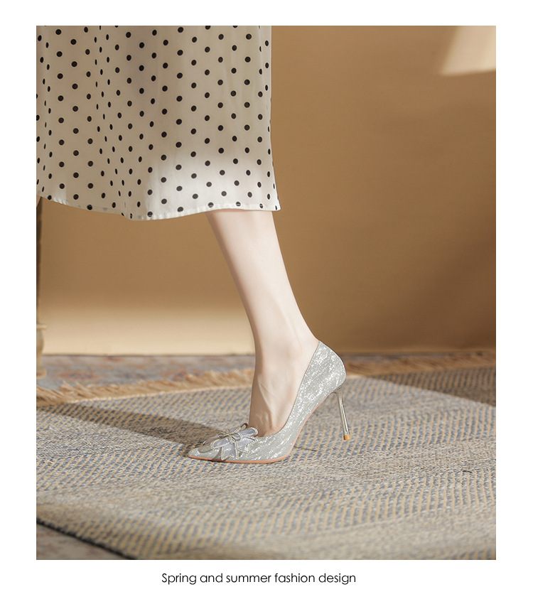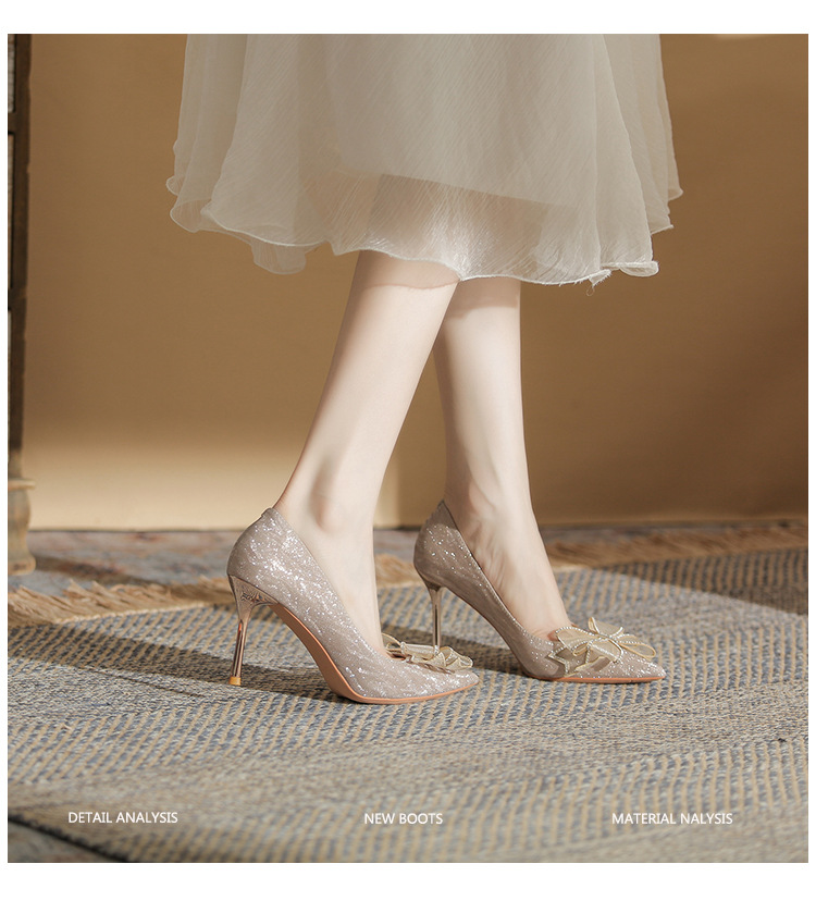 Đôi giày này có phần mũi nhọn thanh lịch, được điểm xuyết nơ thắt cùng những chi tiết lấp lánh như pha lê. Chất liệu mềm mại ôm chân, mang lại cảm giác dễ chịu. Kiểu dáng gót thanh, phù hợp cho các dịp như làm cô dâu, phụ dâu hay dự tiệc. Khi sử dụng, bạn nên chọn cỡ vừa vặn và đi những bước nhẹ nhàng lúc đầu để làm quen. | Tên sản phẩm: Giày Cao Gót Nữ Thắt Nơ Bướm Gắn Đá Mũi Nhọn Gót Nhọn Dùng Trong Lễ Cưới - Giày Dép Nữ | Mã sản phẩm: K2993 - Giá: 870.000đ | Mã nhà sản xuất: HUDS-G03Hình ảnh sản phẩm
