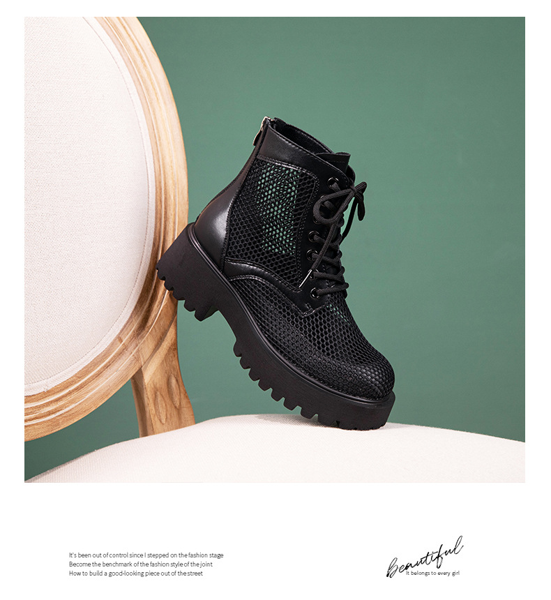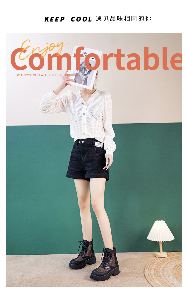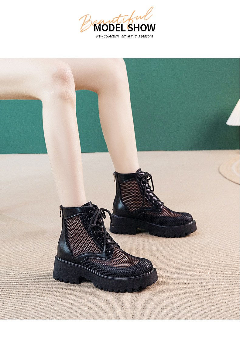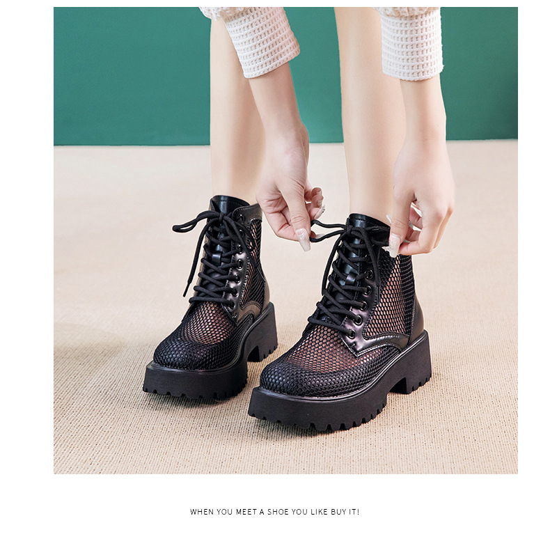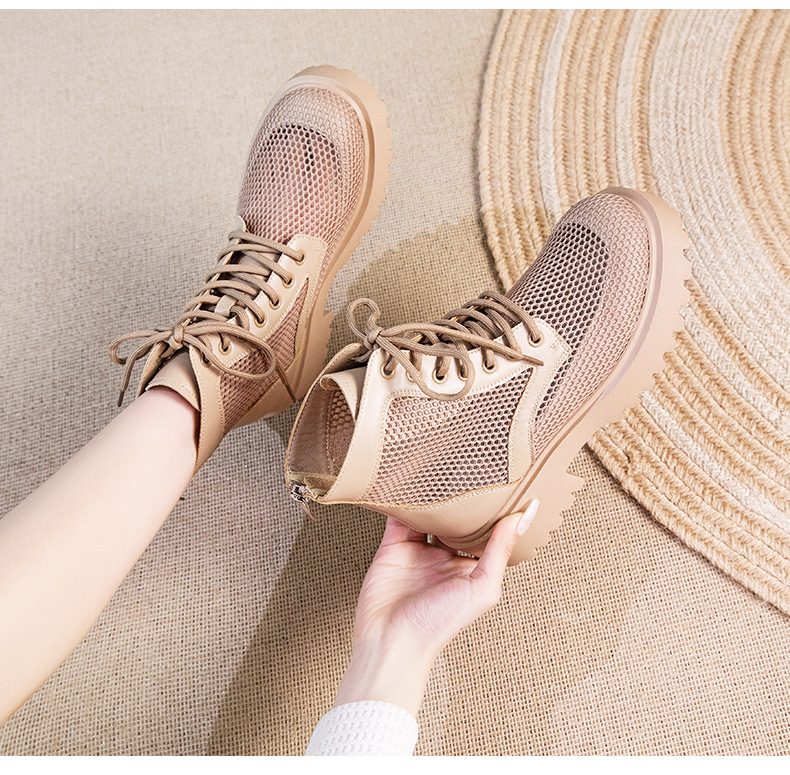 Đôi bốt mùa hè này có thiết kế cổ cao, phối cùng phần mặt trên làm từ chất liệu lưới thoáng khí, tạo cảm giác dễ chịu khi mang. Kiểu dáng lỗ tổ ong xuyên suốt thân giày giúp không khí lưu thông tốt, mang lại sự mát mẻ cho đôi chân. Bạn có thể phối cùng quần soóc, váy ngắn hay quần jeans để tạo nên những phong cách trẻ trung, năng động. Sản phẩm phù hợp cho những hoạt động thường ngày hoặc dạo phố. | Tên sản phẩm: Giày Dép Sandal Nữ Hàng Mùa Hè - Giày Dép Nữ | Mã sản phẩm: K3028 - Giá: 2.000.000đ | Mã nhà sản xuất: WEDSH-G05Hình ảnh sản phẩm