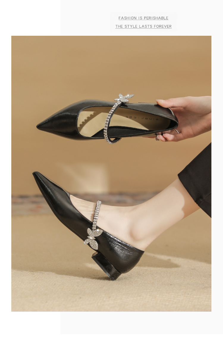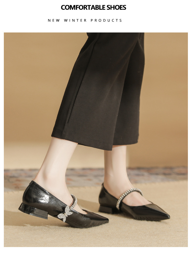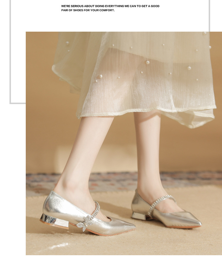 Đôi giày này có phần mũi nhọn thanh lịch, điểm tô nơ kết hợp đá lấp lánh tạo nên vẻ duyên dáng. Dây đeo chữ T ôm sát bàn chân, cùng với đế thấp vững chãi, giúp nâng đỡ tốt và dễ dàng di chuyển cả ngày. Kiểu dáng cổ điển phù hợp để phối cùng nhiều loại trang phục khác nhau. Bạn chỉ cần xỏ chân vào, điều chỉnh dây đeo và khóa lại là đã sẵn sàng. | Tên sản phẩm: Giày Cao Gót Nữ Thắt Nơ Bướm Gắn Đá Mũi Nhọn Gót Vuông - Giày Dép Nữ | Mã sản phẩm: K3093 - Giá: 940.000đ | Mã nhà sản xuất: HUDS-G03Hình ảnh sản phẩm