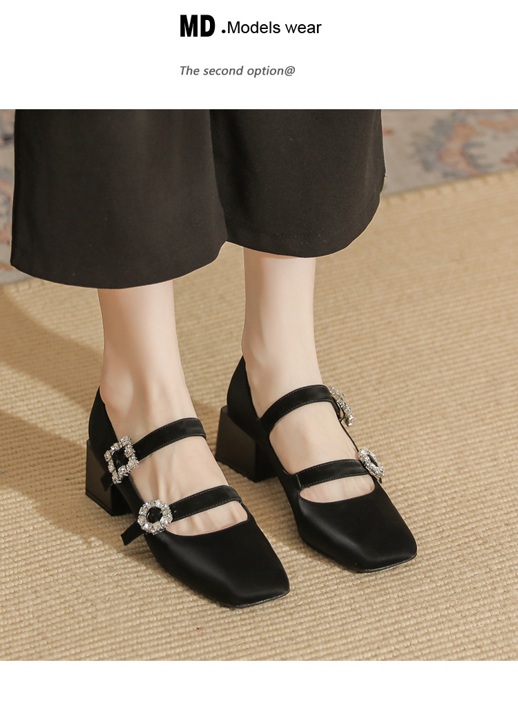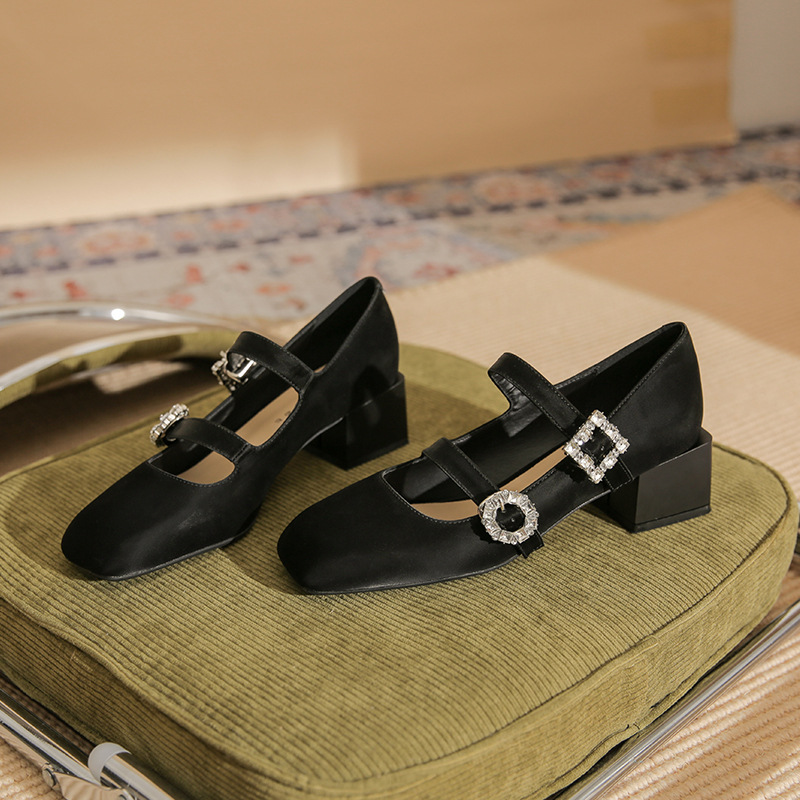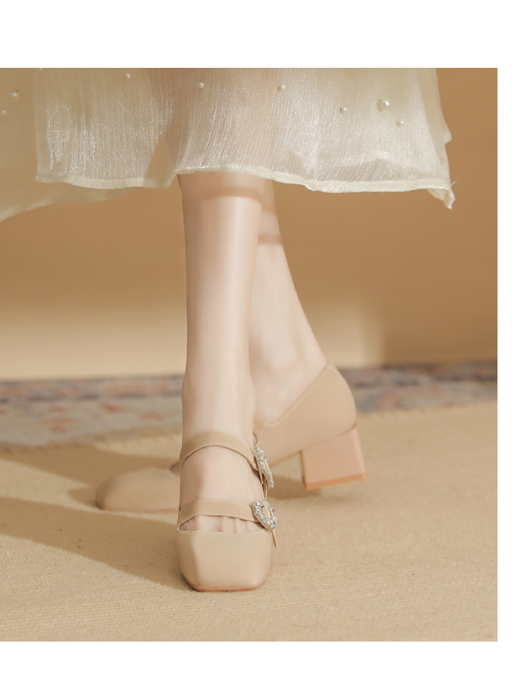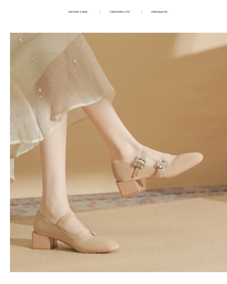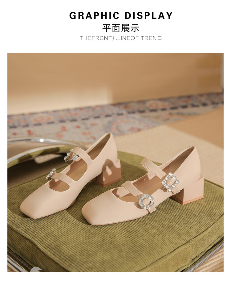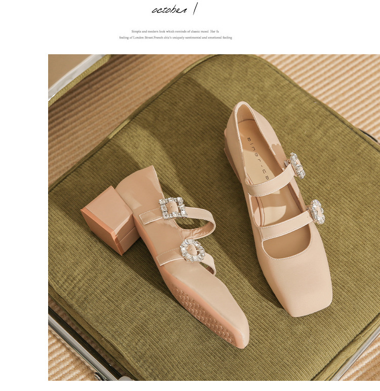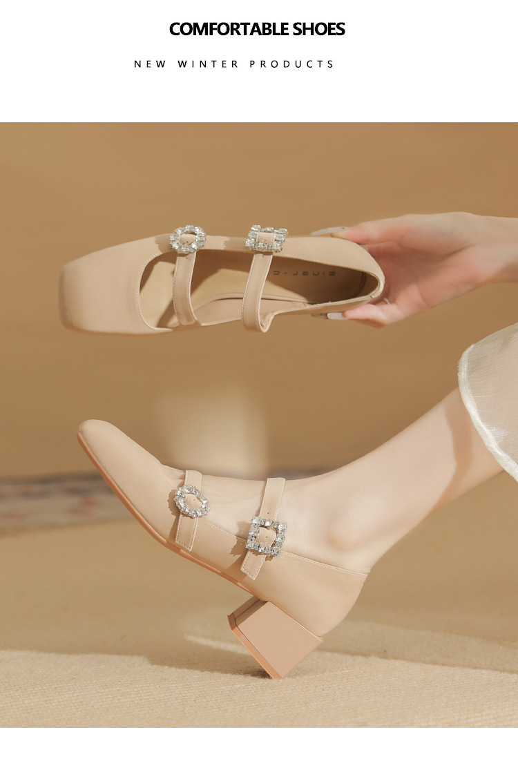 Giày búp bê với phần mũi vuông thời thượng, phối cùng dây ngang trang trí viên pha lê lấp lánh tạo điểm nhấn tinh tế. Sản phẩm sử dụng chất liệu da mềm mại, ôm chân nhẹ nhàng. Kiểu gót thấp vững chãi giúp bạn dễ dàng di chuyển cả ngày mà không lo mỏi chân. Dễ dàng phối cùng nhiều trang phục như váy, quần âu để tạo nên vẻ ngoài nữ tính và thanh lịch. | Tên sản phẩm: Giày Cao Gót Nữ Gắn Đá Gót Vuông - Giày Dép Nữ | Mã sản phẩm: K3103 - Giá: 910.000đ | Mã nhà sản xuất: HUDS-G03Hình ảnh sản phẩm