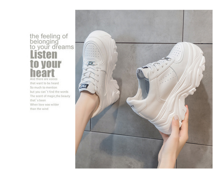 Giày thể thao nữ thiết kế đế xuồng dễ phối đồ, có phần đệm hỗ trợ tăng chiều cao một cách tự nhiên bên trong. Sản phẩm làm từ chất liệu da mềm, mang lại cảm giác dễ chịu khi sử dụng cả ngày. Kiểu dáng năng động với màu trắng dễ kết hợp cùng nhiều trang phục khác nhau. Bạn có thể dùng giày này cho các hoạt động thường ngày, đi làm hay gặp gỡ bạn bè. | Tên sản phẩm: Giày Cao Gót Nữ Chất Liệu Da Bò Tăng Chiều Cao Đế Cao Hàng Mùa Xuân Thu Đông - Giày Dép Nữ | Mã sản phẩm: K3249 - Giá: 2.000.000đ | Mã nhà sản xuất: WEDSH-G05Hình ảnh sản phẩm