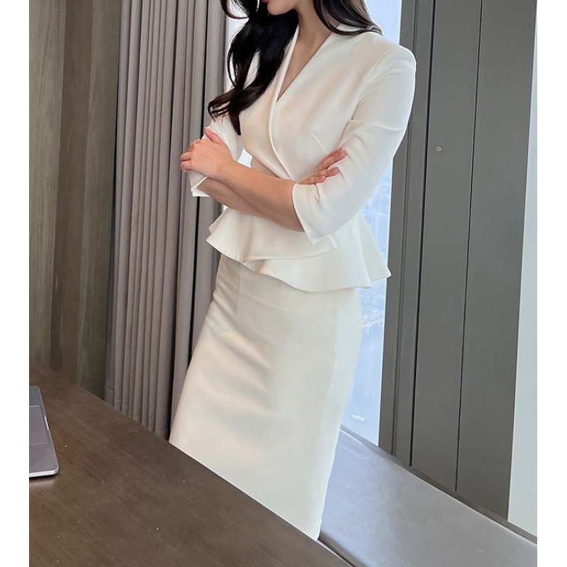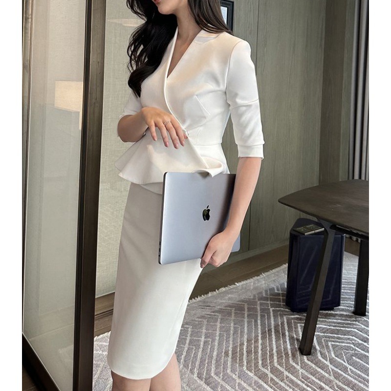 Bộ trang phục hai mảnh màu trắng, thiết kế dành riêng cho môi trường công sở. Áo khoác kiểu dáng Tây ôm vừa vặn, kết hợp cùng chân váy bút chì tôn dáng. Chất vải mềm mại, thoáng mát, phù hợp thời tiết mùa hè. Dễ dàng phối với áo sơ mi hoặc áo phông bên trong. Sản phẩm phù hợp khi bạn làm việc tại văn phòng, hay tham dự các buổi gặp mặt. | Tên sản phẩm: Áo Vest Nữ Vest Cả Bộ 2 Món Hàng Mùa Hè Đồ Công Sở - Thời Trang Nữ | Mã sản phẩm: k3251 - Giá: 1.910.000đ | Mã nhà sản xuất: CHTYAI-G05Hình ảnh sản phẩm