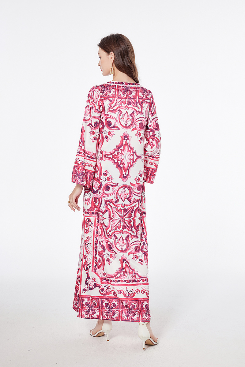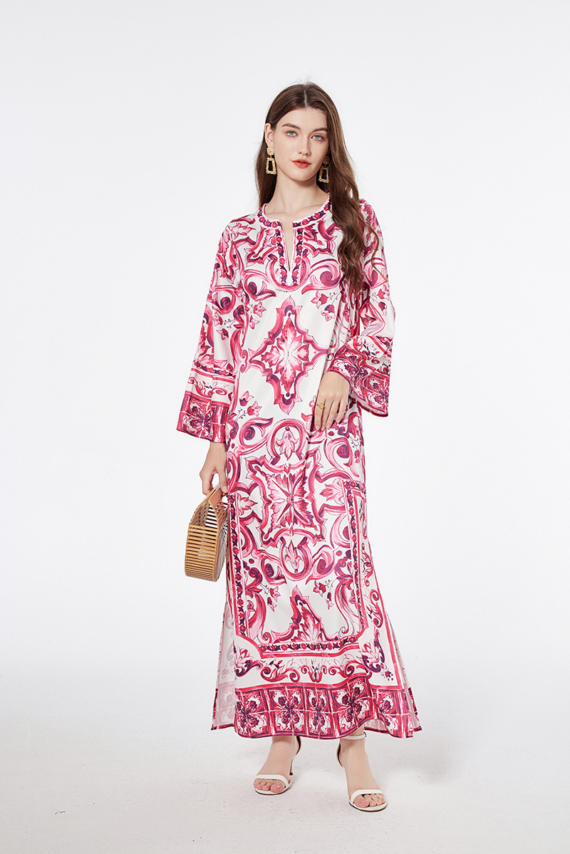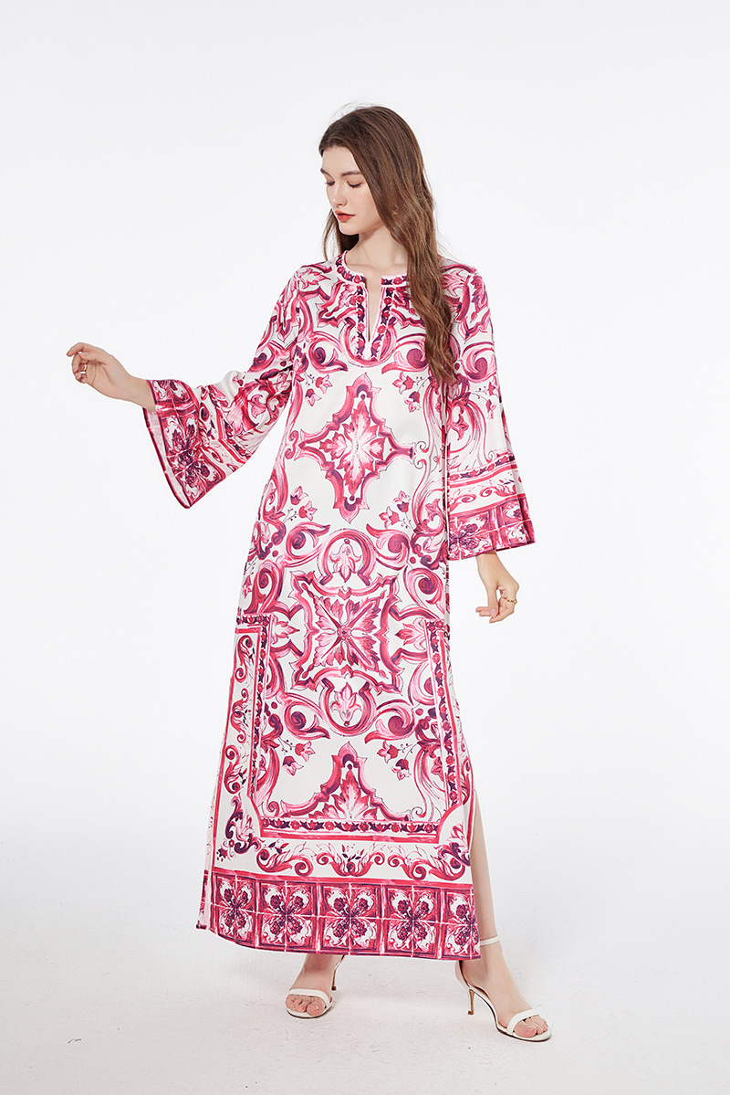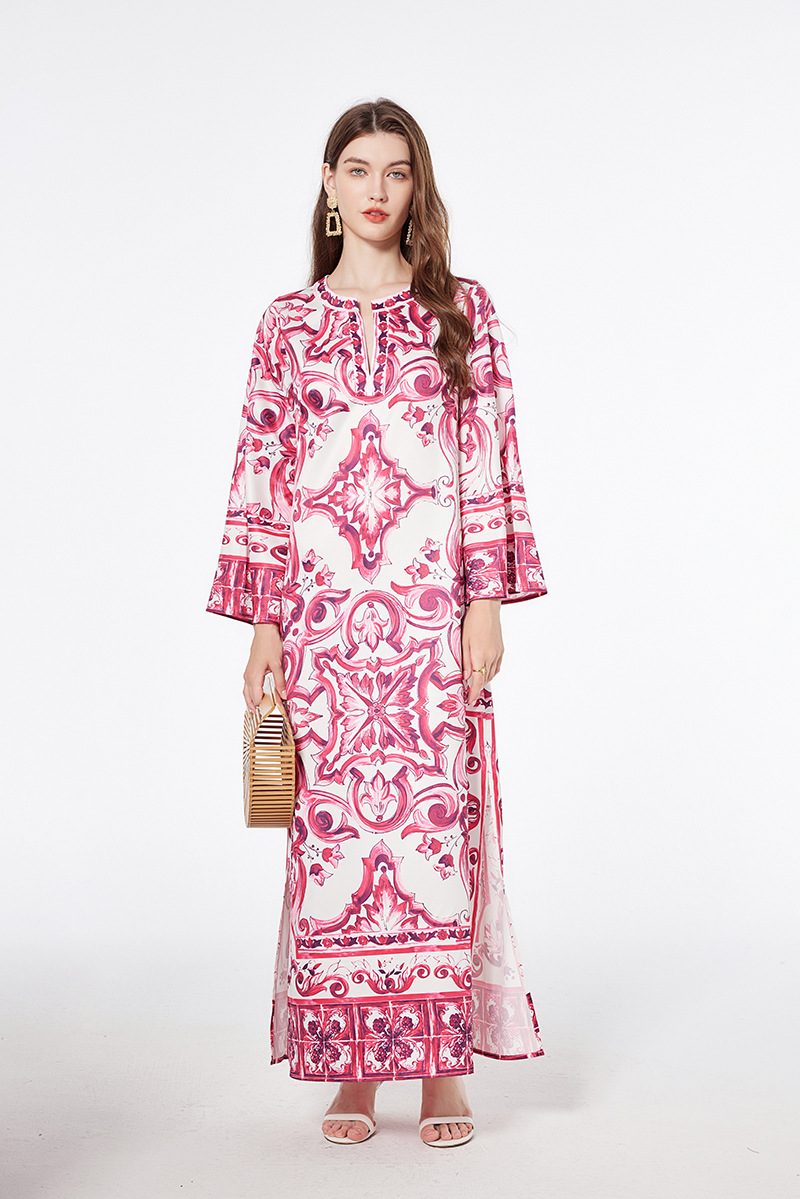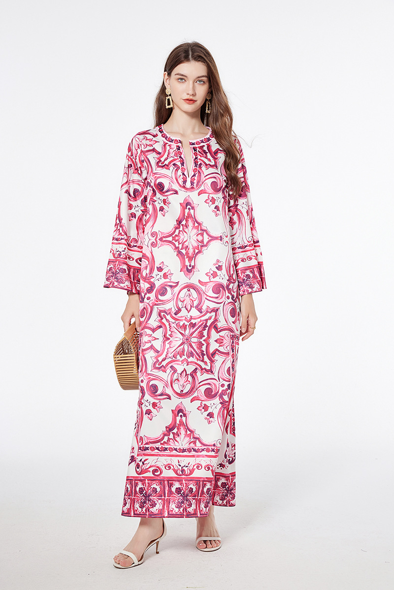 Chiếc váy dài mang phong cách cổ điển với họa tiết hoa lam in nổi, tạo điểm nhấn thanh lịch. Thiết kế rộng rãi, thoáng mát giúp che bớt khuyết điểm cơ thể và bảo vệ da dưới nắng. Đường xẻ nhẹ ở vạt váy mang lại sự thoải mái, dễ dàng di chuyển. Sản phẩm thích hợp mặc đi biển, dạo phố hay trong những kỳ nghỉ dưỡng. Bạn có thể phối cùng dép bệt và mũ rộng vành để hoàn thiện bộ trang phục. | Tên sản phẩm: Váy Đầm Liền Thân Dáng Dài Nữ Họa Tiết Hoa Hàng Mùa Hè Phục Cổ Cổ Điển Đồ Đi Biển Váy Maxi - Thời Trang Nữ | Mã sản phẩm: K3275 - Giá: 750.000đ | Mã nhà sản xuất: GUDG-G02Hình ảnh sản phẩm