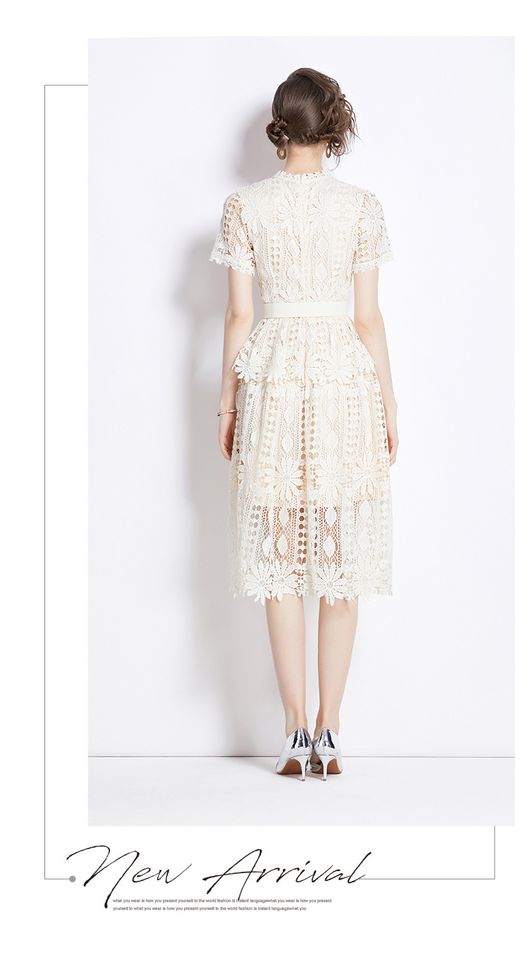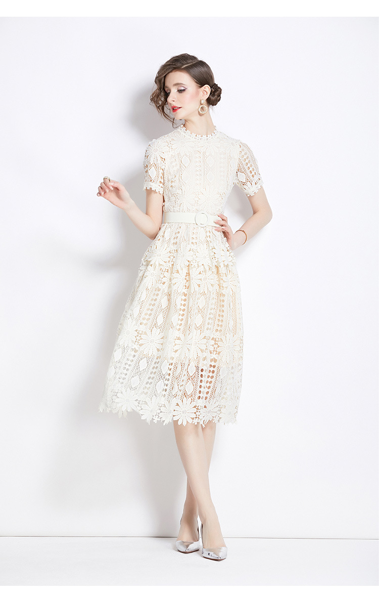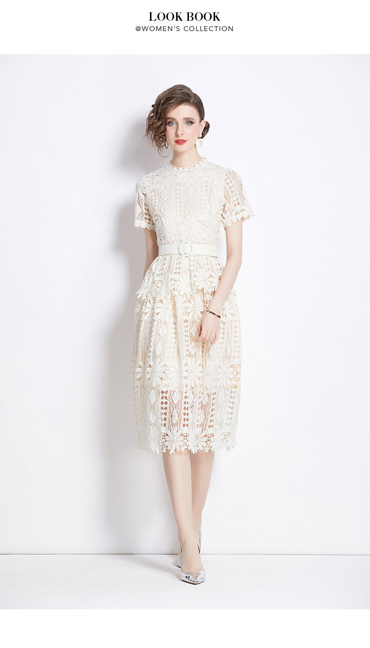 Chiếc váy dài mang phong cách cổ điển, tay ngắn và cổ tròn. Thiết kế ôn eo tạo dáng thon gọn, phom dáng chữ A nhẹ nhàng. Điểm nhấn là chi tiết đan móc kết hợp ren xuyên thấu tinh tế khắp thân váy. Chất vải mềm mại, thoáng mát, mang đến sự dễ chịu khi mặc. Sản phẩm phù hợp cho nhiều dịp đi chơi, dạo phố. Có thể giặt bằng tay và phơi nơi râm mát để giữ form váy đẹp lâu. | Tên sản phẩm: Váy Đầm Liền Thân Dáng Dài Nữ Chất Liệu Ren Ngắn Tay Họa Tiết Hoa Phục Cổ Cổ Điển - Thời Trang Nữ | Mã sản phẩm: K3276 - Giá: 1.010.000đ | Mã nhà sản xuất: GUDG-G03Hình ảnh sản phẩm