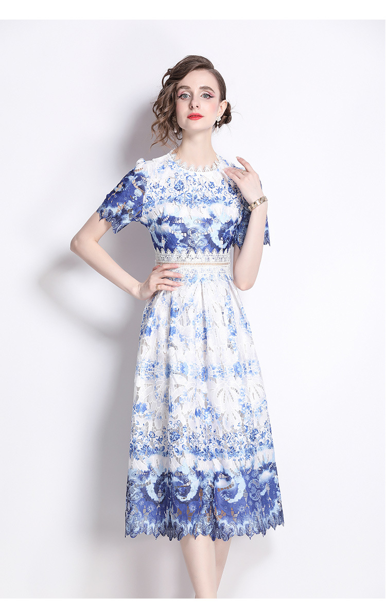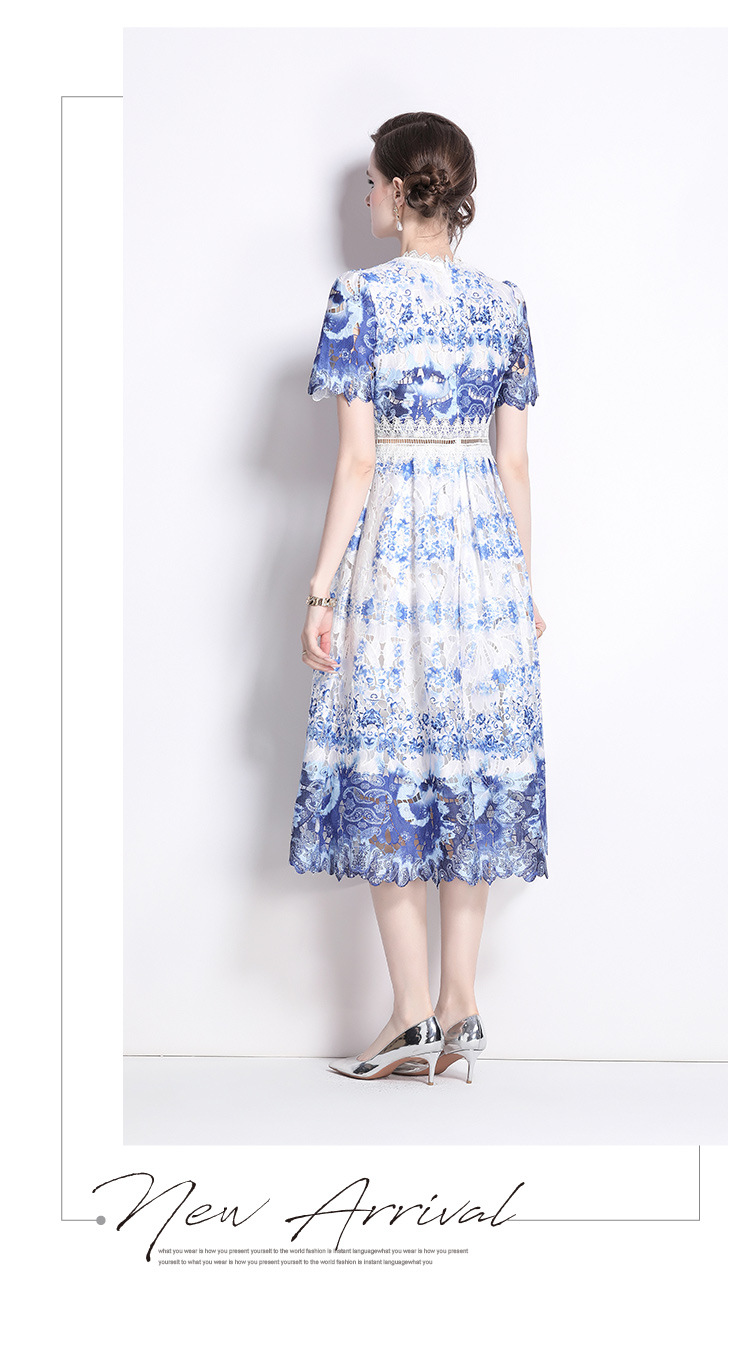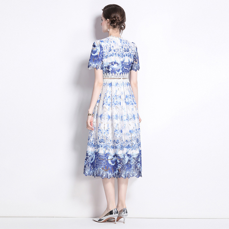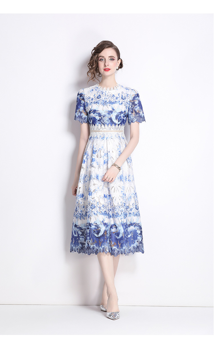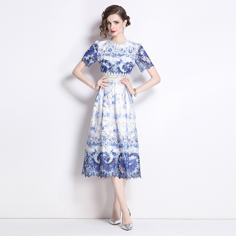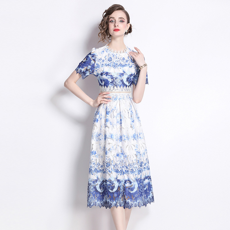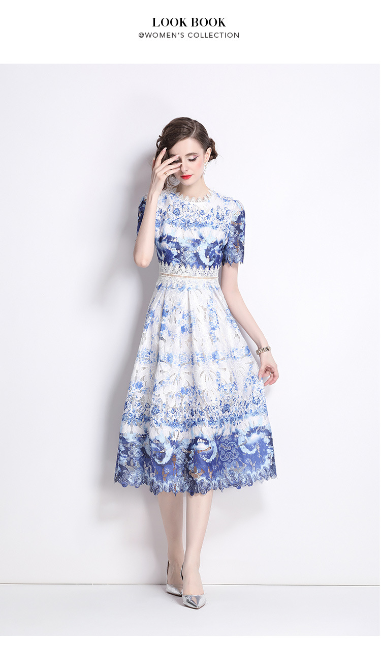 Chiếc áo dài tay ngắn mới dành cho mùa hè, có cổ dựng cách điệu. Chất vải ren thêu kết hợp họa tiết đục lỗ tinh tế, tạo nên vẻ đẹp nhẹ nhàng và nữ tính. Điểm nhấn ở eo được thiết kế ôm sát, phần váy xòe rộng giúp tôn dáng người mặc. Sản phẩm phù hợp cho nhiều dịp sinh hoạt hằng ngày. Có thể giặt bằng tay với nước thường và phơi ở nơi râm mát. | Tên sản phẩm: Váy Đầm Liền Thân Nữ Chất Liệu Ren Ngắn Tay Thêu Họa Tiết Hoa Hàng Mùa Hè - Thời Trang Nữ | Mã sản phẩm: K3283 - Giá: 1.060.000đ | Mã nhà sản xuất: GUDG-G03Hình ảnh sản phẩm