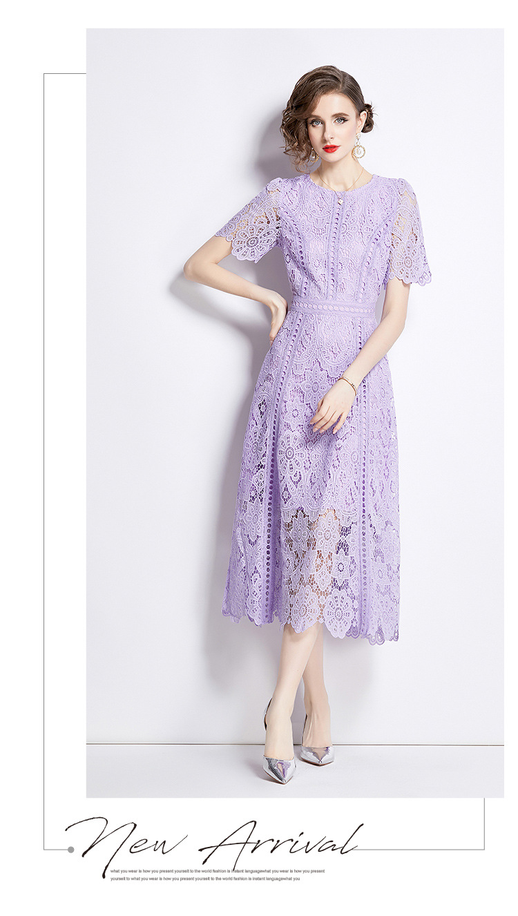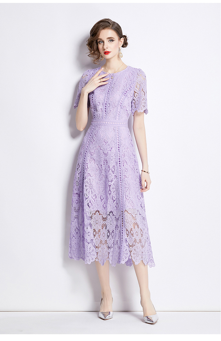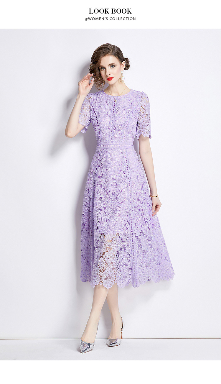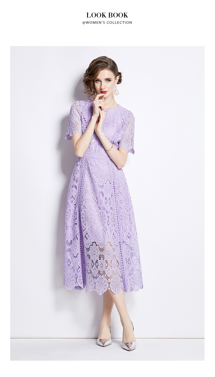 Đầm ngắn tay dáng dài cho mùa hè, được làm từ chất liệu ren kết hợp họa tiết thêu tỉ mỉ tạo nên vẻ đẹp nữ tính. Thiết kế dáng chữ A với phần eo cao giúp tôn lên đường nét cơ thể. Sản phẩm có màu tím nhẹ nhàng, phù hợp cho nhiều dịp đi chơi hay gặp gỡ. Mặc kèm áo lót cùng màu bên trong để tạo sự thoải mái và kín đáo. Dễ dàng phối cùng giày sandal và túi xách nhỏ. | Tên sản phẩm: Váy Đầm Liền Thân Nữ Chất Liệu Ren Ngắn Tay Họa Tiết Hoa Hàng Mùa Hè - Thời Trang Nữ | Mã sản phẩm: K3284 - Giá: 1.020.000đ | Mã nhà sản xuất: GUDG-G03Hình ảnh sản phẩm