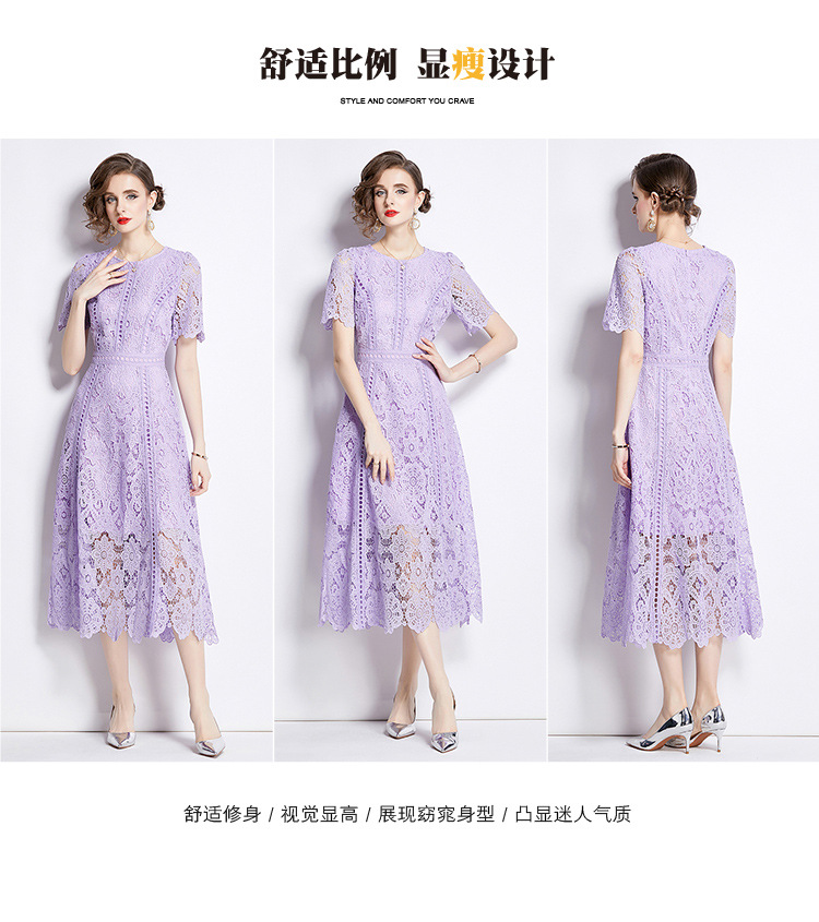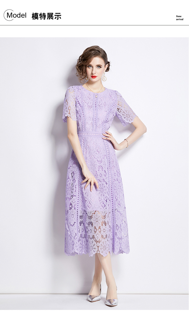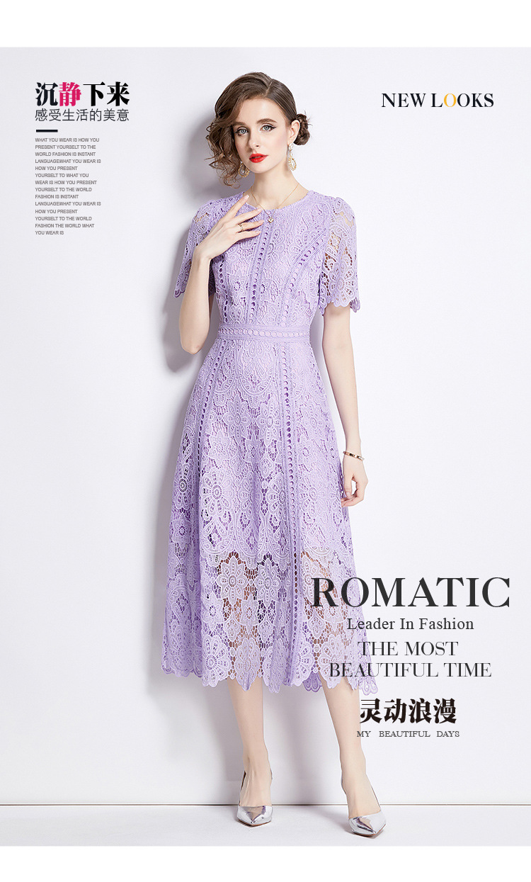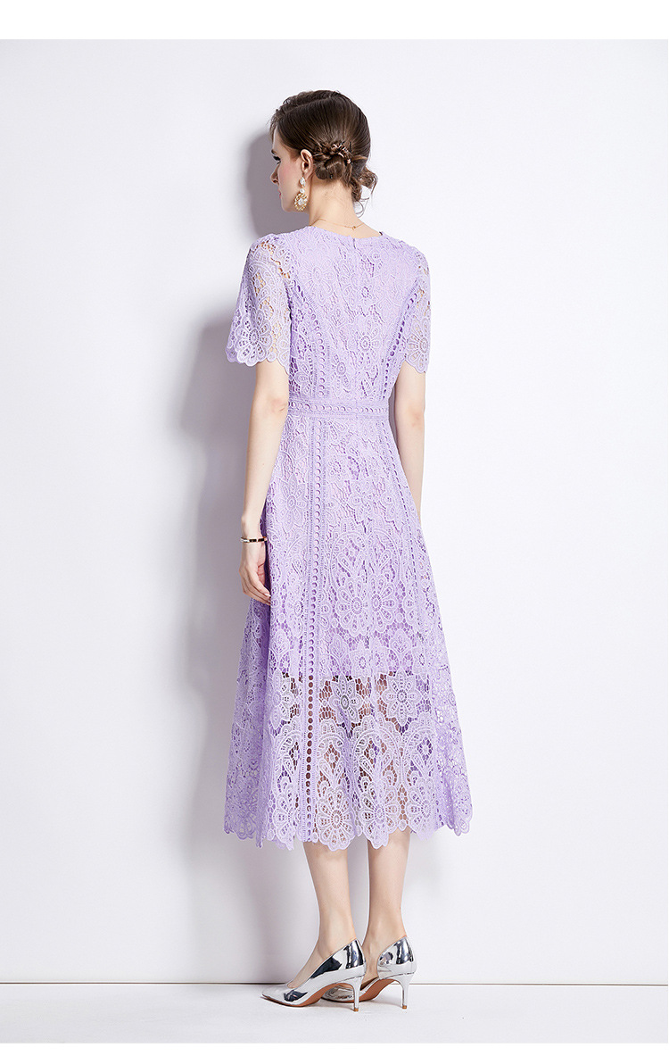 Đầm ngắn tay dáng dài cho mùa hè, được làm từ chất liệu ren kết hợp họa tiết thêu tỉ mỉ tạo nên vẻ đẹp nữ tính. Thiết kế dáng chữ A với phần eo cao giúp tôn lên đường nét cơ thể. Sản phẩm có màu tím nhẹ nhàng, phù hợp cho nhiều dịp đi chơi hay gặp gỡ. Mặc kèm áo lót cùng màu bên trong để tạo sự thoải mái và kín đáo. Dễ dàng phối cùng giày sandal và túi xách nhỏ. | Tên sản phẩm: Váy Đầm Liền Thân Nữ Chất Liệu Ren Ngắn Tay Họa Tiết Hoa Hàng Mùa Hè - Thời Trang Nữ | Mã sản phẩm: K3284 - Giá: 1.020.000đ | Mã nhà sản xuất: GUDG-G03Hình ảnh sản phẩm