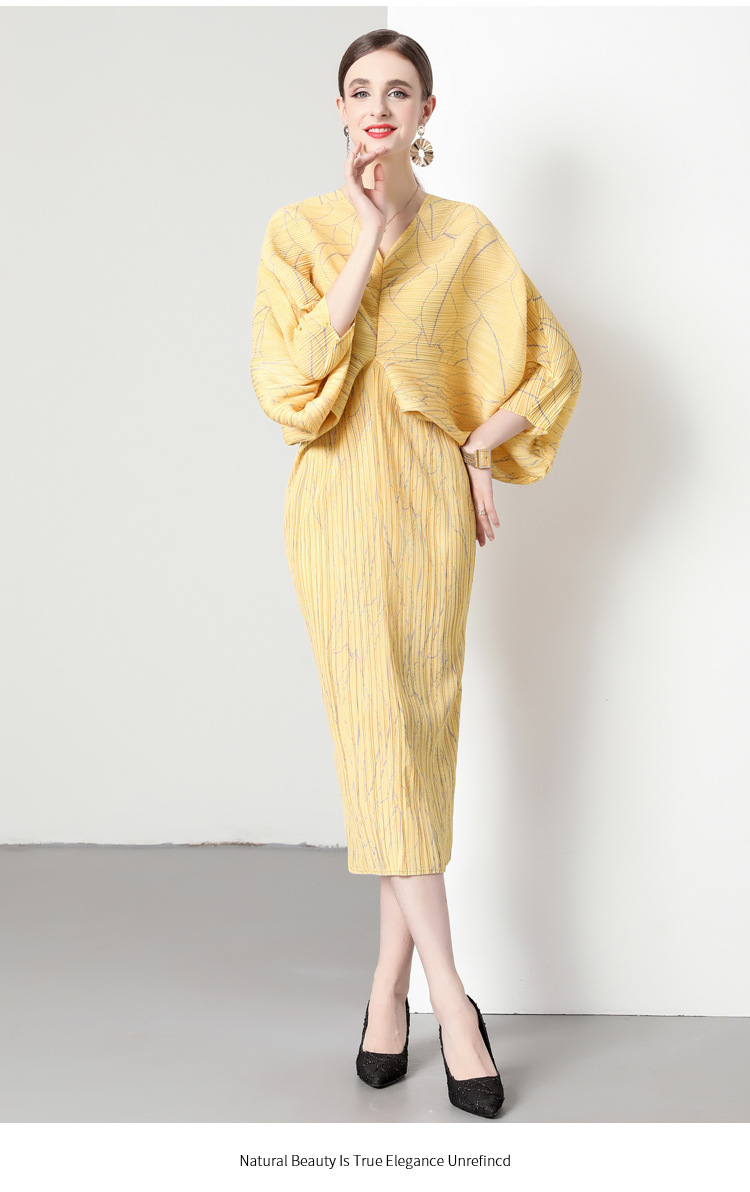 Chiếc đầm dáng dài với phần tay thiết kế rộng, tạo cảm giác thoải mái và uyển chuyển khi mặc. Chất vải mềm mại có những đường nhún nhẹ nhàng, kết hợp họa tiết in nổi bật và cổ chữ V thanh lịch. Sản phẩm phù hợp để mặc trong những ngày thu mát mẻ hoặc làm lớp bên trong cùng với áo khoác. Có thể giặt bằng tay hoặc máy với chế độ nhẹ để giữ form vải lâu bền. | Tên sản phẩm: Váy Đầm Liền Thân Dáng Dài Nữ Big Size Ngoại Cỡ Họa Tiết Hoa Cổ Chữ V Hàng Mùa Xuân Thu Đông - Thời Trang Nữ | Mã sản phẩm: K3300 - Giá: 1.000.000đ | Mã nhà sản xuất: GUDG-G03Hình ảnh sản phẩm