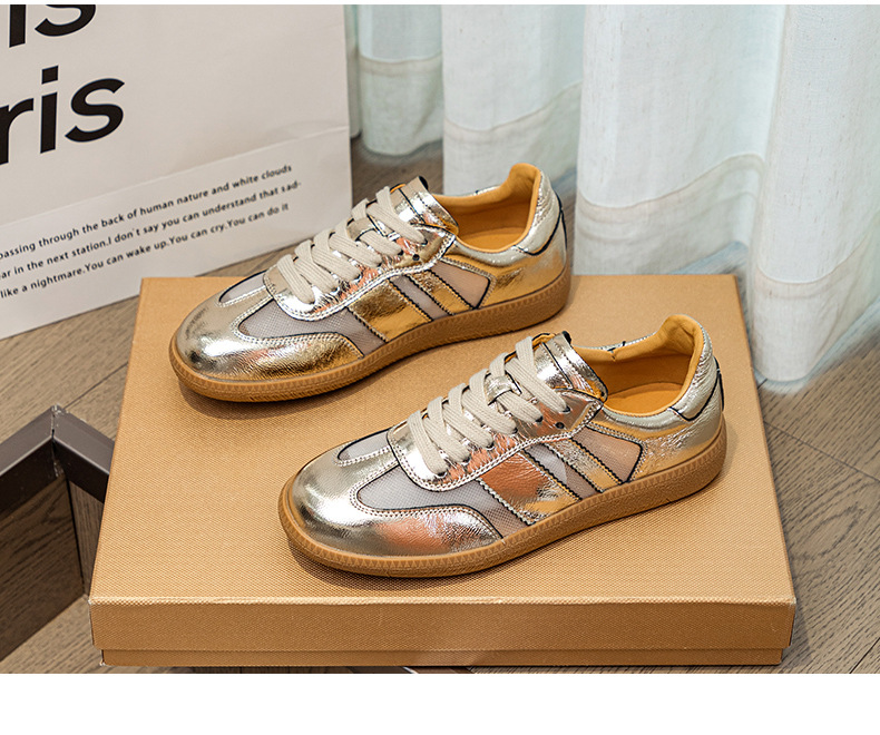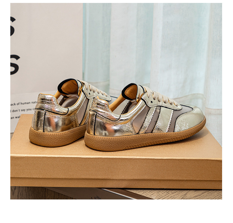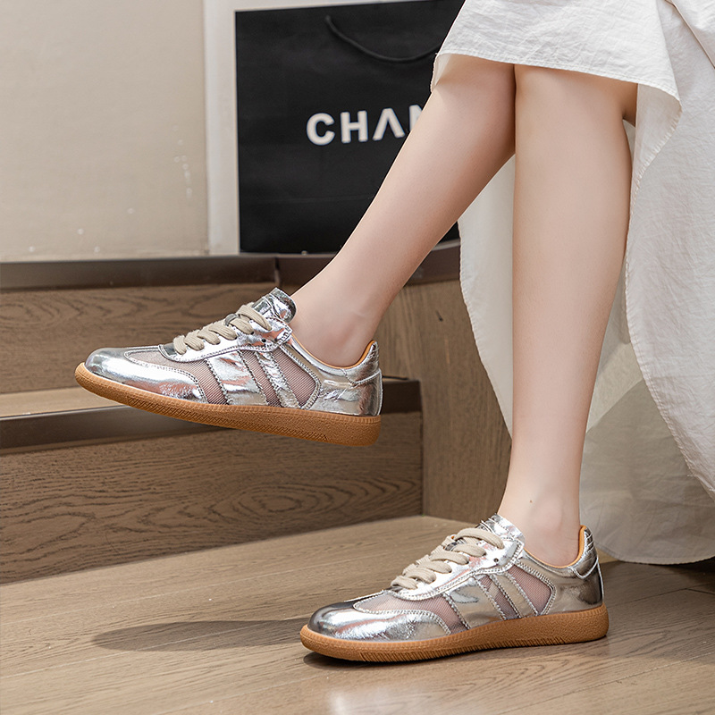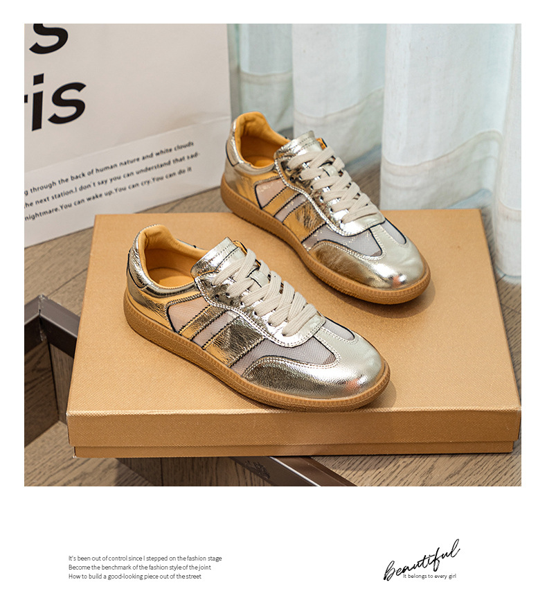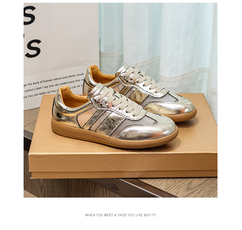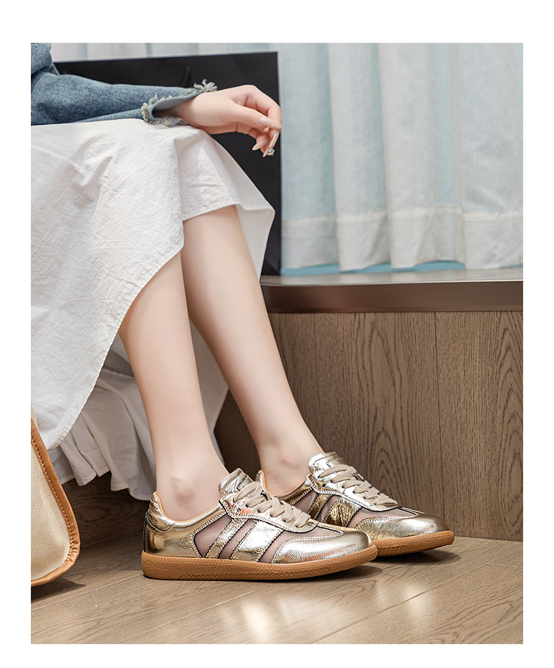 Giày thể thao nữ thiết kế theo phong cách huấn luyện cổ điển, phù hợp cho mùa hè. Sản phẩm được làm từ chất liệu da bò mềm mại ở phần thân, kết hợp phần lưới co giãn giúp đôi chân luôn thông thoáng. Đế bằng phẳng mang lại cảm giác dễ chịu khi di chuyển cả ngày. Kiểu dáng đơn giản, dễ phối hợp với nhiều trang phục như quần jeans hay váy ngắn. Bạn có thể sử dụng hằng ngày cho các hoạt động đi lại, dạo phố hoặc gặp gỡ bạn bè. | Tên sản phẩm: Giày Bệt Nữ Chất Liệu Da Bò Kẻ Caro Kẻ Caro Hàng Mùa Hè - Giày Dép Nữ | Mã sản phẩm: K3315 - Giá: 2.190.000đ | Mã nhà sản xuất: WEDSH-G05Hình ảnh sản phẩm