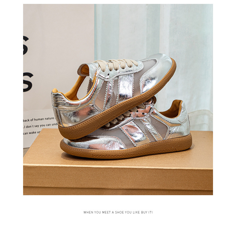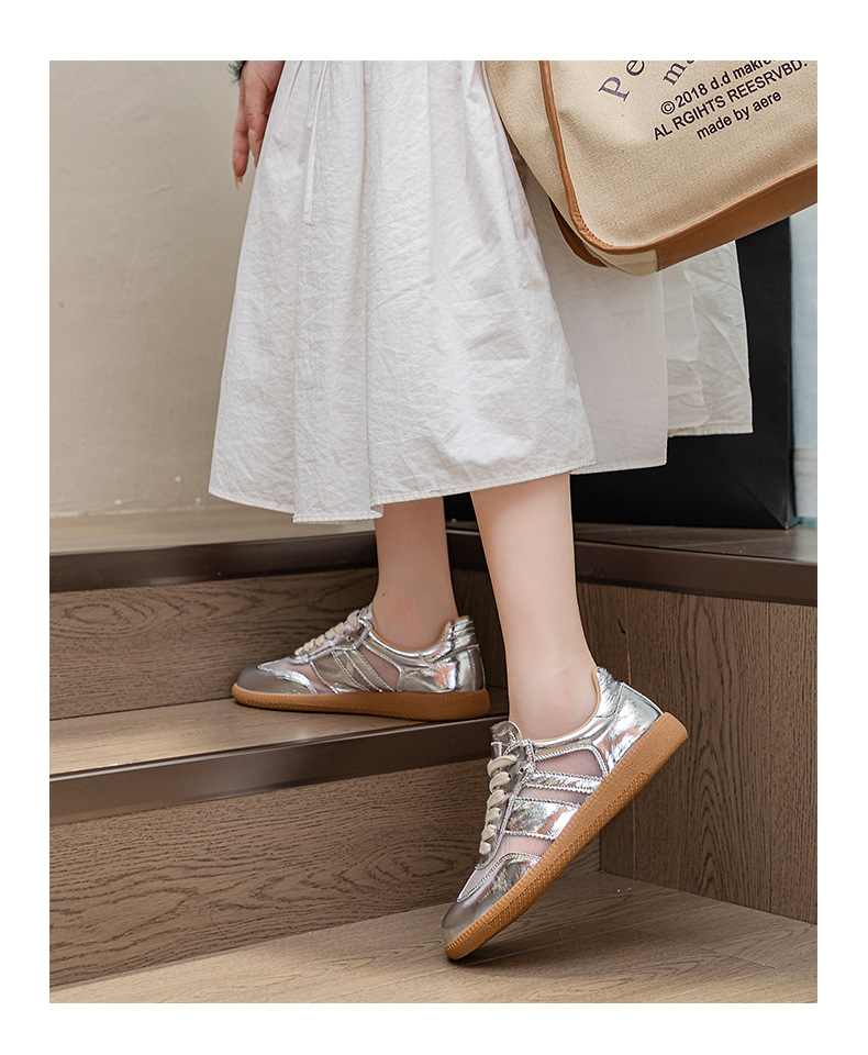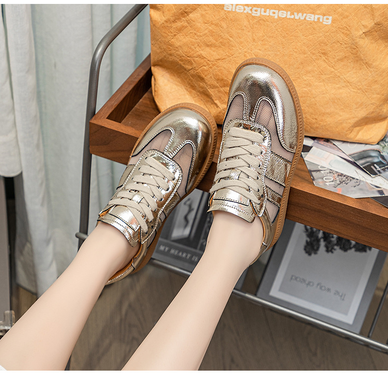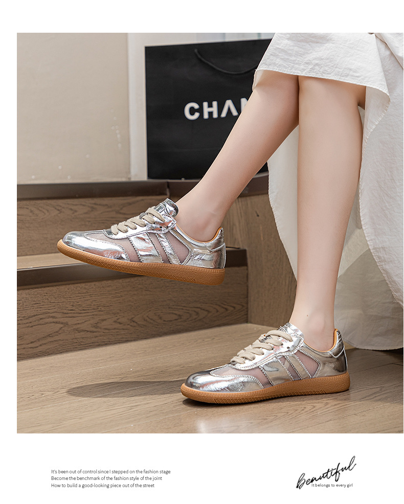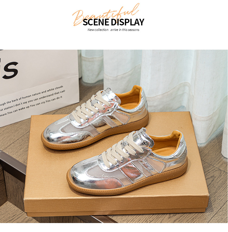 Giày thể thao nữ thiết kế theo phong cách huấn luyện cổ điển, phù hợp cho mùa hè. Sản phẩm được làm từ chất liệu da bò mềm mại ở phần thân, kết hợp phần lưới co giãn giúp đôi chân luôn thông thoáng. Đế bằng phẳng mang lại cảm giác dễ chịu khi di chuyển cả ngày. Kiểu dáng đơn giản, dễ phối hợp với nhiều trang phục như quần jeans hay váy ngắn. Bạn có thể sử dụng hằng ngày cho các hoạt động đi lại, dạo phố hoặc gặp gỡ bạn bè. | Tên sản phẩm: Giày Bệt Nữ Chất Liệu Da Bò Kẻ Caro Kẻ Caro Hàng Mùa Hè - Giày Dép Nữ | Mã sản phẩm: K3315 - Giá: 2.190.000đ | Mã nhà sản xuất: WEDSH-G05Hình ảnh sản phẩm