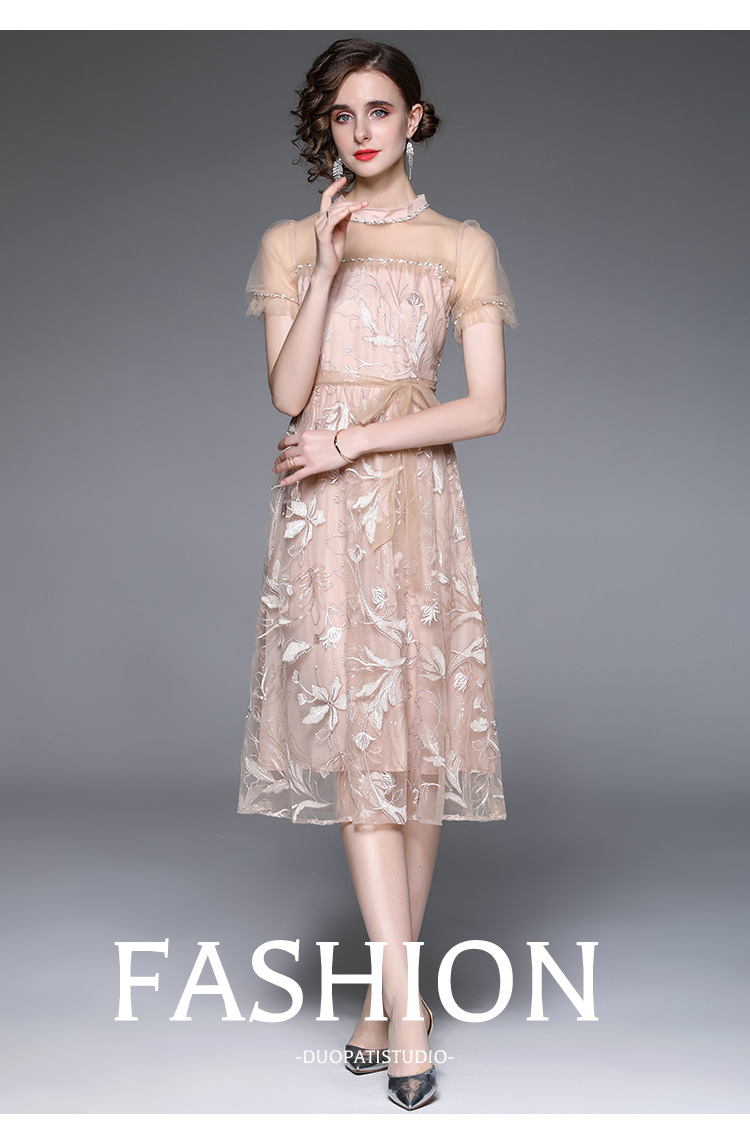 Đầm ngắn tay dành cho nữ, kiểu dáng thắt eo tôn dáng. Chất vải mỏng nhẹ có họa tiết mạng tinh tế, mang đến vẻ đẹp dịu dàng và nữ tính. Thiết kế cổ áp phong cách châu Âu hiện đại, phù hợp cho những ngày hè. Có thể mặc đi làm, dạo phố hay dự các buổi gặp mặt. Dễ dàng phối cùng giày sandal và túi xách tạo nên set đồ hài hòa. | Tên sản phẩm: Váy Đầm Liền Thân Nữ Lưới Mỏng Hàng Mùa Hè - Thời Trang Nữ | Mã sản phẩm: K3316 - Giá: 1.070.000đ | Mã nhà sản xuất: GUDG-G03Hình ảnh sản phẩm