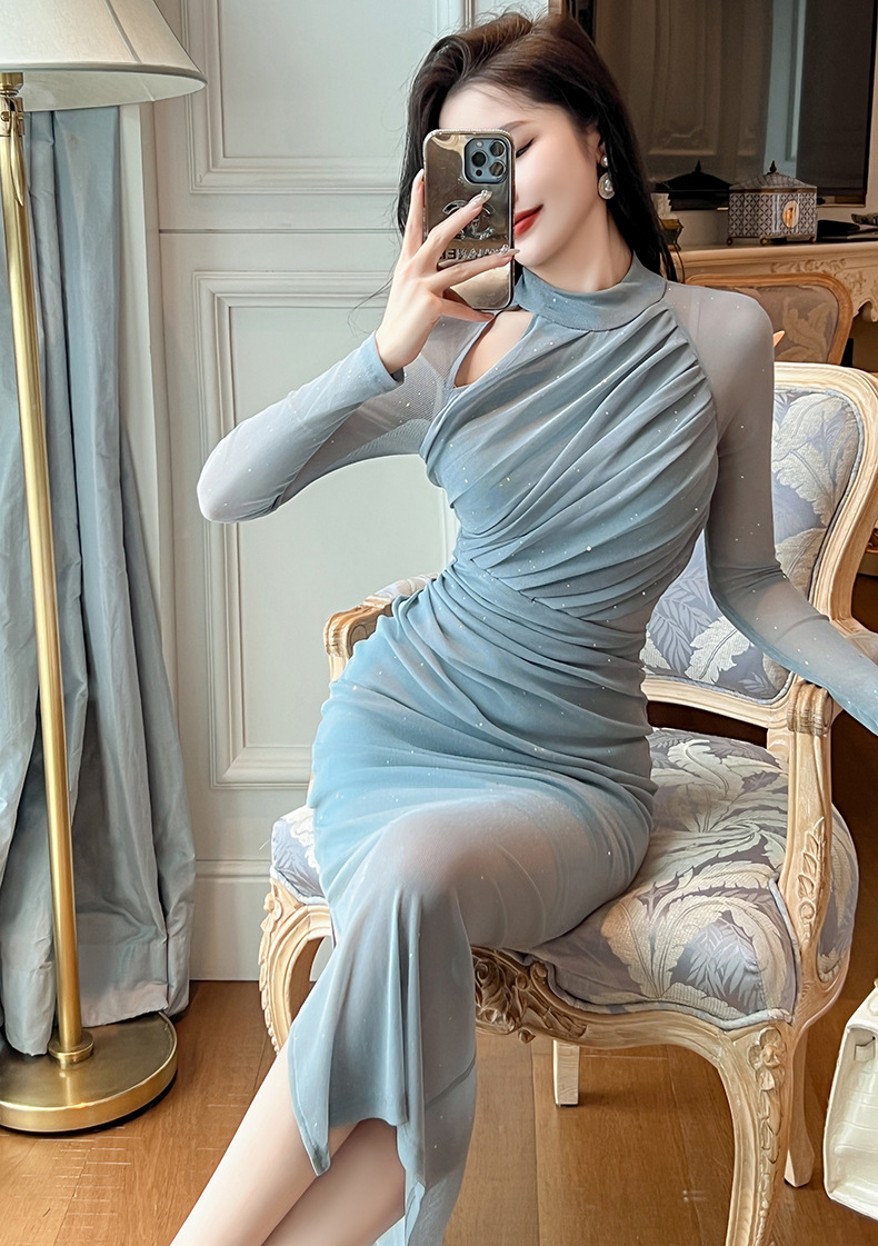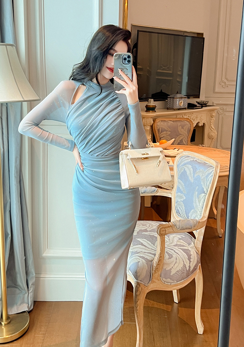 Chiếc đầm ôm body này có chất vải mỏng nhẹ tạo nên vẻ quyến rũ tinh tế. Thiết kế với những đường nhún xếp tỉ mỉ cùng phần khoét lưới mềm mại, tôn lên những đường nét cơ thể. Kiểu dáng bó sát và phần l xòe nhẹ giúp tạo dáng thanh thoát. Sản phẩm phù hợp để mặc bên trong hoặc kết hợp cùng áo khoác mỏng. Có thể giặt bằng tay và phơi trong bóng mát để giữ form vải lâu bền. | Tên sản phẩm: Váy Đầm Liền Thân Nữ Lưới Mỏng Hàng Mùa Xuân Thu Đông - Thời Trang Nữ | Mã sản phẩm: K3321 - Giá: 1.050.000đ | Mã nhà sản xuất: CHDG-G03Hình ảnh sản phẩm