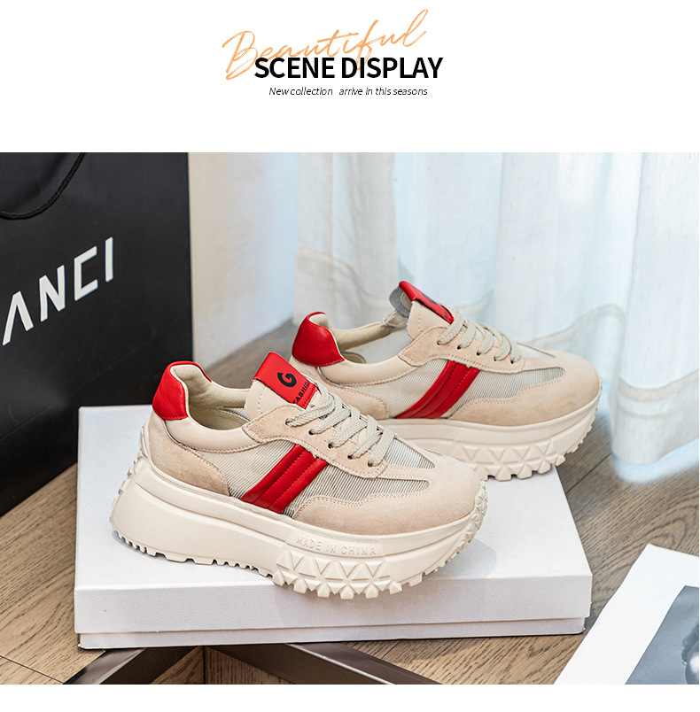 Đôi giày này có phần đế dày tạo dáng thể thao năng động, phù hợp cho các hoạt động thường ngày. Bề mặt giày kết hợp chất liệu da mềm cùng phần lưới thoáng khí, giúp đôi chân luôn dễ chịu. Sản phẩm thích hợp dùng khi đi dạo, gặp gỡ bạn bè hoặc trong các sinh hoạt nhẹ nhàng. Chỉ cần xỏ chân vào và điều chỉnh dây giày cho vừa vặn là bạn đã sẵn sàng sử dụng. | Tên sản phẩm: Giày Thể Thao Tăng Chiều Cao Nữ Chất Liệu Da Bò Kẻ Caro Kẻ Caro Thoáng Khí Đế Cao Hàng Mùa Hè - Giày Dép Nữ | Mã sản phẩm: K3344 - Giá: 2.000.000đ | Mã nhà sản xuất: WEDSH-G05Hình ảnh sản phẩm