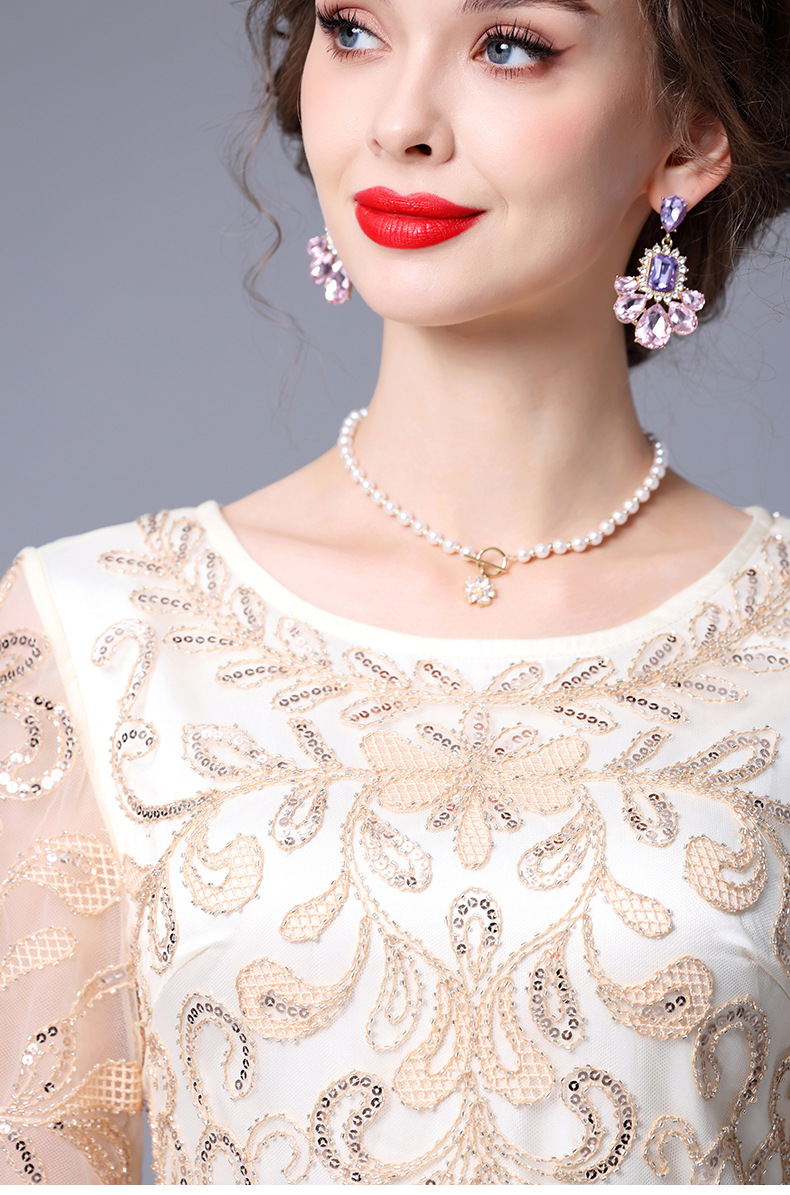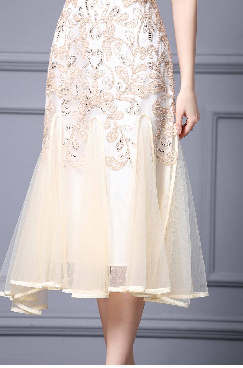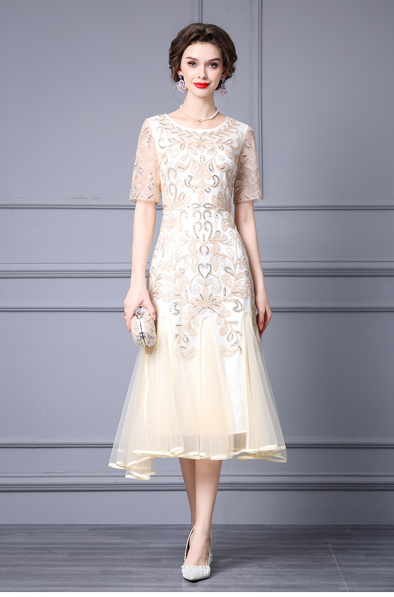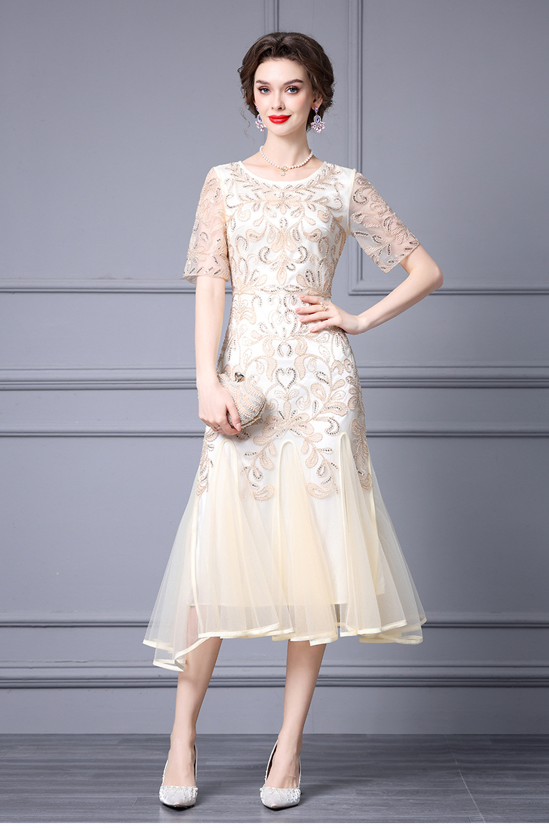 Chiếc đầm dáng dài qua gối này được thiết kế dành riêng cho những cô nàng có dáng quả lê. Form đầm xòe nhẹ theo kiểu chữ A, tôn lên những đường nét cơ thể một cách duyên dáng. Điểm nhấn đặc biệt đến từ phần thân trên với họa tiết thêu tay tinh xảo, kết hợp cùng chất vải mỏng nhẹ tạo nên sự mềm mại, thanh thoát. Sản phẩm phù hợp cho những ngày hè, dễ dàng phối cùng giày sandal hoặc giày búp bê để tạo nên một vẻ ngoại nữ tính. | Tên sản phẩm: Váy Đầm Liền Thân Dáng Dài Nữ Lưới Mỏng Thêu Họa Tiết Hoa Hàng Mùa Hè - Thời Trang Nữ | Mã sản phẩm: K3393 - Giá: 3.050.000đ | Mã nhà sản xuất: SHDAP-G06Hình ảnh sản phẩm