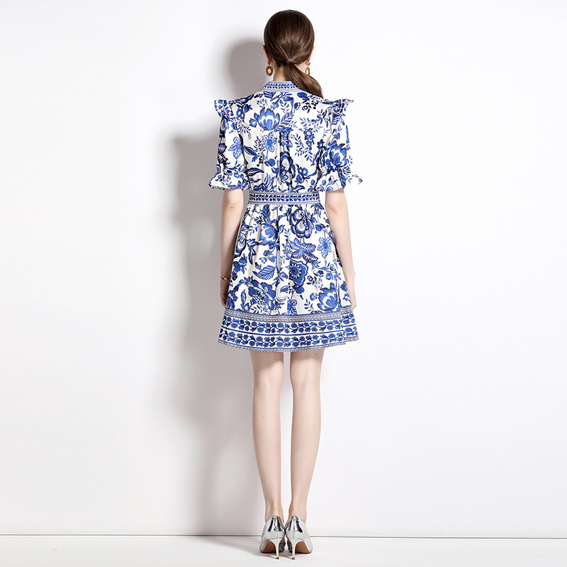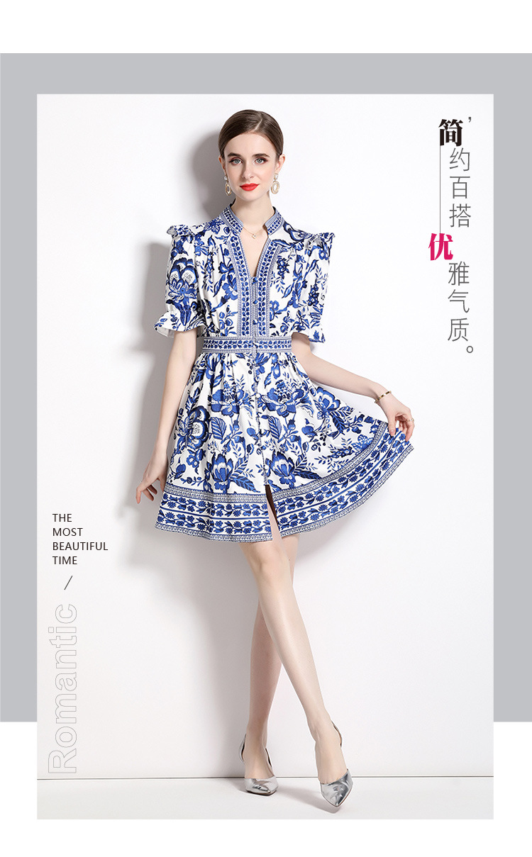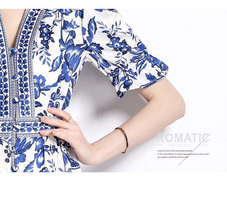 Chiếc đầm này mang dáng vẻ thanh lịch, lấy cảm hứng từ phong cách cổ điển. Thiết kế có cổ chữ V và hàng cúc đơn phía trước, giúp tôn dáng người mặc. Tay áo xòe nhẹ ở phần cuối tạo nên điểm nhấn duyên dáng. Đầm ôm nhẹ vòng eo và xòe nhẹ về phía dưới tạo thành dáng chữ A, được điểm xuyết bằng họa tiết in trên vải. Sản phẩm phù hợp để mặc đi làm, dạo phố hoặc trong các dịp gặp mặt. | Tên sản phẩm: Váy Đầm Liền Thân Nữ Họa Tiết Hoa Cổ Chữ V Phục Cổ Cổ Điển - Thời Trang Nữ | Mã sản phẩm: K3414 - Giá: 810.000đ | Mã nhà sản xuất: GUDG-G03Hình ảnh sản phẩm