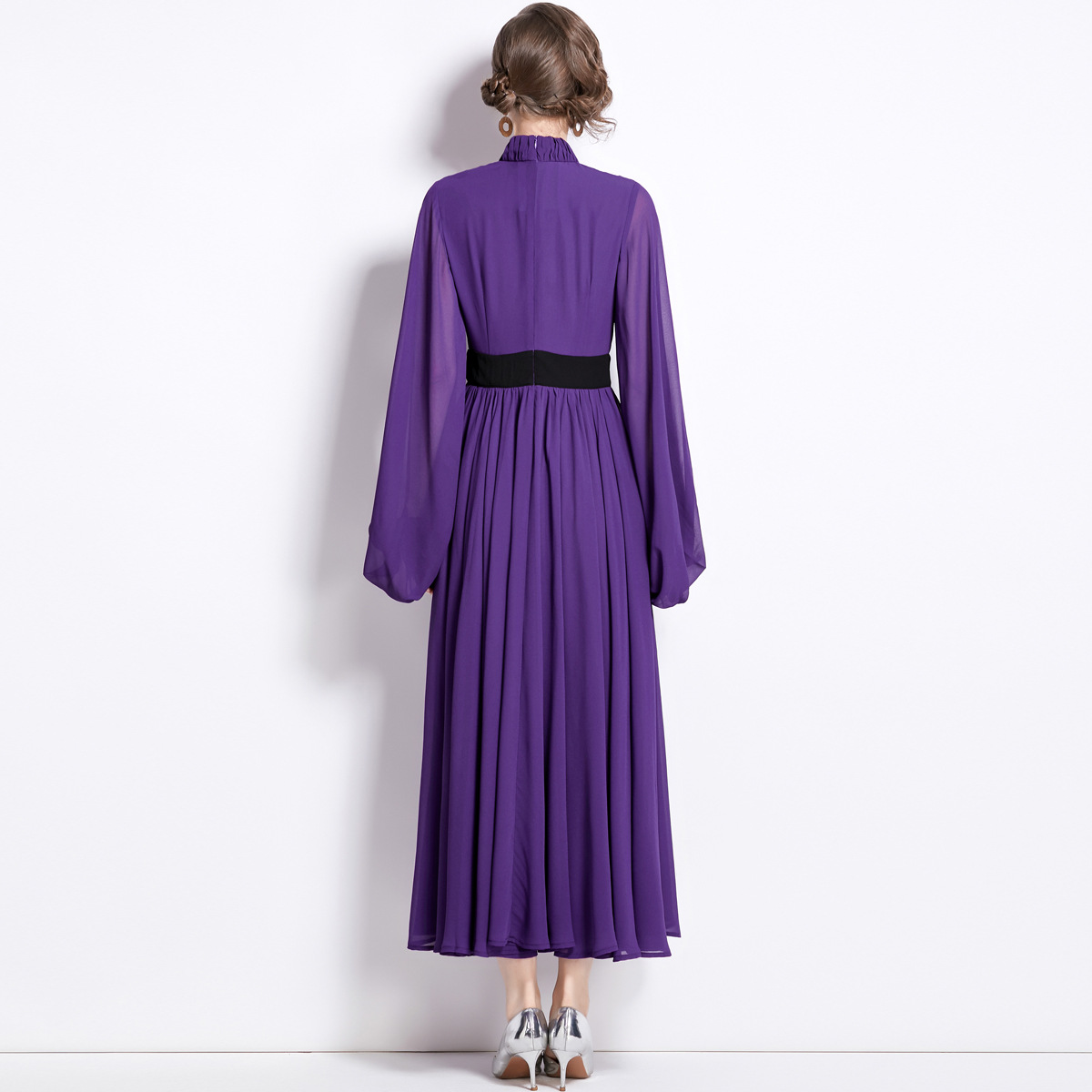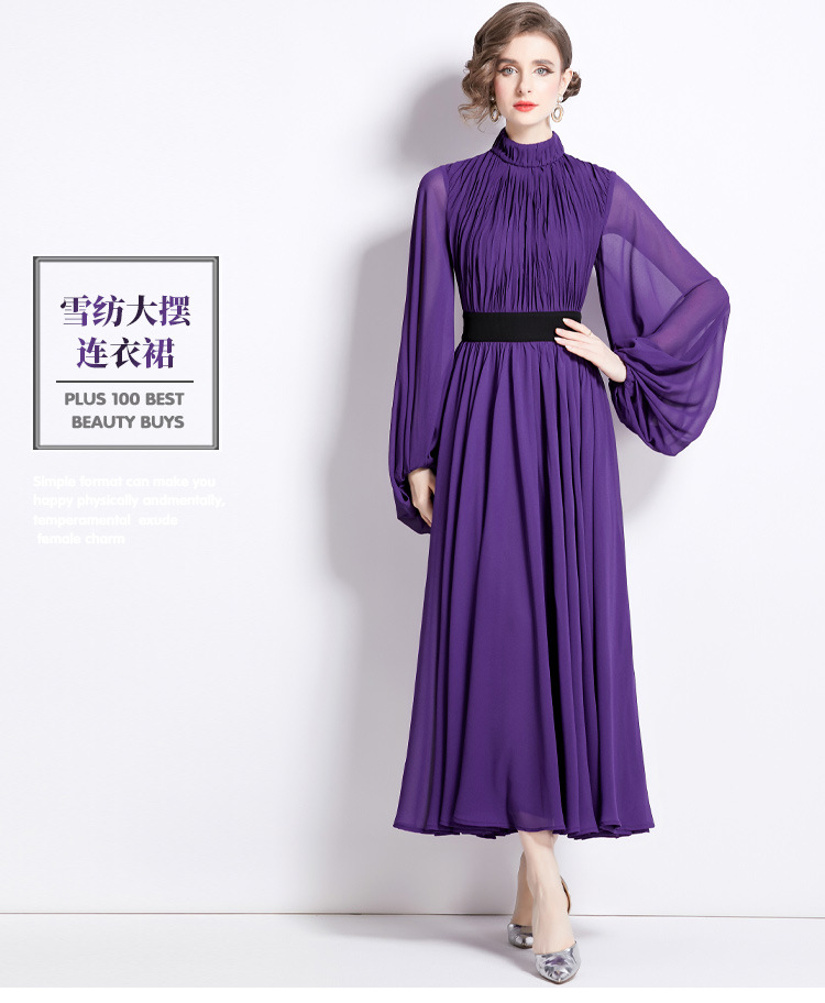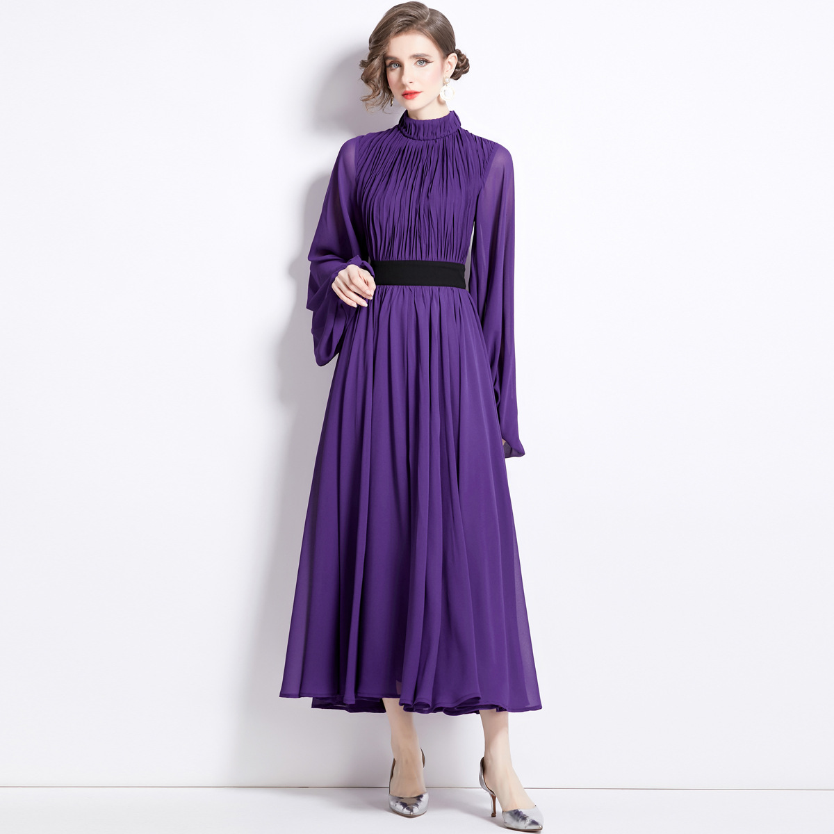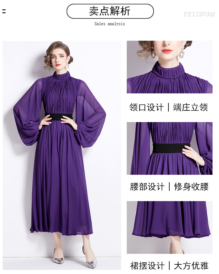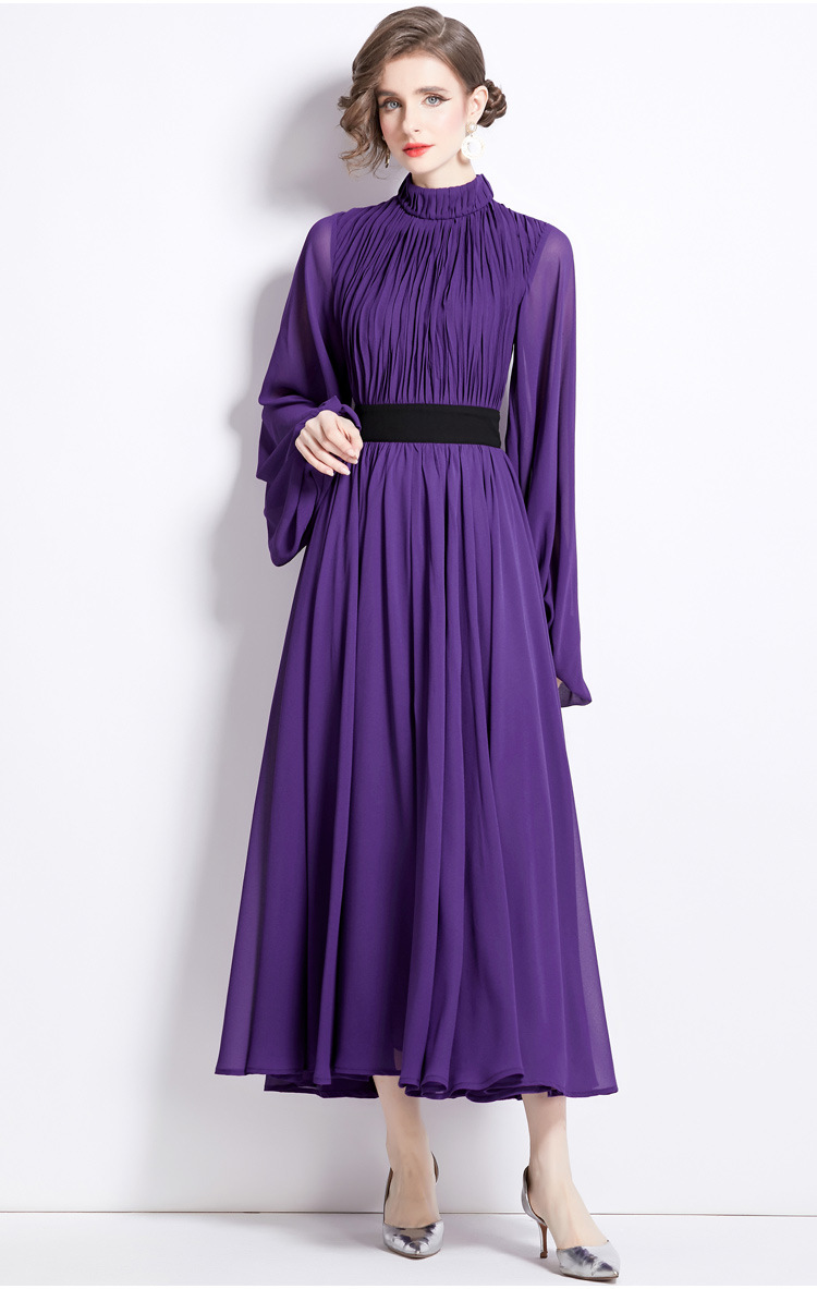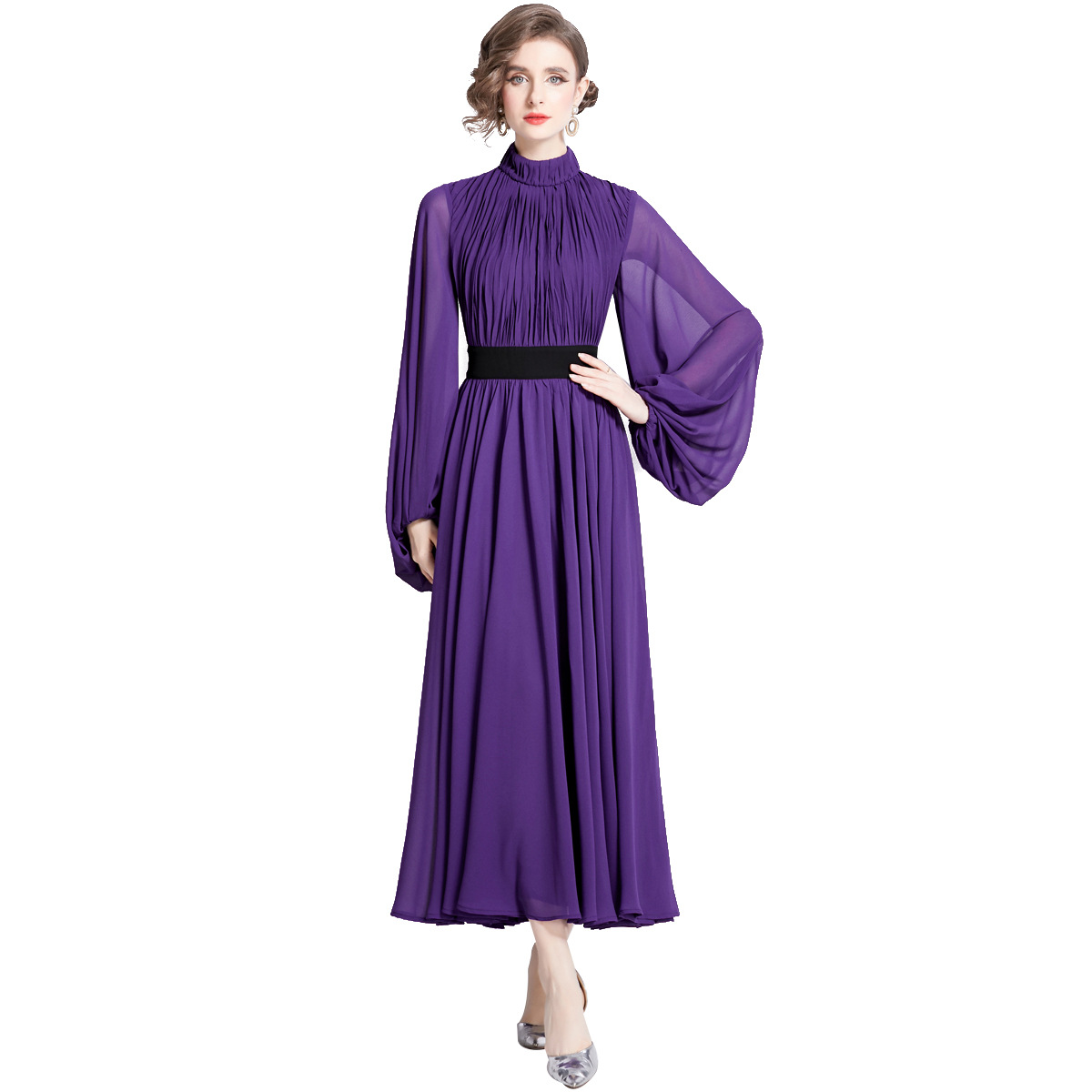 Chiếc váy dài mang phong cách Pháp với tông màu tím chủ đạo, tạo nên vẻ đẹp dịu dàng và nổi bật. Thiết kế có những đường nhún xếp tỉ mỉ cùng phần chân váy xòe rộng, giúp tôn lên dáng người và tạo cảm giác nhẹ nhàng, uyển chuyển khi di chuyển. Sản phẩm phù hợp để mặc trong các buổi tiệc hoặc sự kiện. Có thể giặt nhẹ và phơi khô trong bóng mát để giữ form váy được lâu dài. | Tên sản phẩm: Váy Đầm Liền Thân Dáng Dài Nữ - Thời Trang Nữ | Mã sản phẩm: K3423 - Giá: 1.080.000đ | Mã nhà sản xuất: GUDG-G03Hình ảnh sản phẩm