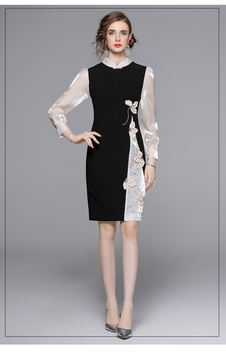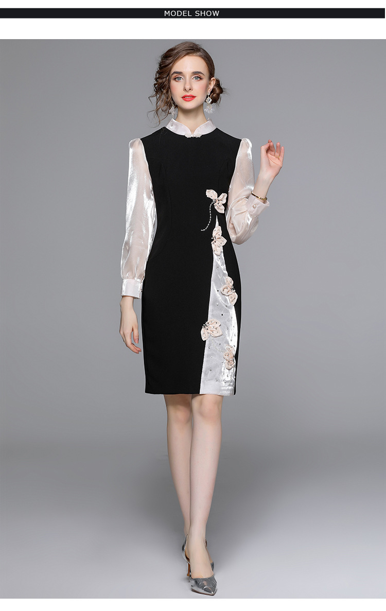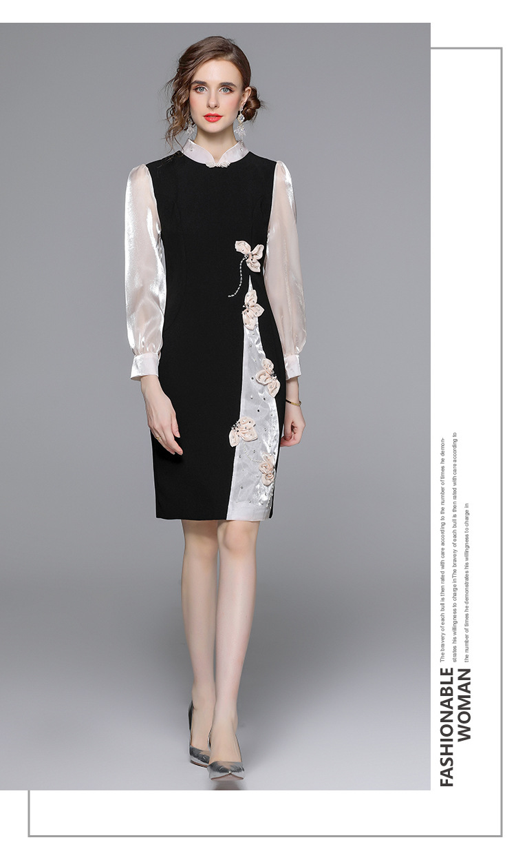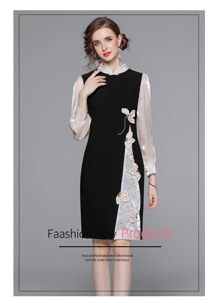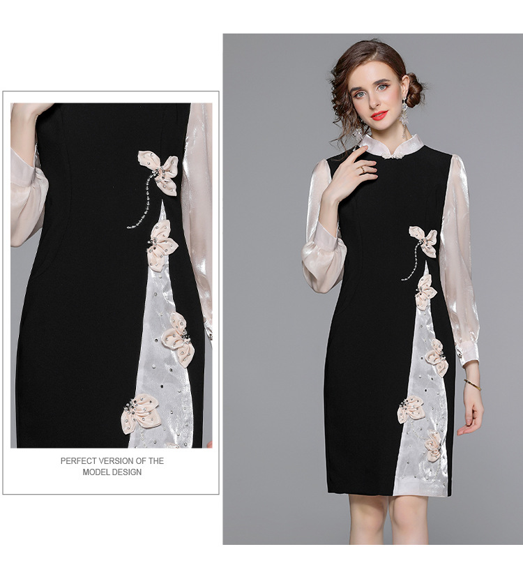 Chiếc đầm dáng công chúa này có phần cổ dựng và cúc bấm độc đáo. Tay dài được phối màu tương phản cùng các mảng ghép vải tạo điểm nhấn. Đầm ôm eo và vòng ba nhẹ nhàng, điểm xuyến những bông hoa nổi cùng hạt ngọc tr lấp lánh. Phù hợp cho những buổi gặp mặt hoặc sự kiện vào mùa xuân. Mặc kèm giày cao gót và phụ kiện tinh tế để hoàn thiện vẻ ngoại hình. | Tên sản phẩm: Váy Đầm Liền Thân Nữ Dài Tay Họa Tiết Hoa Hàng Mùa Xuân Thu Đông - Thời Trang Nữ | Mã sản phẩm: K3429 - Giá: 1.010.000đ | Mã nhà sản xuất: GUDG-G03Hình ảnh sản phẩm