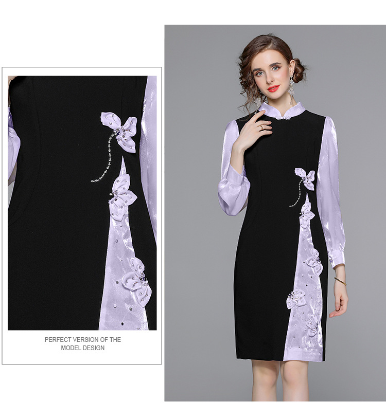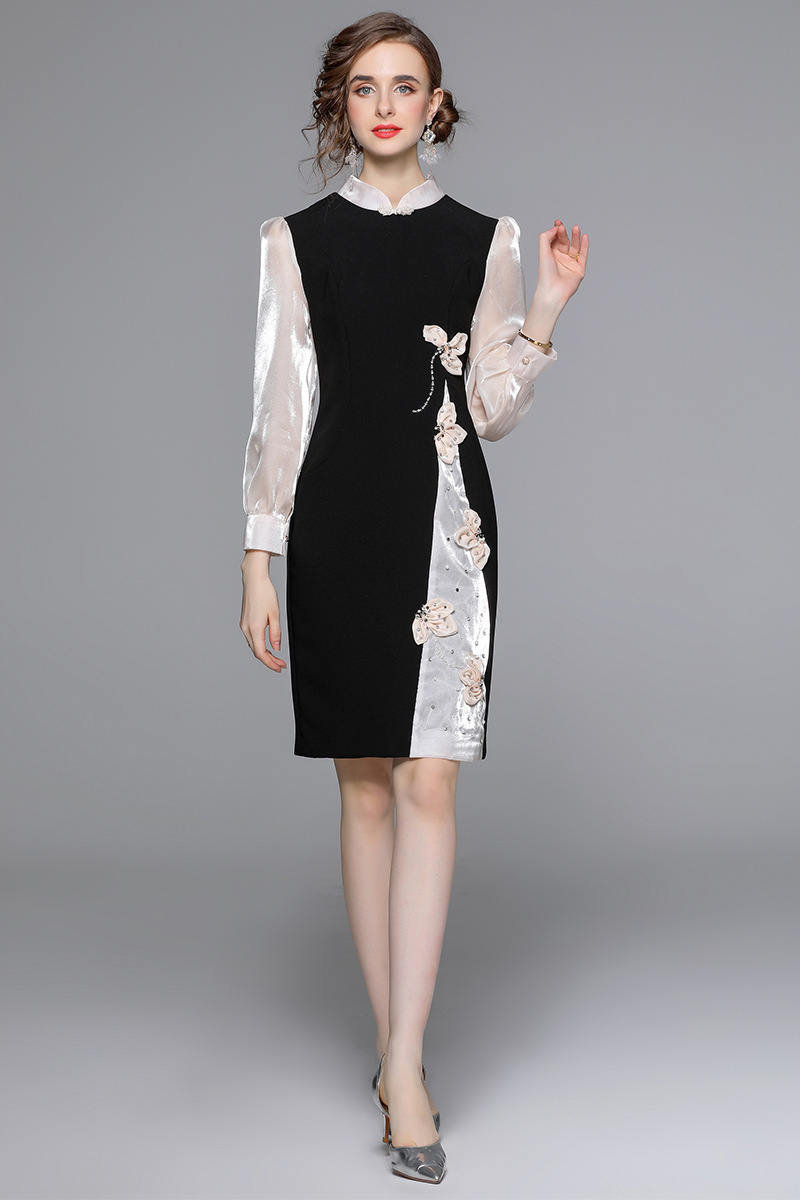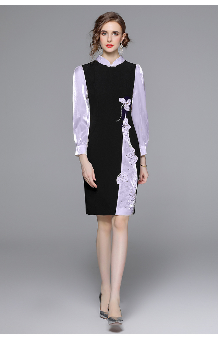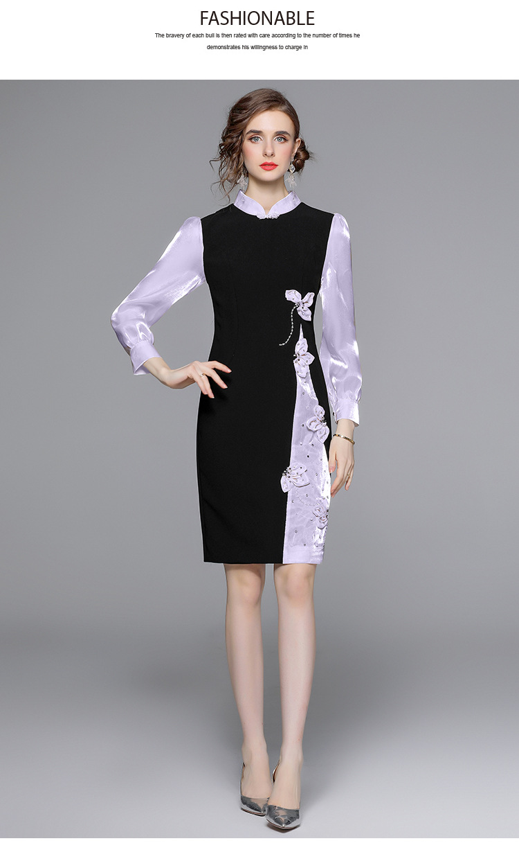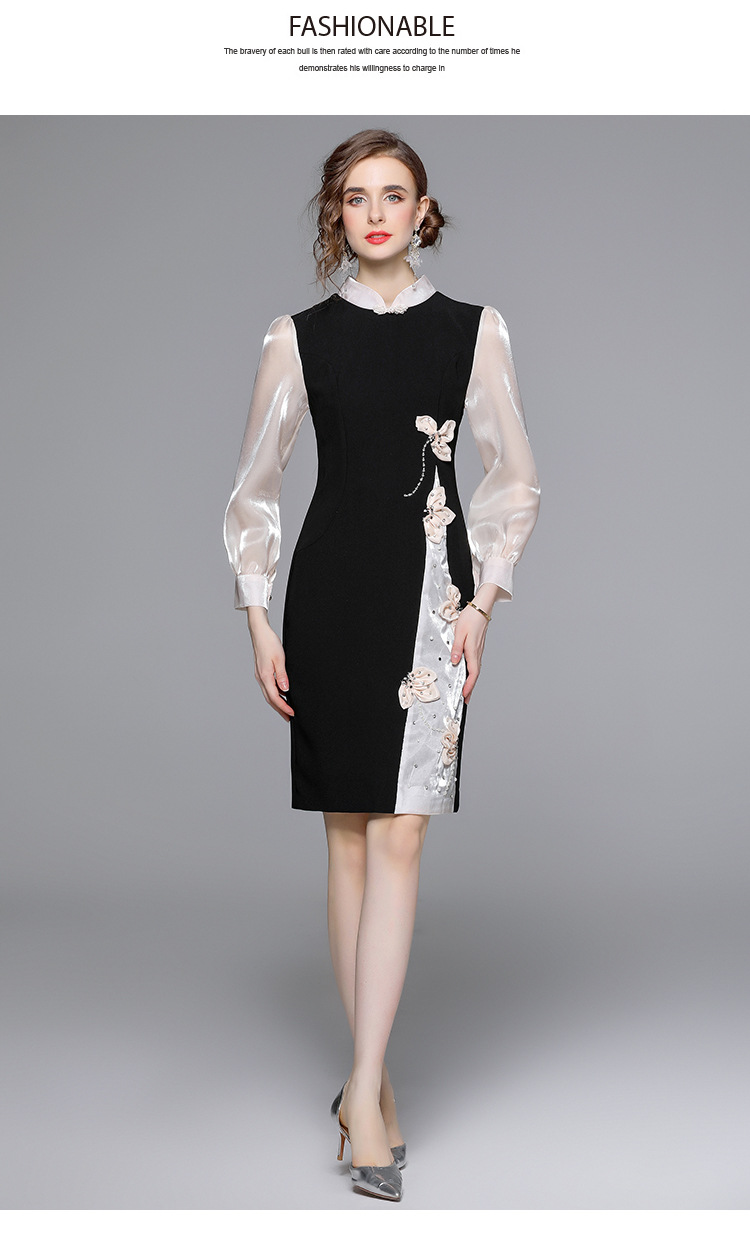 Chiếc đầm dáng công chúa này có phần cổ dựng và cúc bấm độc đáo. Tay dài được phối màu tương phản cùng các mảng ghép vải tạo điểm nhấn. Đầm ôm eo và vòng ba nhẹ nhàng, điểm xuyến những bông hoa nổi cùng hạt ngọc tr lấp lánh. Phù hợp cho những buổi gặp mặt hoặc sự kiện vào mùa xuân. Mặc kèm giày cao gót và phụ kiện tinh tế để hoàn thiện vẻ ngoại hình. | Tên sản phẩm: Váy Đầm Liền Thân Nữ Dài Tay Họa Tiết Hoa Hàng Mùa Xuân Thu Đông - Thời Trang Nữ | Mã sản phẩm: K3429 - Giá: 1.010.000đ | Mã nhà sản xuất: GUDG-G03Hình ảnh sản phẩm