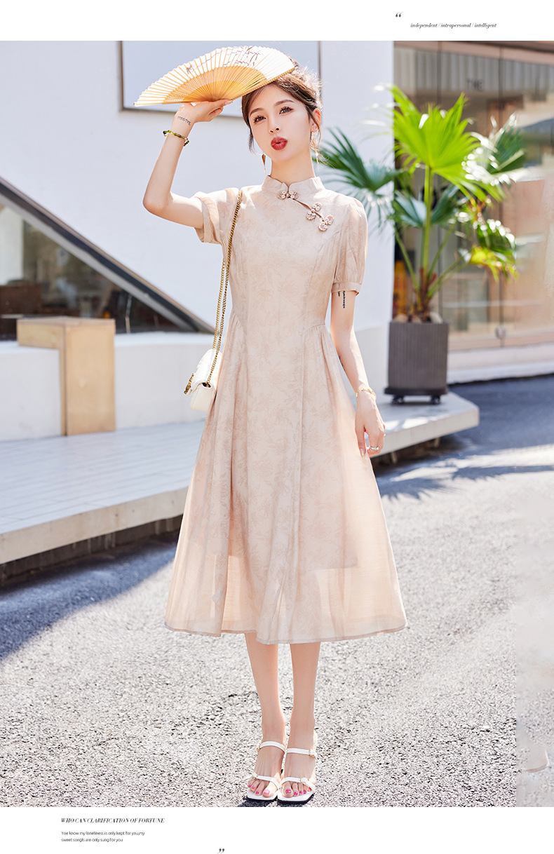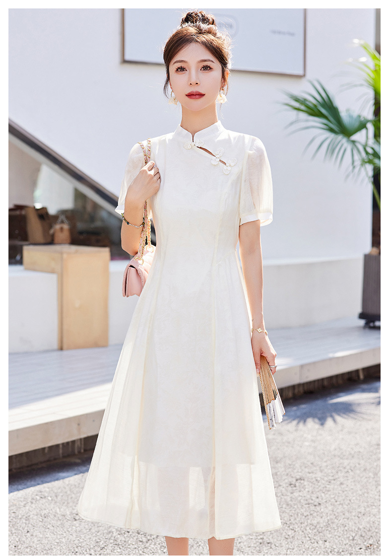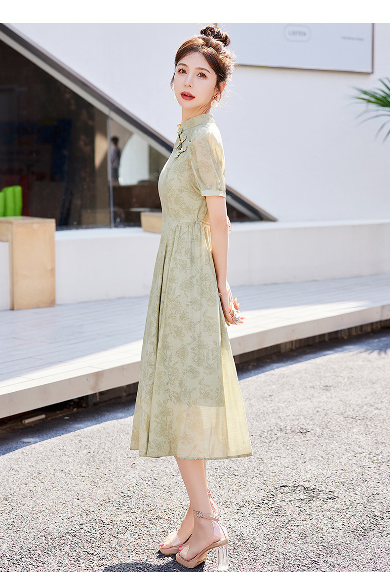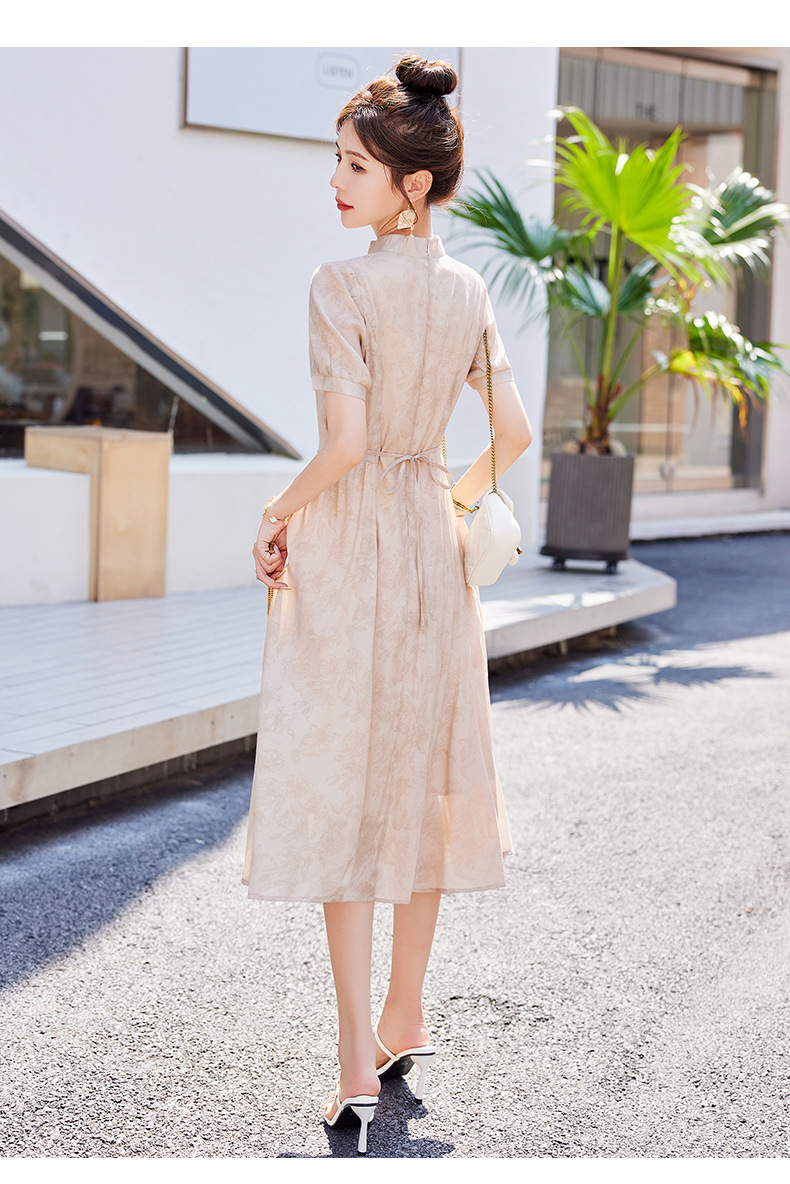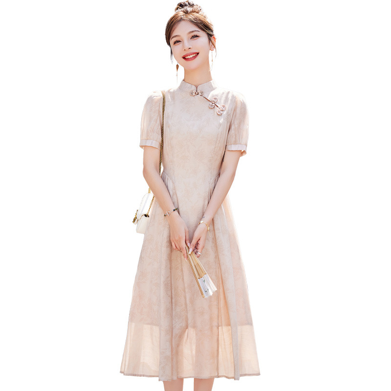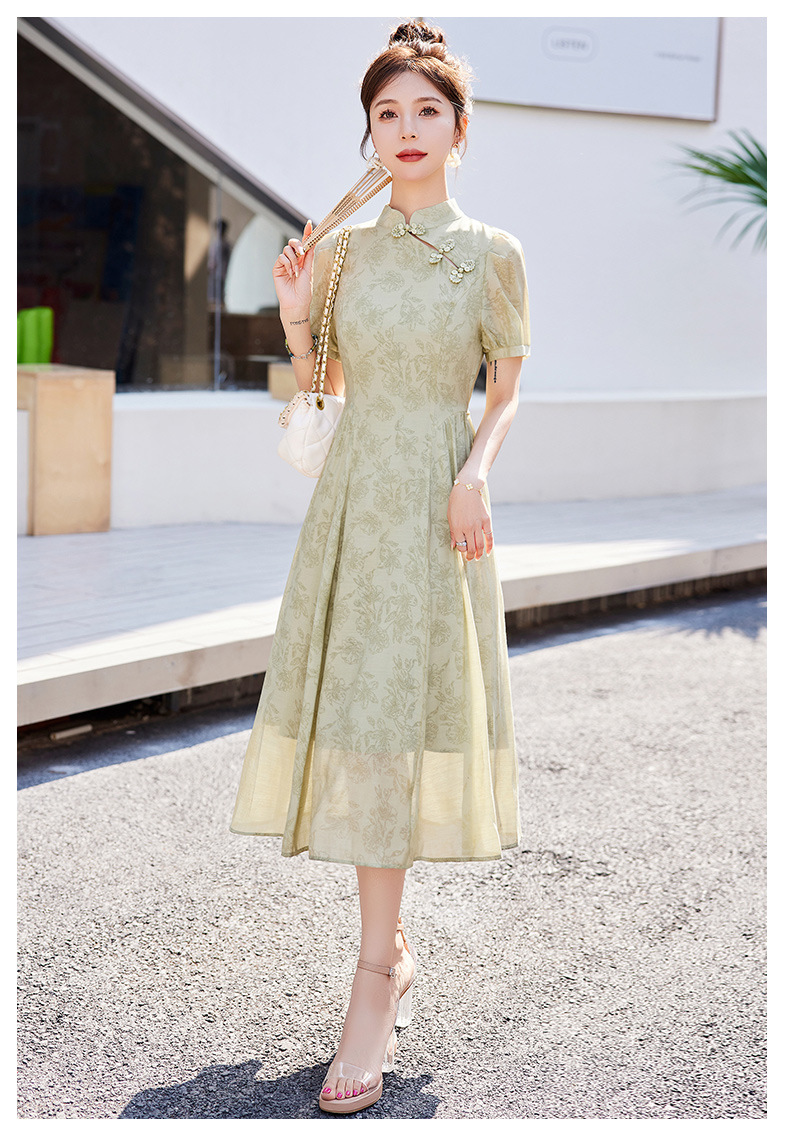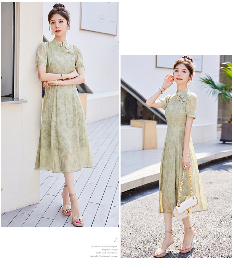 Áo dài cách tân mang phong cách xưa, điểm nhấn là hàng khuy cài tinh xảo dọc theo cổ áo. Thiết kế này có cổ cao ôm, tà dài thướt tha giúp tôn dáng người mặc. Chất vải mỏng nhẹ, thoáng mát, rất phù hợp cho những ngày hè. Có thể mặc đi làm, dự tiệc hoặc trong các dịp gặp mặt. Khi giặt, nên giặt tay và phơi trong bóng râm để giữ áo được bền đẹp. | Tên sản phẩm: Váy Đầm Liền Thân Dáng Dài Nữ Hàng Mùa Hè Phục Cổ Cổ Điển - Thời Trang Nữ | Mã sản phẩm: K3449 - Giá: 1.400.000đ | Mã nhà sản xuất: HADG-G04Hình ảnh sản phẩm