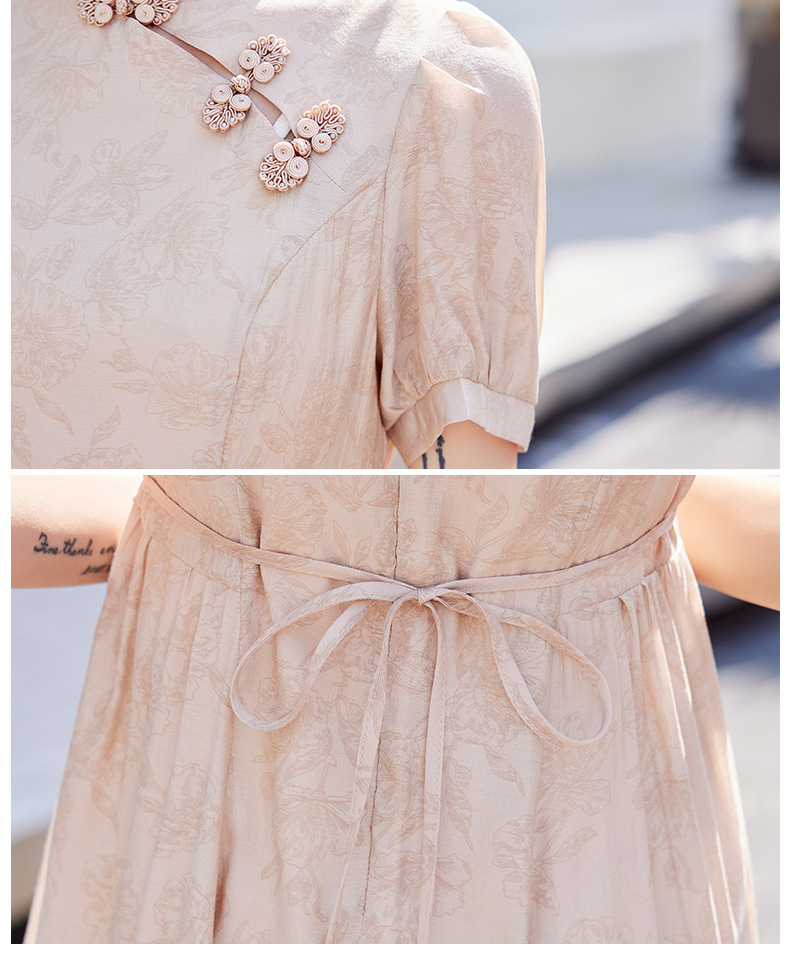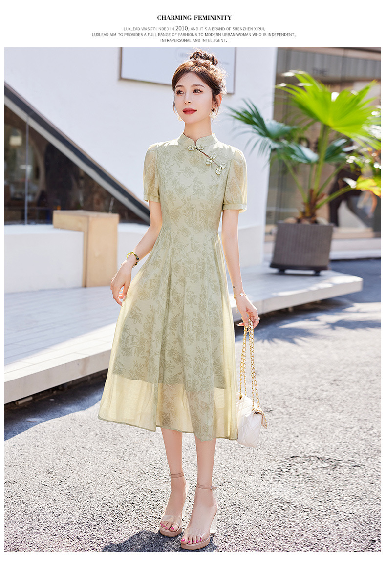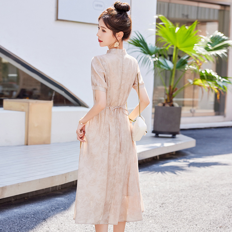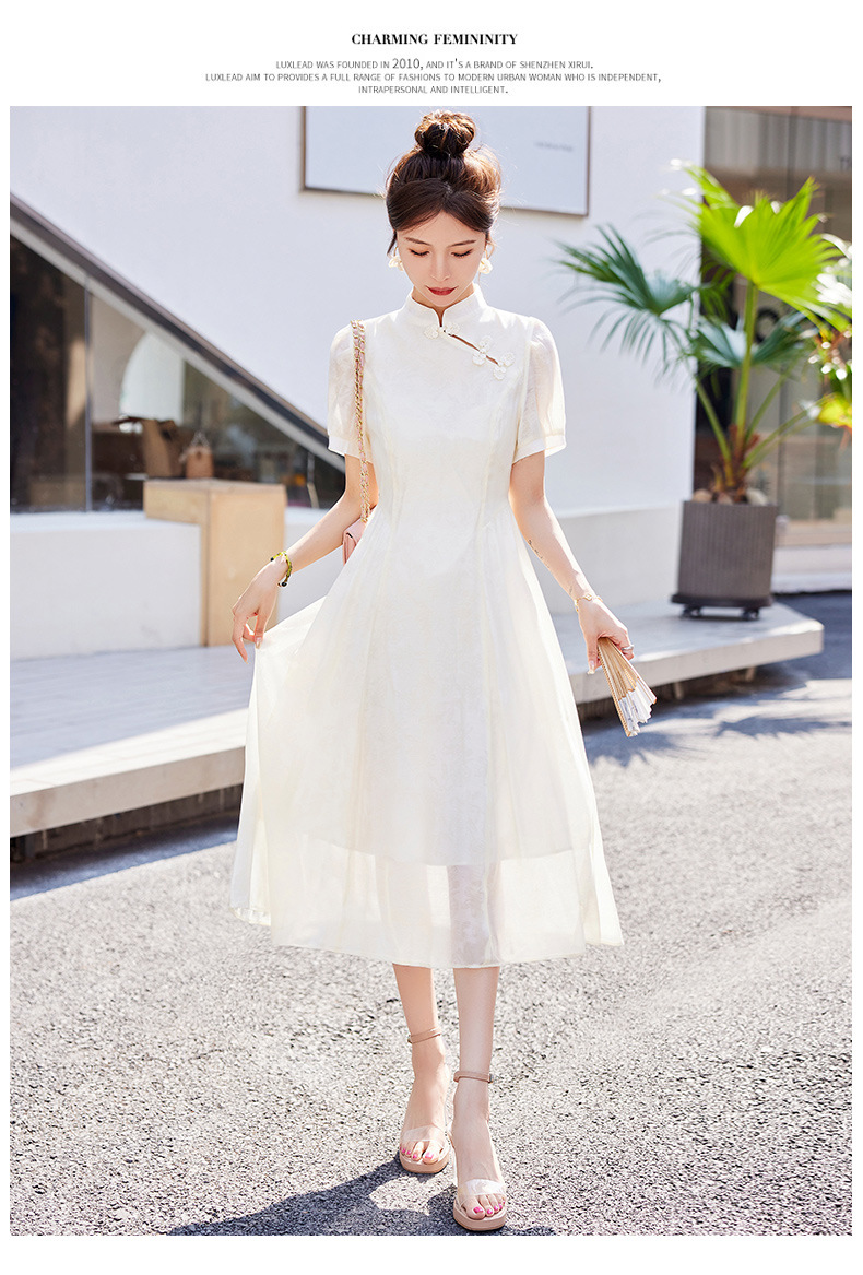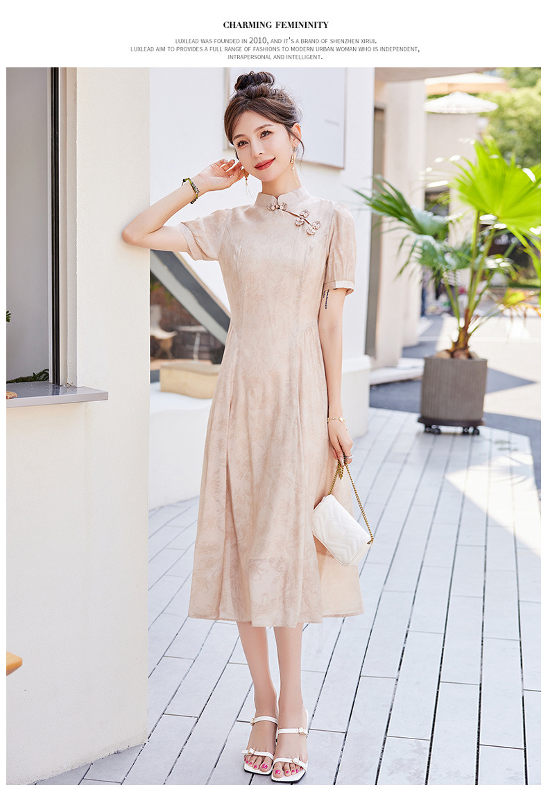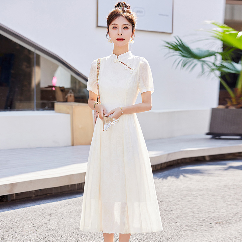 Áo dài cách tân mang phong cách xưa, điểm nhấn là hàng khuy cài tinh xảo dọc theo cổ áo. Thiết kế này có cổ cao ôm, tà dài thướt tha giúp tôn dáng người mặc. Chất vải mỏng nhẹ, thoáng mát, rất phù hợp cho những ngày hè. Có thể mặc đi làm, dự tiệc hoặc trong các dịp gặp mặt. Khi giặt, nên giặt tay và phơi trong bóng râm để giữ áo được bền đẹp. | Tên sản phẩm: Váy Đầm Liền Thân Dáng Dài Nữ Hàng Mùa Hè Phục Cổ Cổ Điển - Thời Trang Nữ | Mã sản phẩm: K3449 - Giá: 1.400.000đ | Mã nhà sản xuất: HADG-G04Hình ảnh sản phẩm