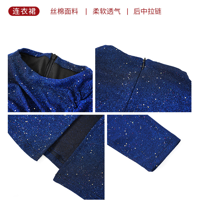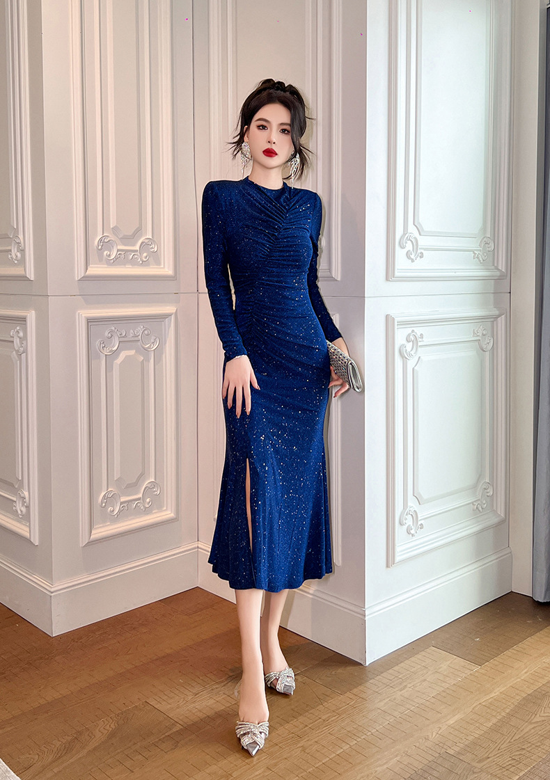 Váy dự tiệc cuối năm với kiểu dáng ôm sát cơ thể, tôn lên những đường nét quyến rũ. Thiết kế cổ tròn kiểu Pháp thanh lịch kết hợp cùng chi tiết xếp ly tinh tế và điểm nhấn là đường xẻ nhẹ ở phần thân dưới. Các mảnh ánh sáng lấp lánh được phối trí hài hòa, tạo hiệu ứng bắt sáng tuyệt đẹp dưới ánh đèn. Sản phẩm phù hợp cho các buổi tiệc tối hay sự kiện quan trọng, giúp người mặc tự tin tỏa sáng. | Tên sản phẩm: Váy Đầm Liền Thân Nữ Dáng Ôm Hàng Mùa Xuân Thu Đông - Thời Trang Nữ | Mã sản phẩm: K3499 - Giá: 1.120.000đ | Mã nhà sản xuất: CHDG-G04Hình ảnh sản phẩm